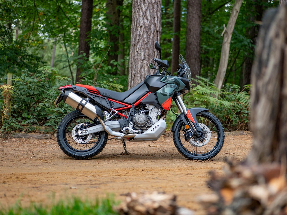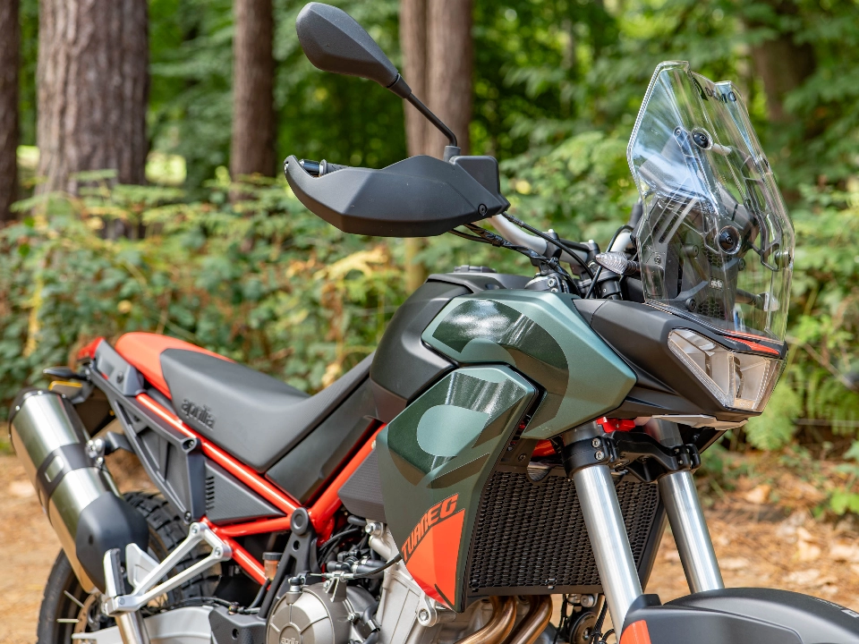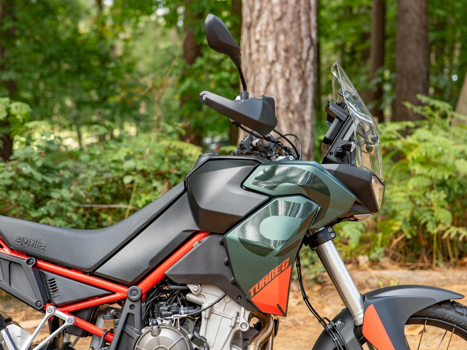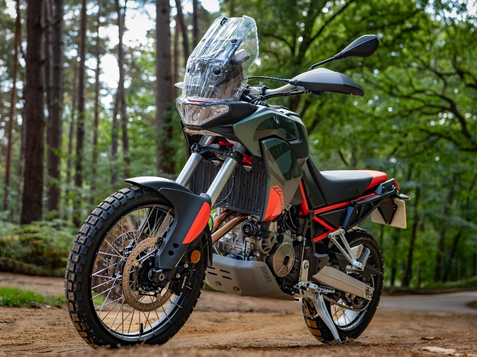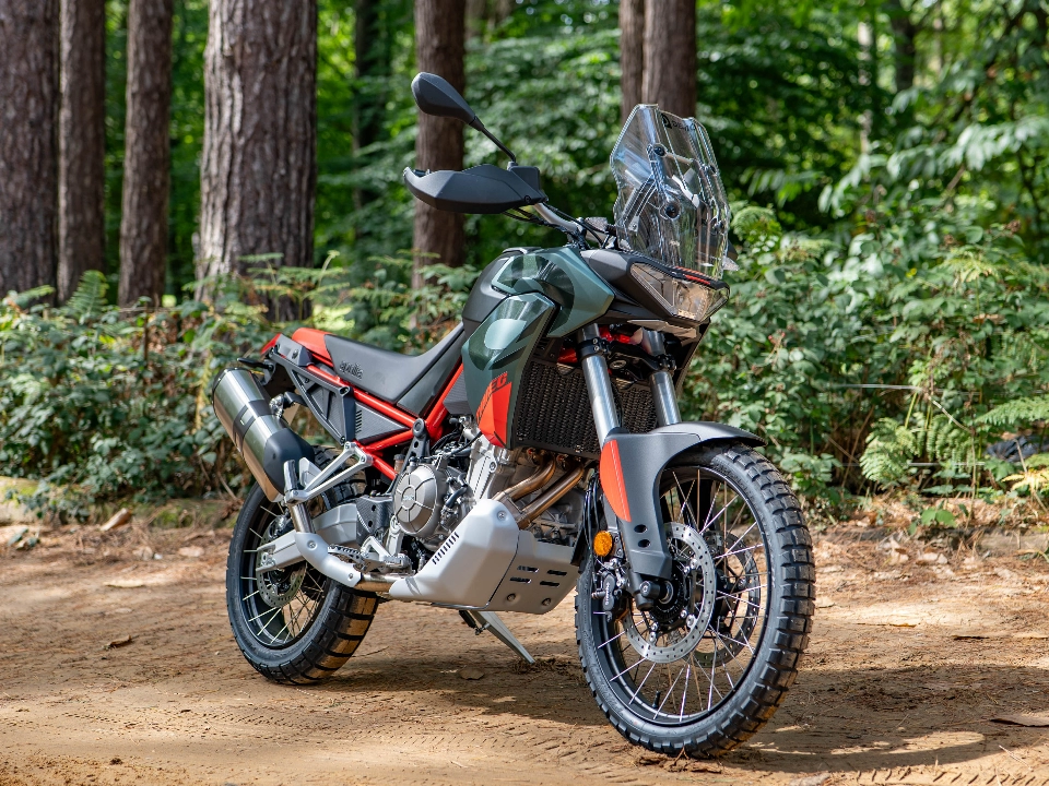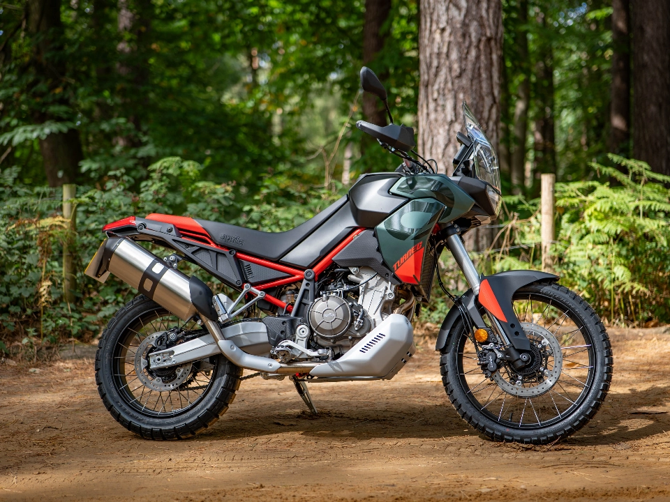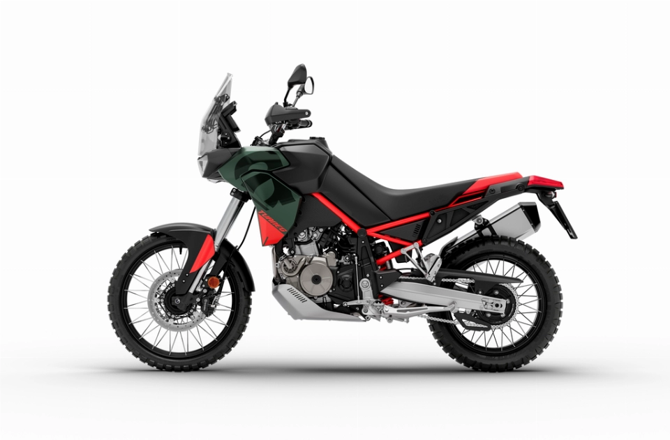 At its core is a re-tuned version of Aprilia's highly acclaimed 659cc parallel twin engine, specifically optimized for adventure riding, delivering a potent 80 hp (59 kW) and robust torque through its precise 6-speed manual transmission. This provides responsive power for diverse riding conditions.