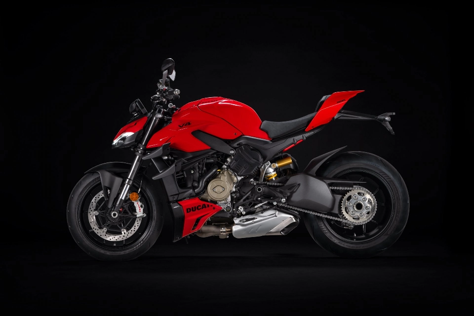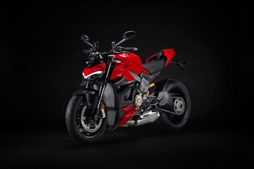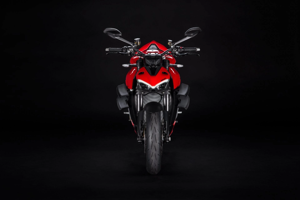 Often described as a "Naked Panigale," the Streetfighter V4 delivers incredible superbike thrills in a more commanding and accessible naked format. At its heart is the potent 1103 cc Desmosedici Stradale V4 engine, producing an astonishing 208 hp and exhilarating torque that defines the supernaked class. To ensure this power remains manageable, the bike features distinctive biplane wings that generate crucial downforce for high-speed stability.