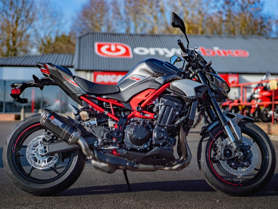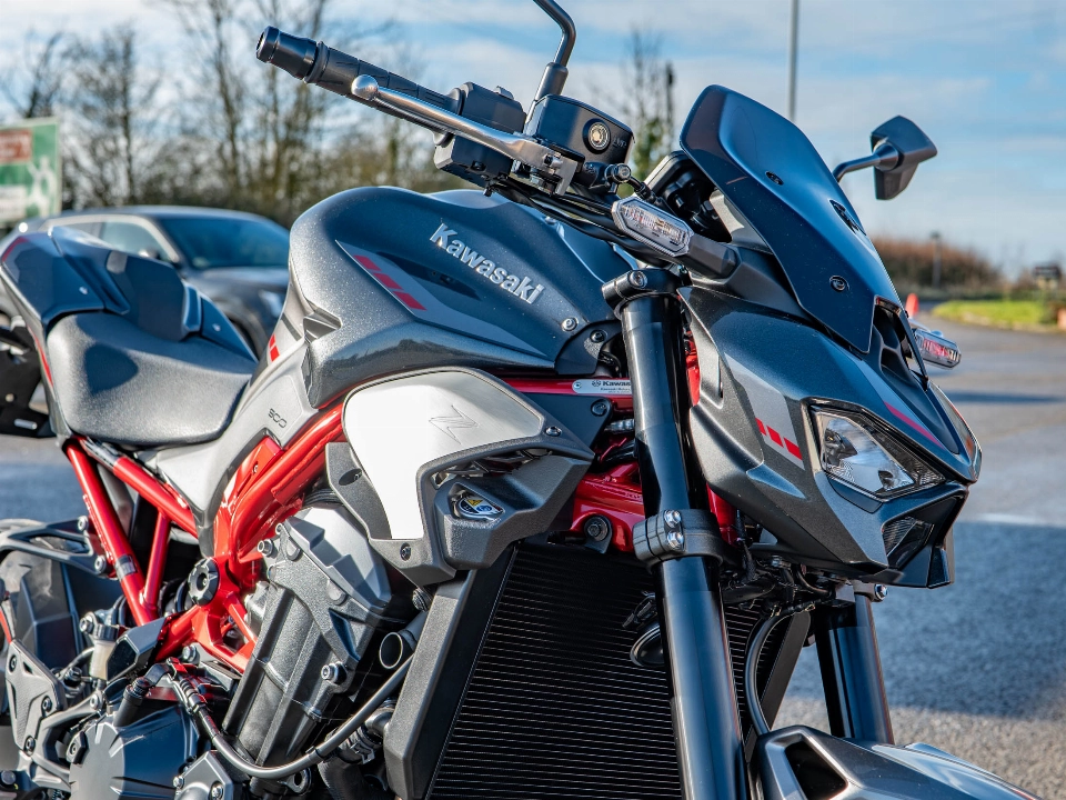 This brand-new 2025 Z900 Performance is finished in the striking Metallic Carbon Gray and Metallic Phantom Silver with Candy Persimmon Red highlights. The Z900 Performance Edition includes the full suite of genuine Kawasaki accessories, but are offering it at the exact same price as the standard model. It remains the ultimate choice for riders seeking a balanced, high-performance four-cylinder streetfighter with all the premium extras already fitted.