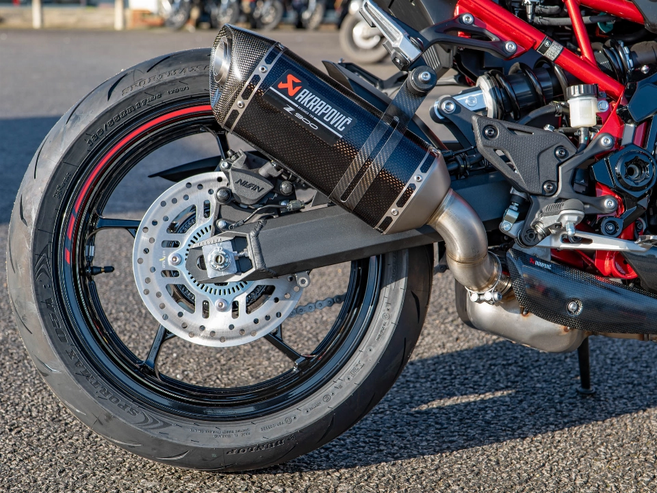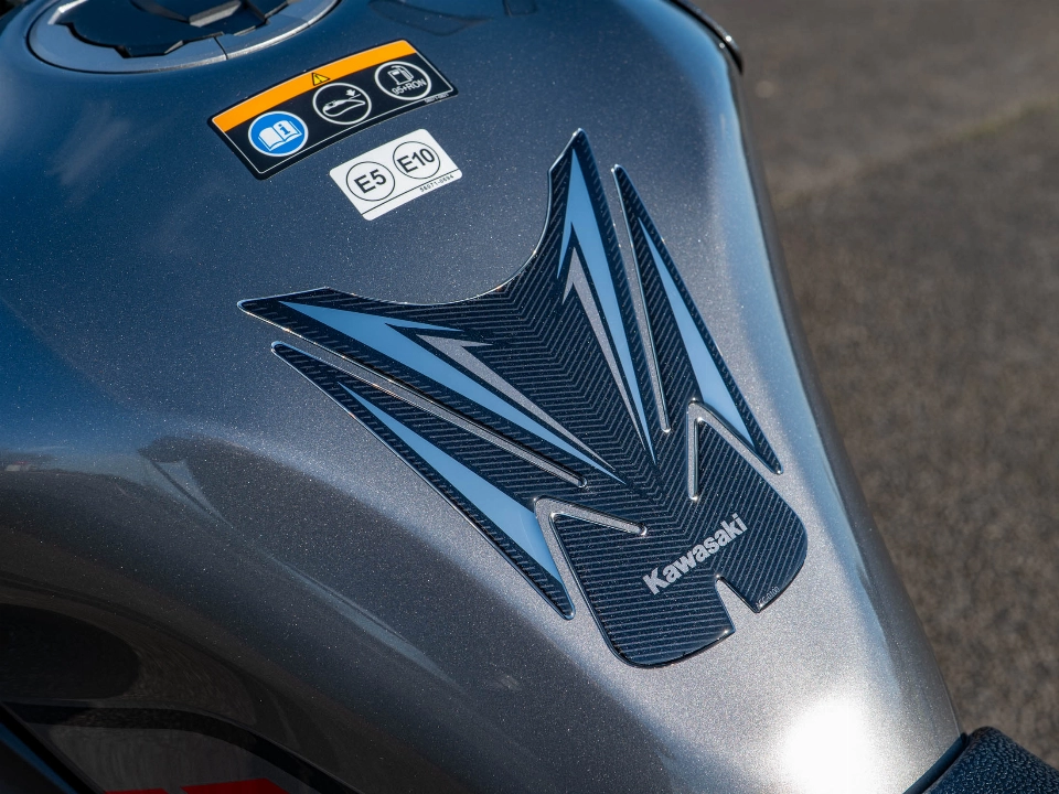 The "Performance" upgrade on this 2025 model adds a significant level of aggression and functionality. At the rear, the bike features a carbon fibre Akrapovic sports exhaust silencer, which not only saves weight but provides a deeper, more visceral soundtrack to the 948cc inline-four engine. The sporty silhouette is further enhanced by a colour-coded pillion seat cowl and a large smoke-tinted fly screen for improved wind protection. To ensure the bike stays in showroom condition, we have also fitted a genuine Kawasaki tank pad and a protective screen protector for the new TFT dashboard. This is a rare opportunity to get over a £900 worth of genuine performance parts included in the standard RRP.