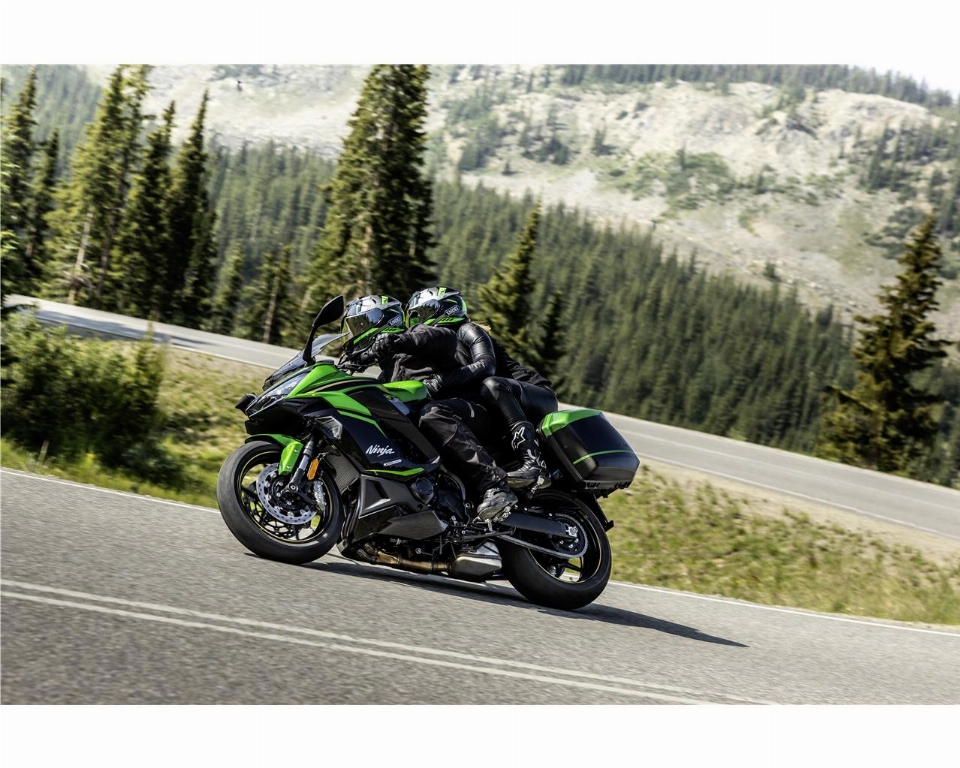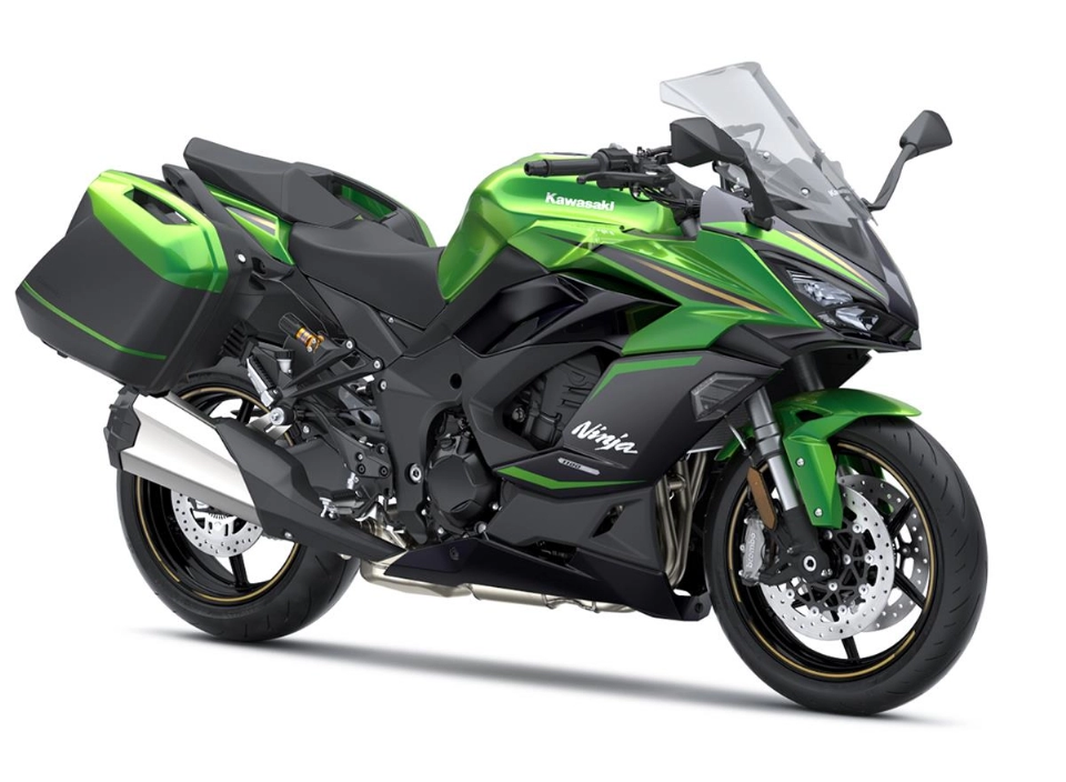 The Ninja 1100SX SE Tourer combines the thrilling performance of a sportbike with the comfort and practicality of a touring machine, enhanced with premium components. Its powerful 1099cc in-line four cylinder engine, producing 136 hp, delivers exhilarating acceleration, while its comfortable riding position, adjustable windscreen, and integrated panniers make it ideal for racking up the miles.