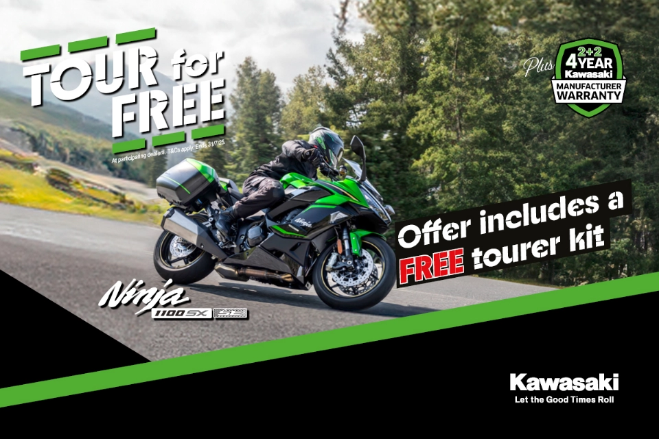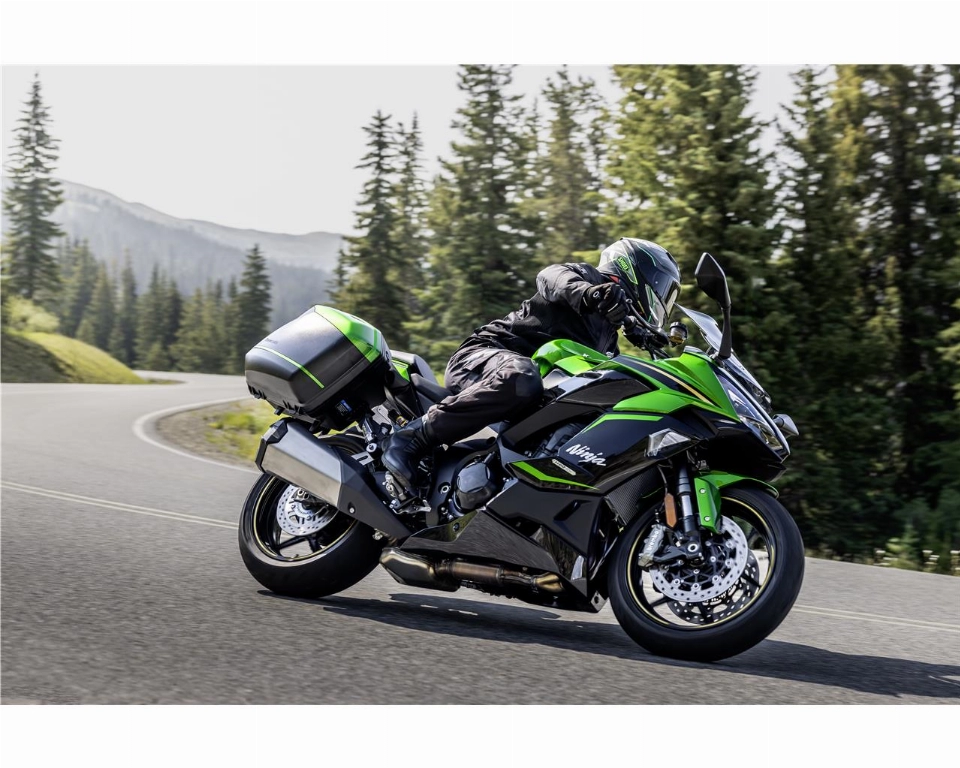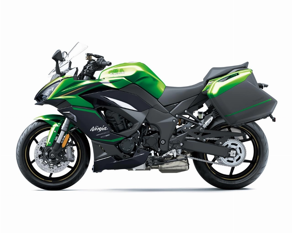 At its core is a powerful 1099cc inline-four engine, which produces a formidable 136 hp. The bike is equipped with a full electronics suite, including multiple riding modes, traction control, and a quickshifter, which provides seamless gear changes without the clutch. As an "SE" model, it features an upgraded Öhlins S46 gas-charged rear shock and Brembo M4.32 radial-mount calipers for superior handling and stopping power. The "Tourer" package enhances its practicality with colour-matched panniers and heated grips for comfort on long journeys. The Ninja 1100SX SE also comes with a full 4-year manufacturer's warranty, giving you complete peace of mind.
