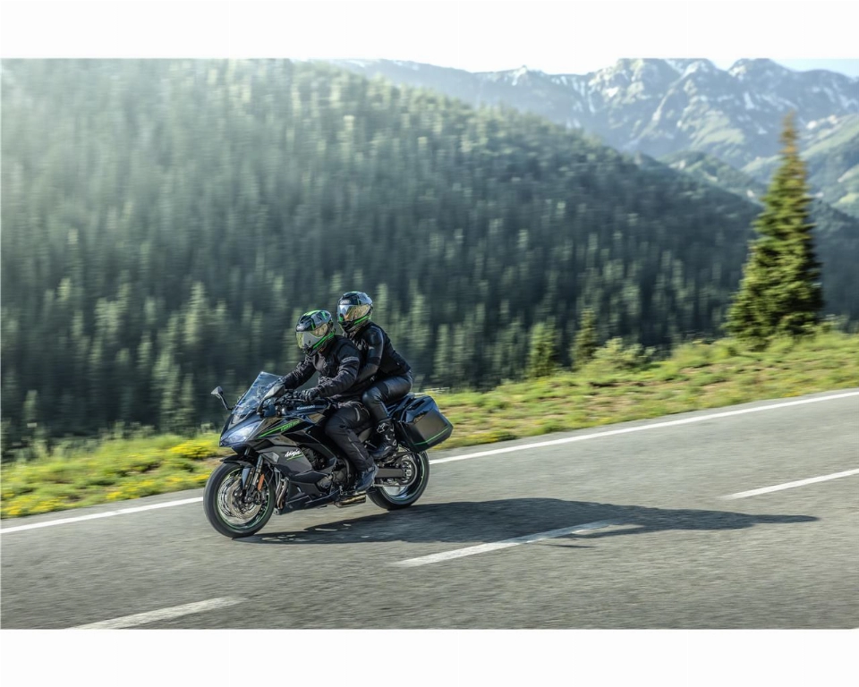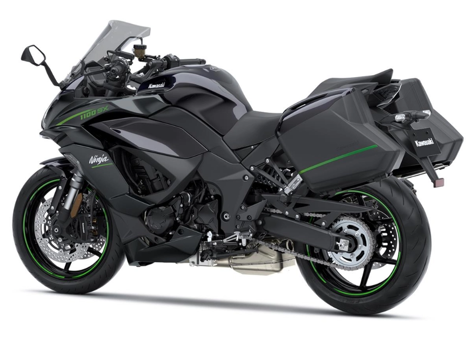 The Ninja 1100SX Tourer combines the thrilling performance of a sportbike with the comfort and practicality of a touring machine. Its powerful 1099cc in-line four engine, producing 136 hp, delivers exhilarating acceleration, while its comfortable riding position, adjustable windscreen, and integrated panniers make it ideal for racking up the miles.
