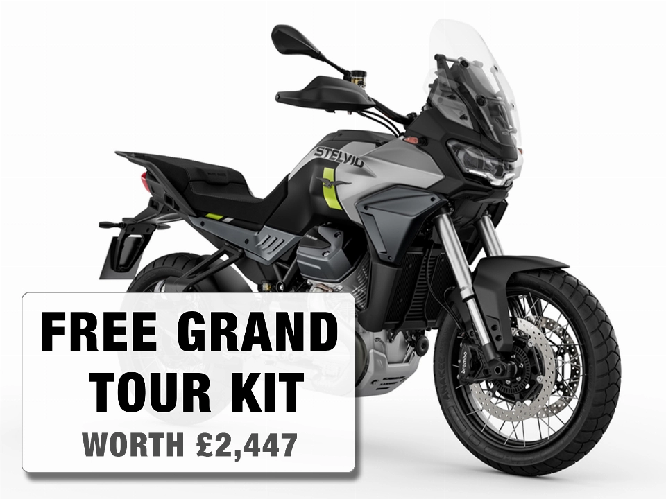 Including a FREE Grand Tour Kit worth £2,447; Topbox with back rest, Panniers, Centre Stand, Top Box Mounting Plate, Engine Protection, Quickshifter and LED Fog Lights.
