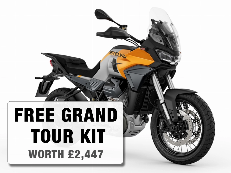 Including a FREE Grand Tour Kit worth £2,447; Topbox with back rest, Panniers, Centre Stand, Top Box Mounting Plate, Engine Protection, Quickshifter and LED Fog Lights.