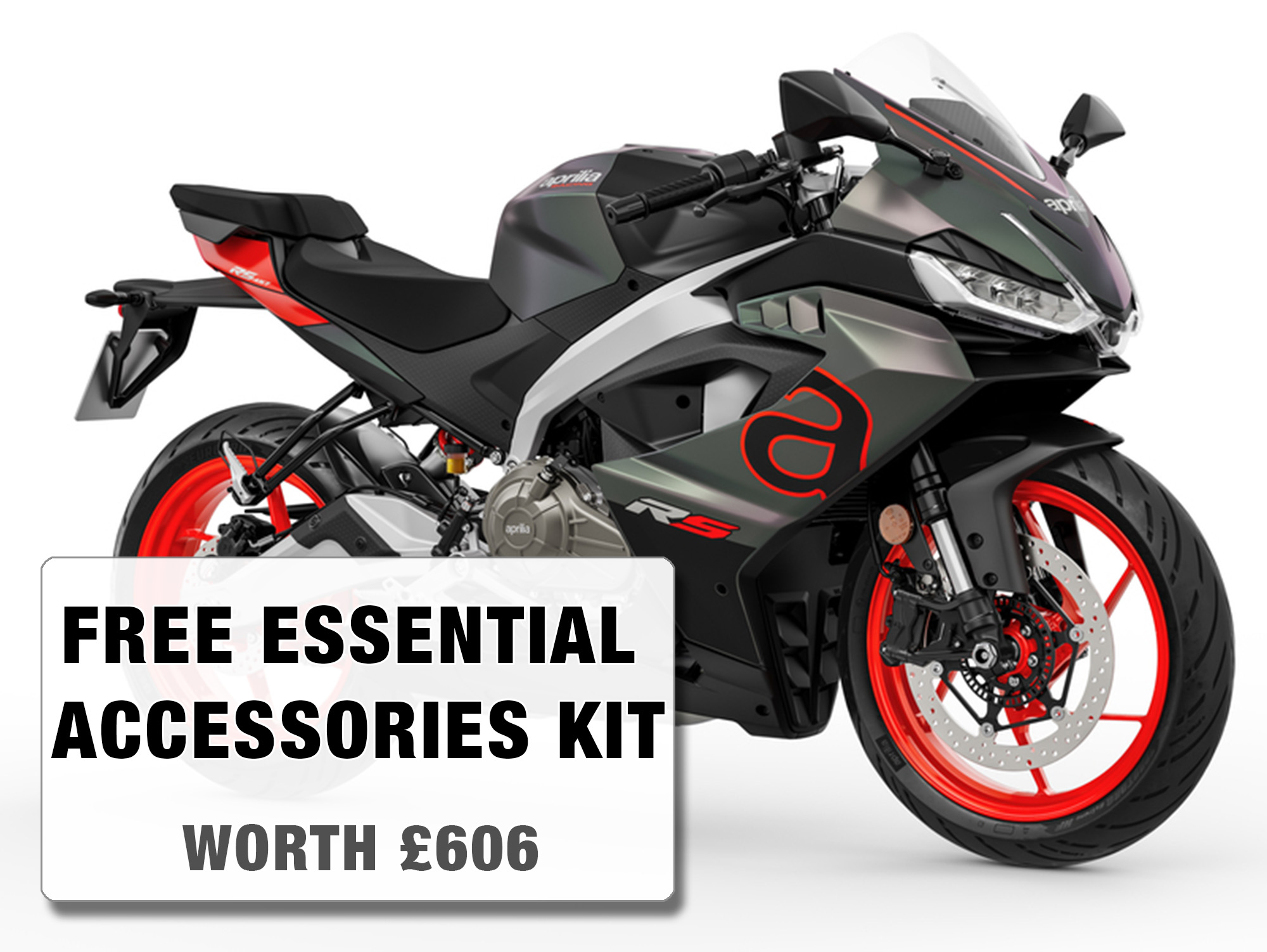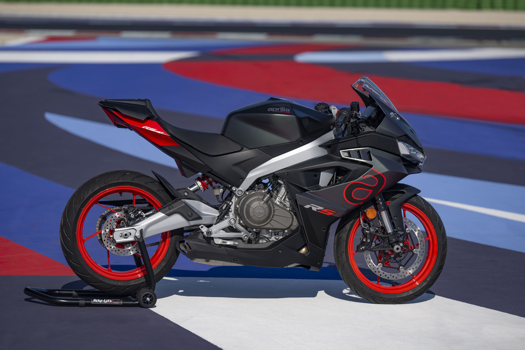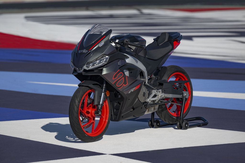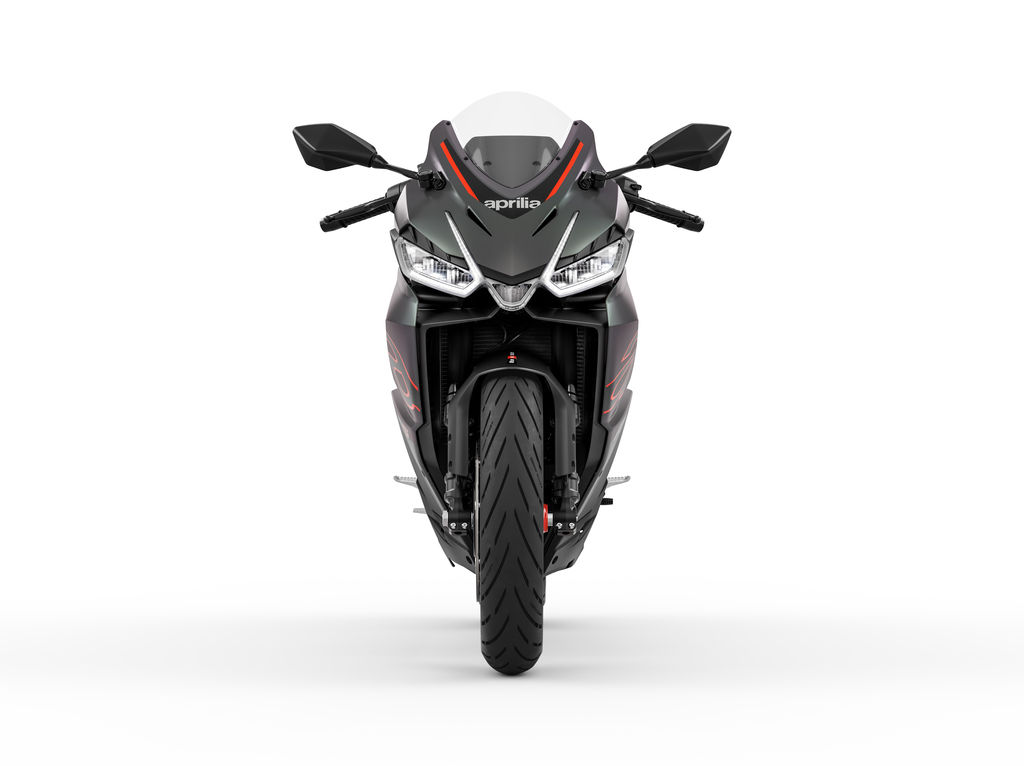 brand new Aprilia RS 457 in the sleek and stylish Prismatic Dark (Black/Grey) colour scheme.