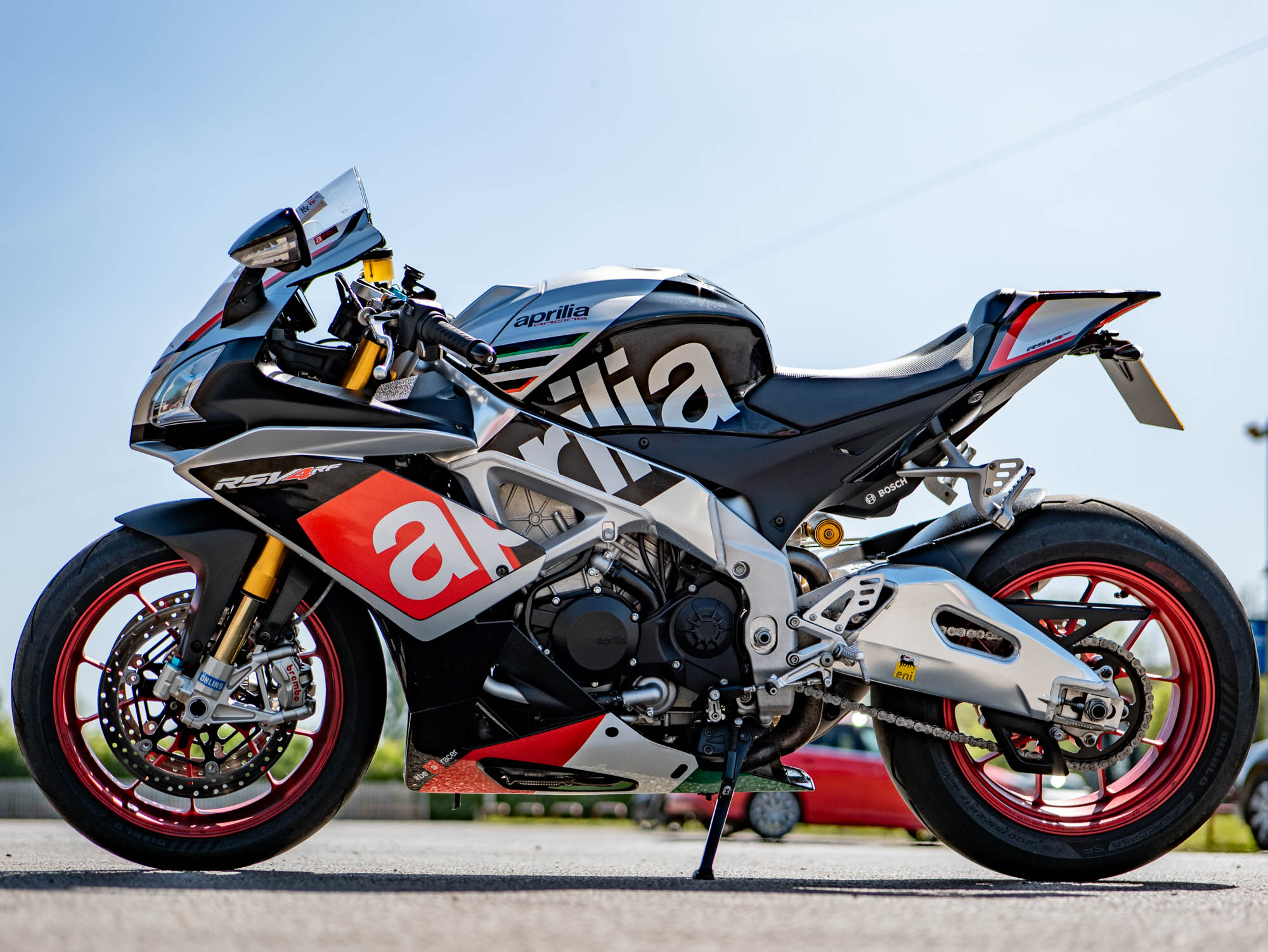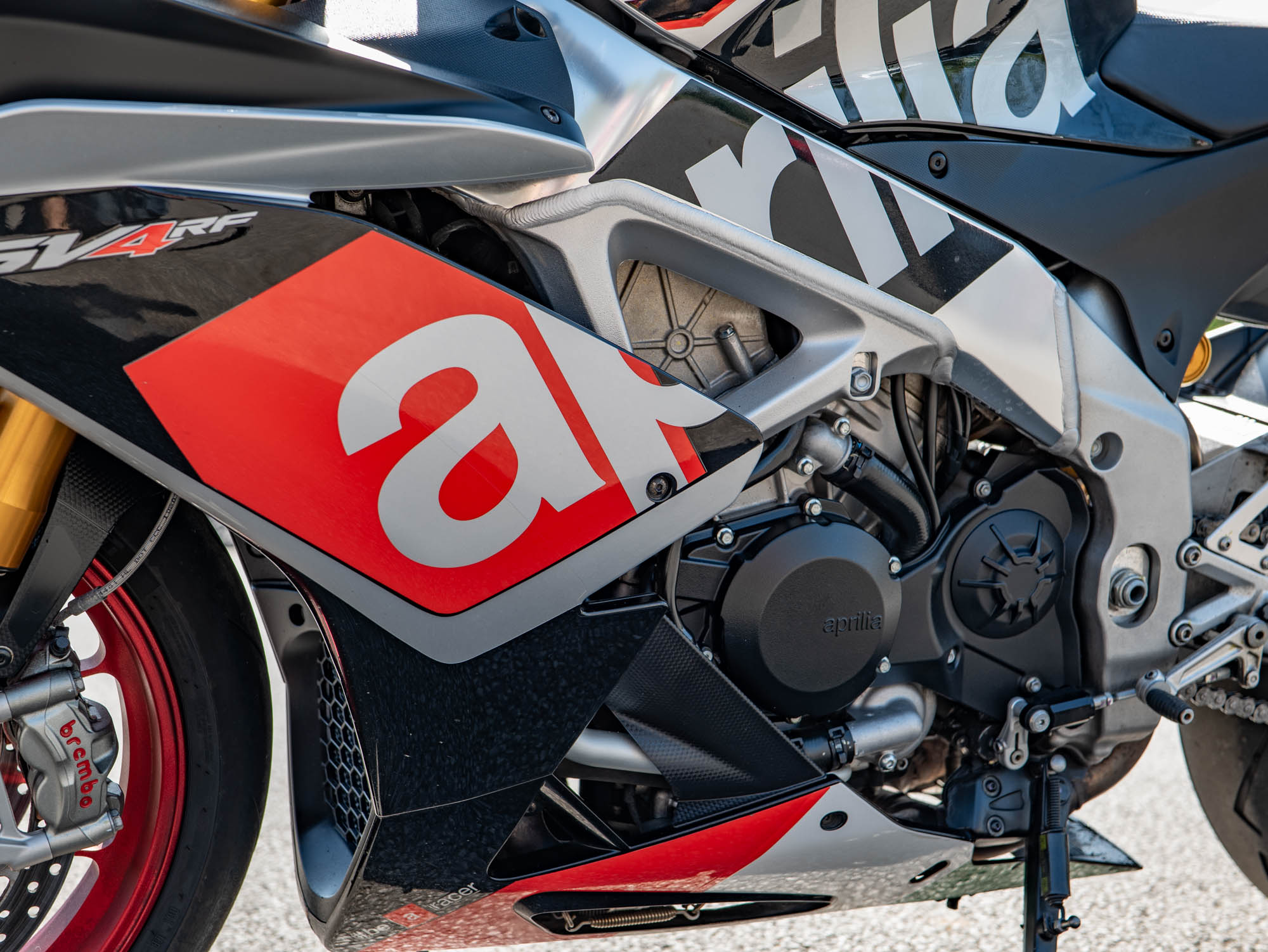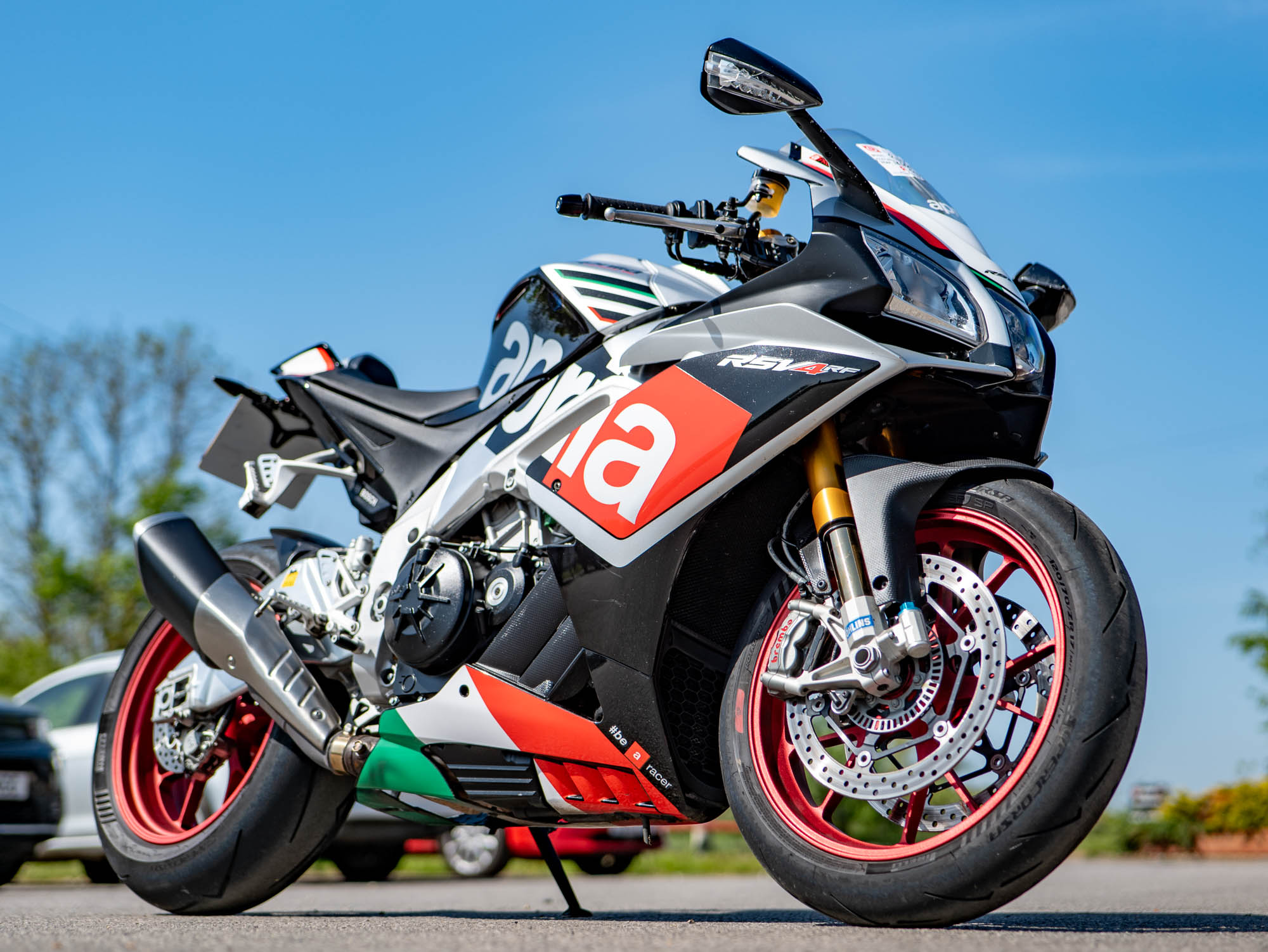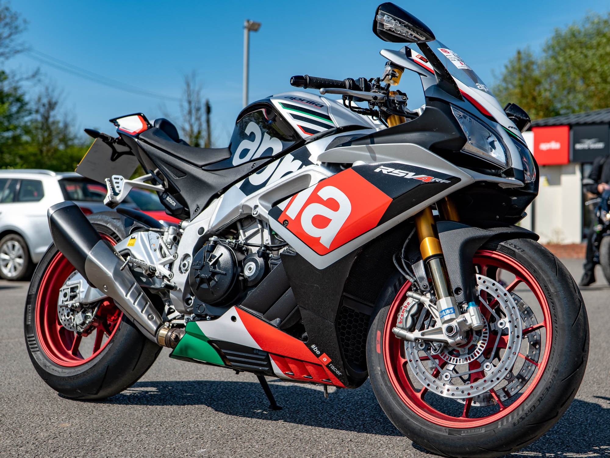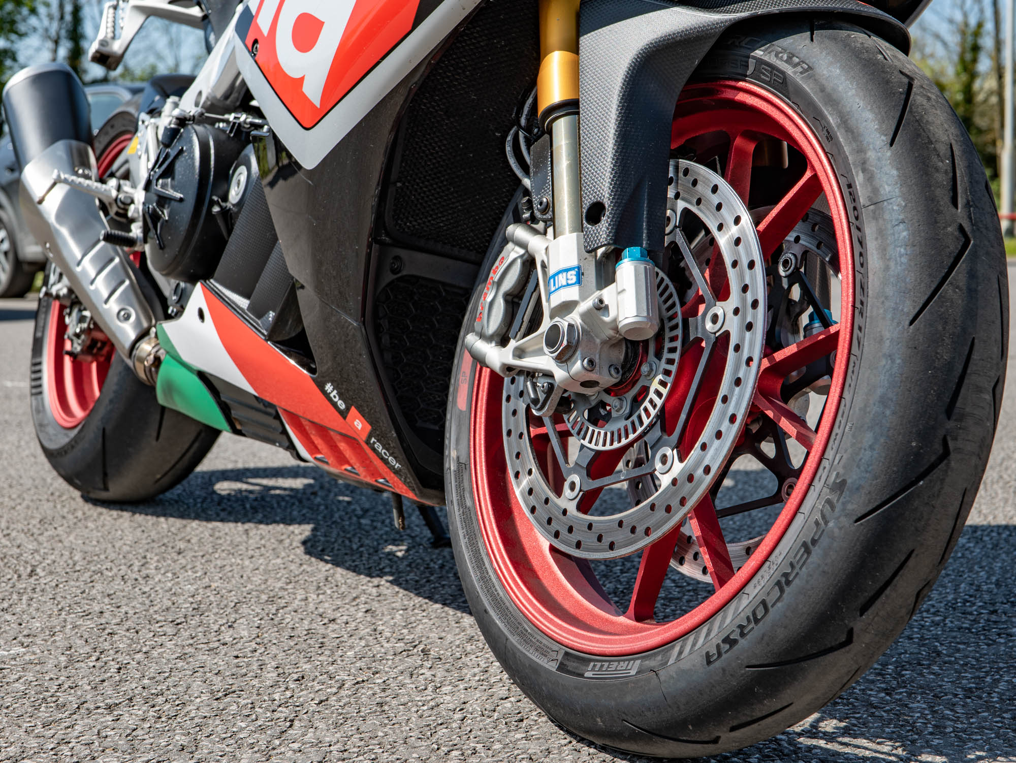 As the top-of-the-range 'RF' model, it features premium components including fully adjustable Öhlins front forks, rear shock, and steering damper, powerful Brembo brakes, and lightweight forged aluminium wheels.