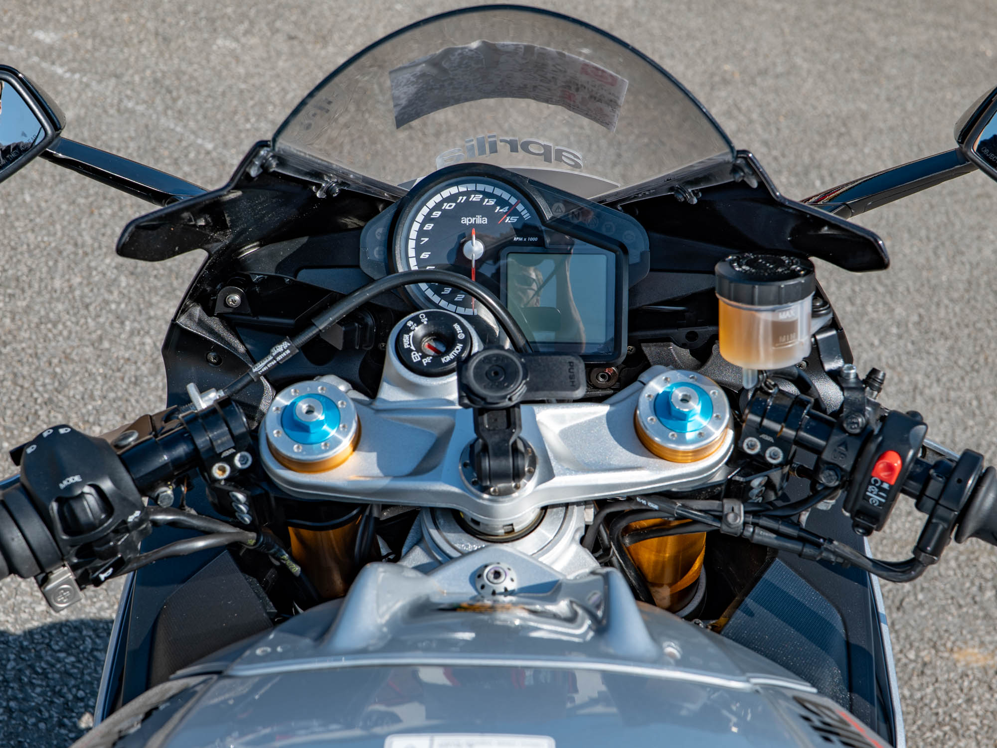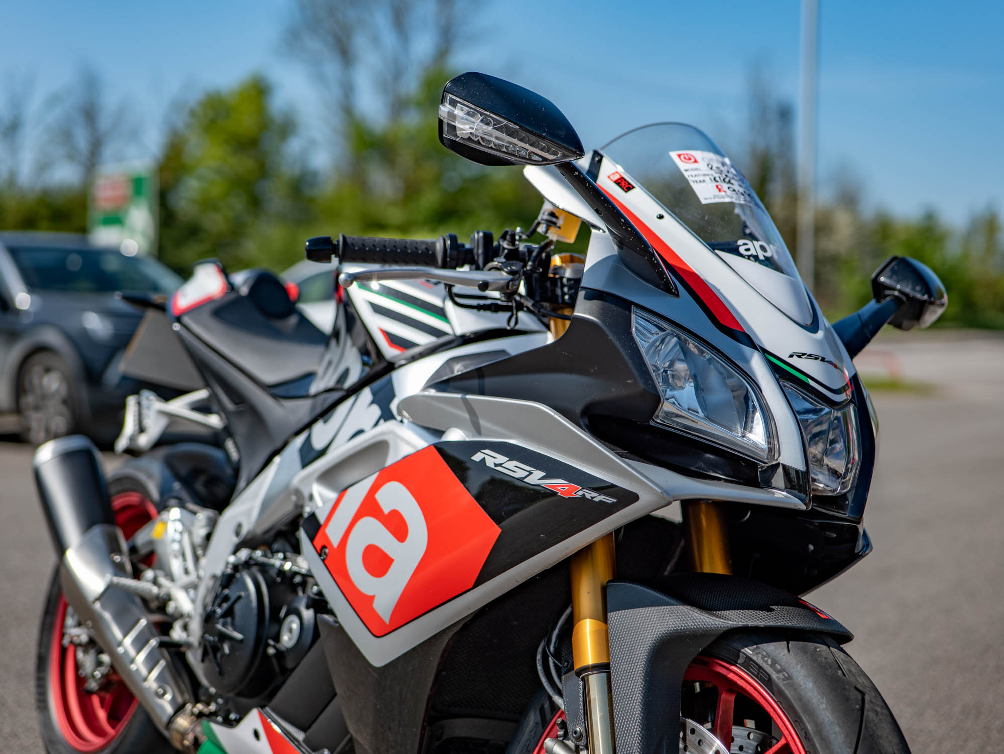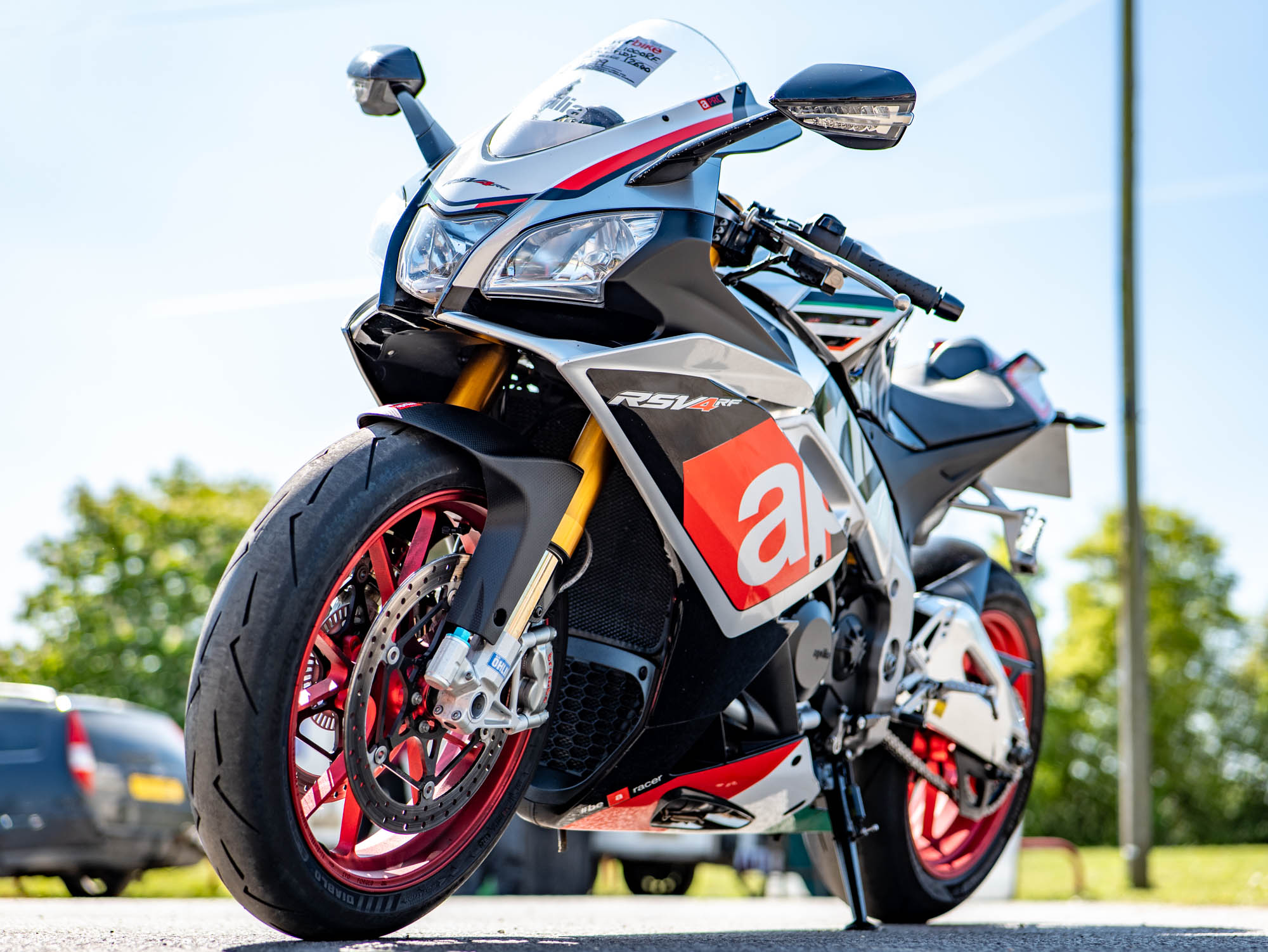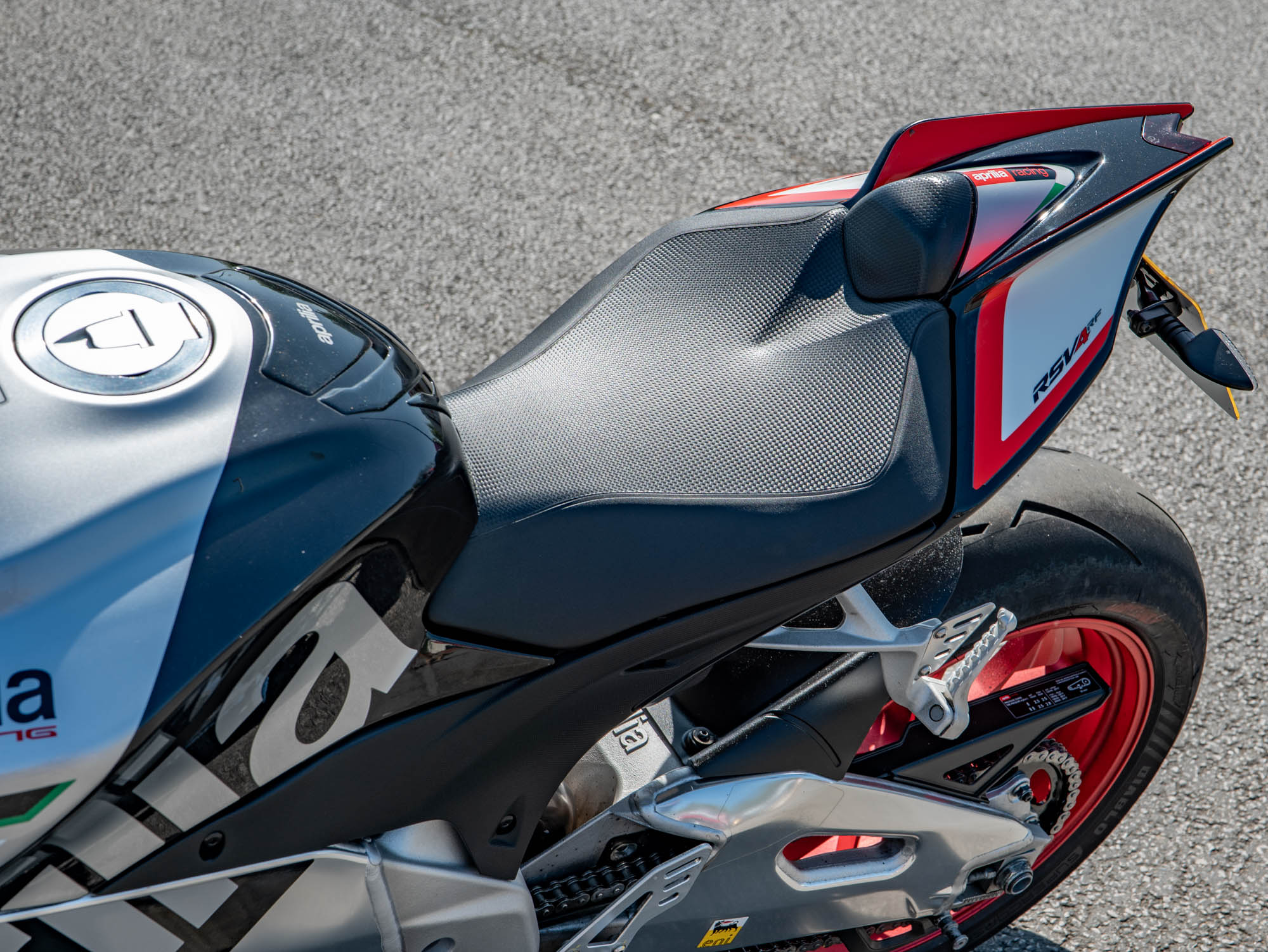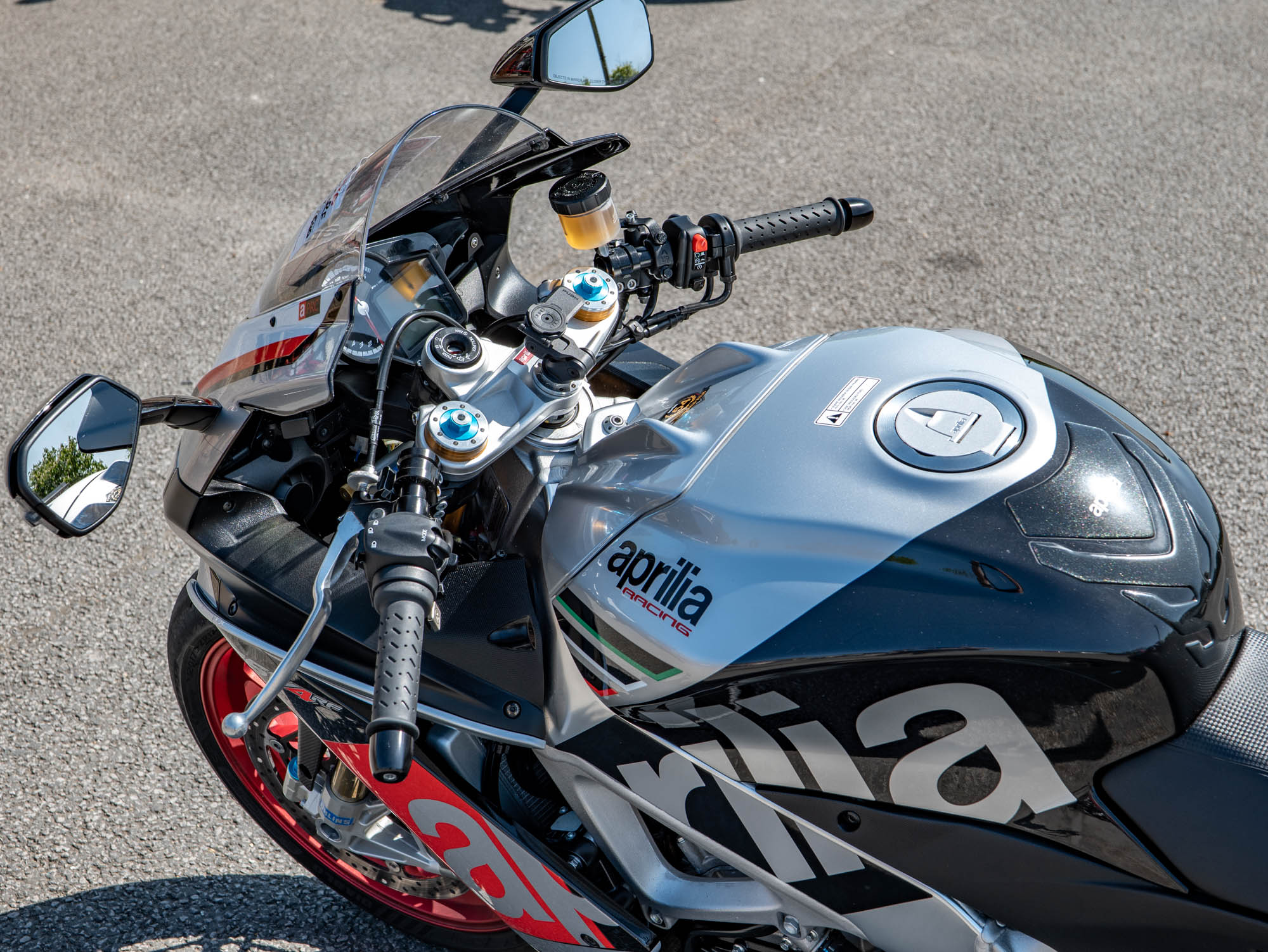 As the top-of-the-range 'RF' model, it features premium components including fully adjustable Öhlins front forks, rear shock, and steering damper, powerful Brembo brakes, and lightweight forged aluminium wheels.
