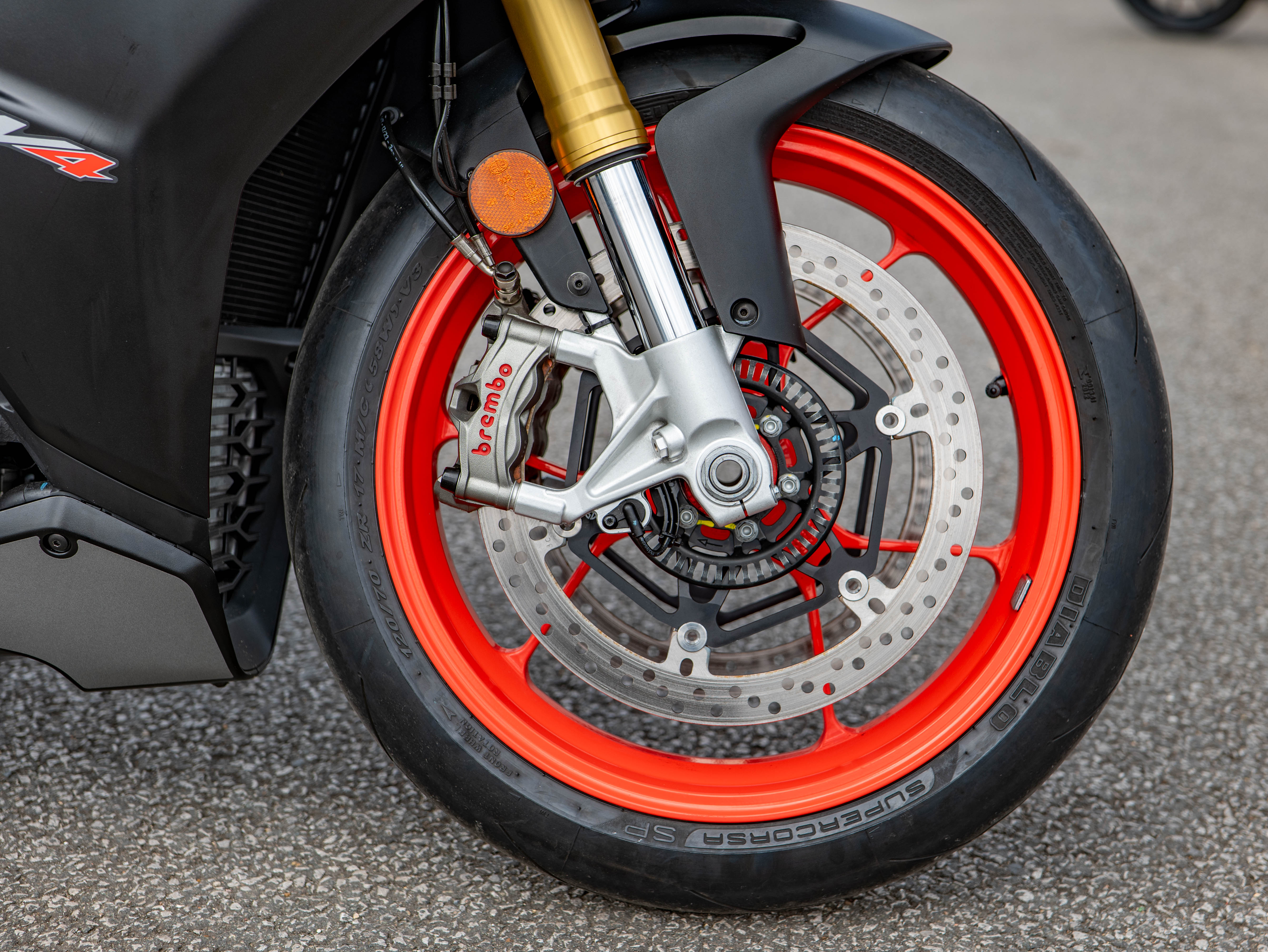At its heart lies Aprilia's legendary 1099cc 65° V4 engine, unleashing an incredible 217 hp (160 kW) at 13,000 rpm. This high-revving, intoxicating powerplant delivers breathtaking performance and an unmistakable soundtrack, making it one of the most exciting superbikes on the planet. Power is precisely managed through a ultra-smooth 6-speed manual transmission.