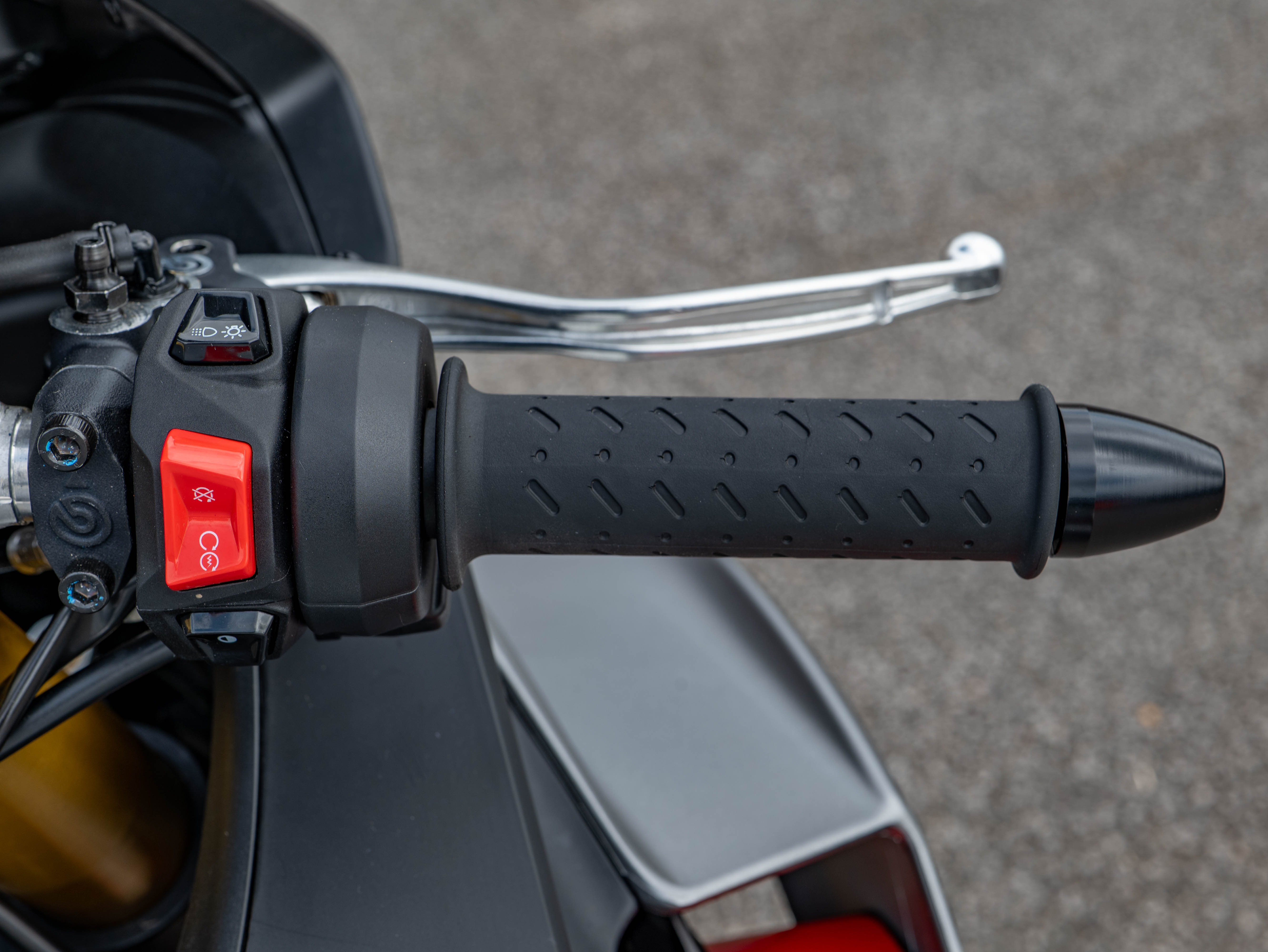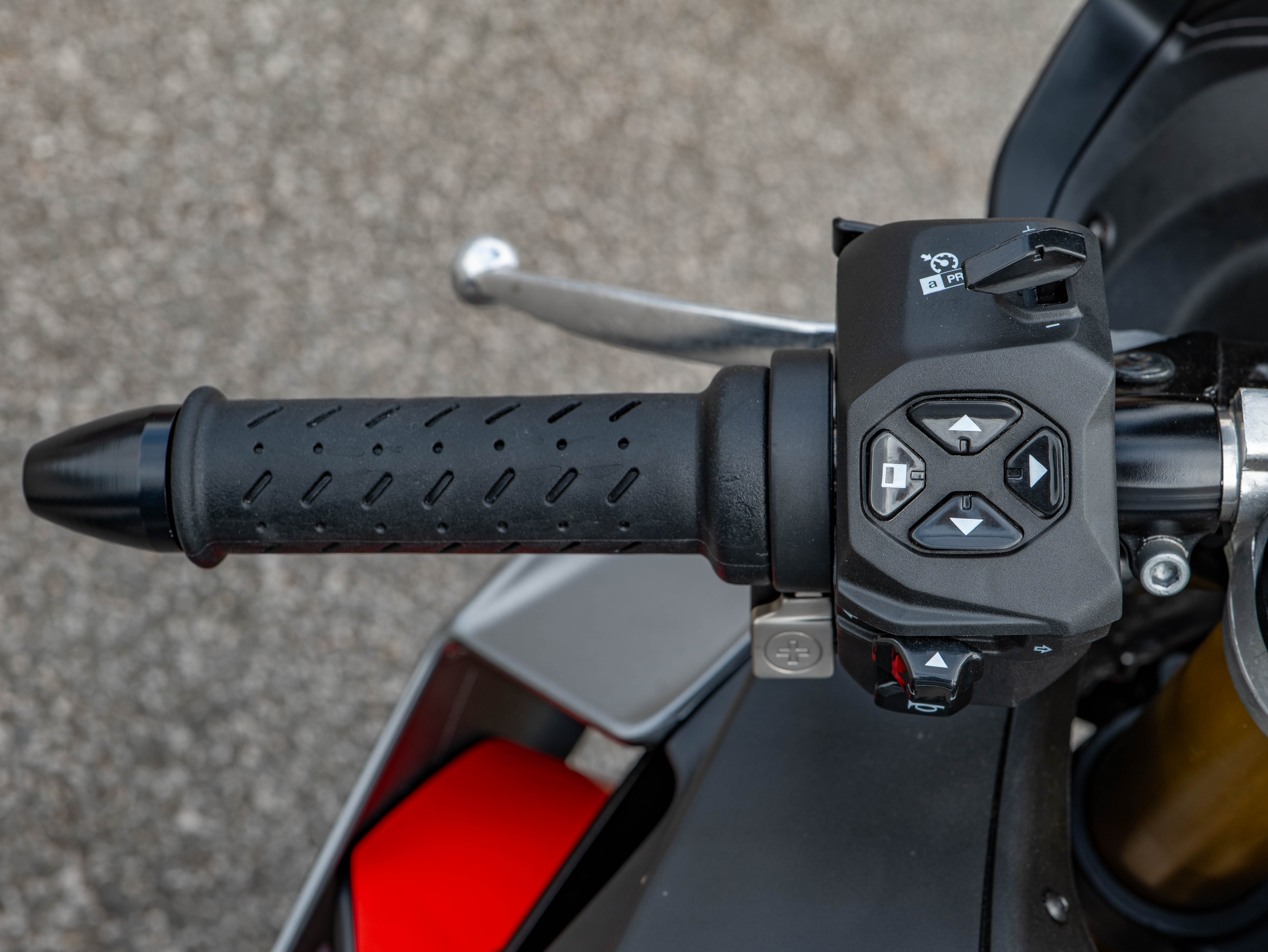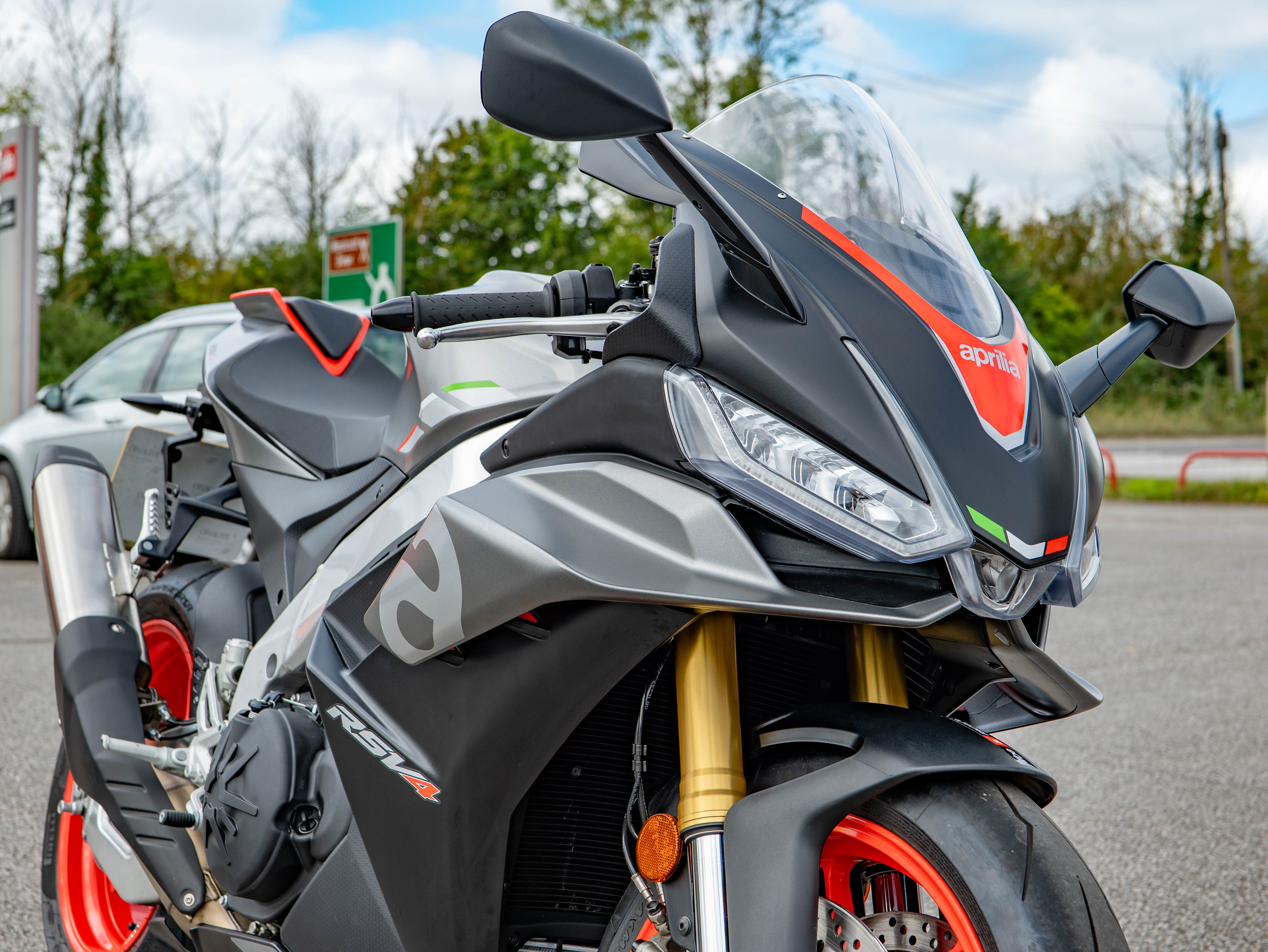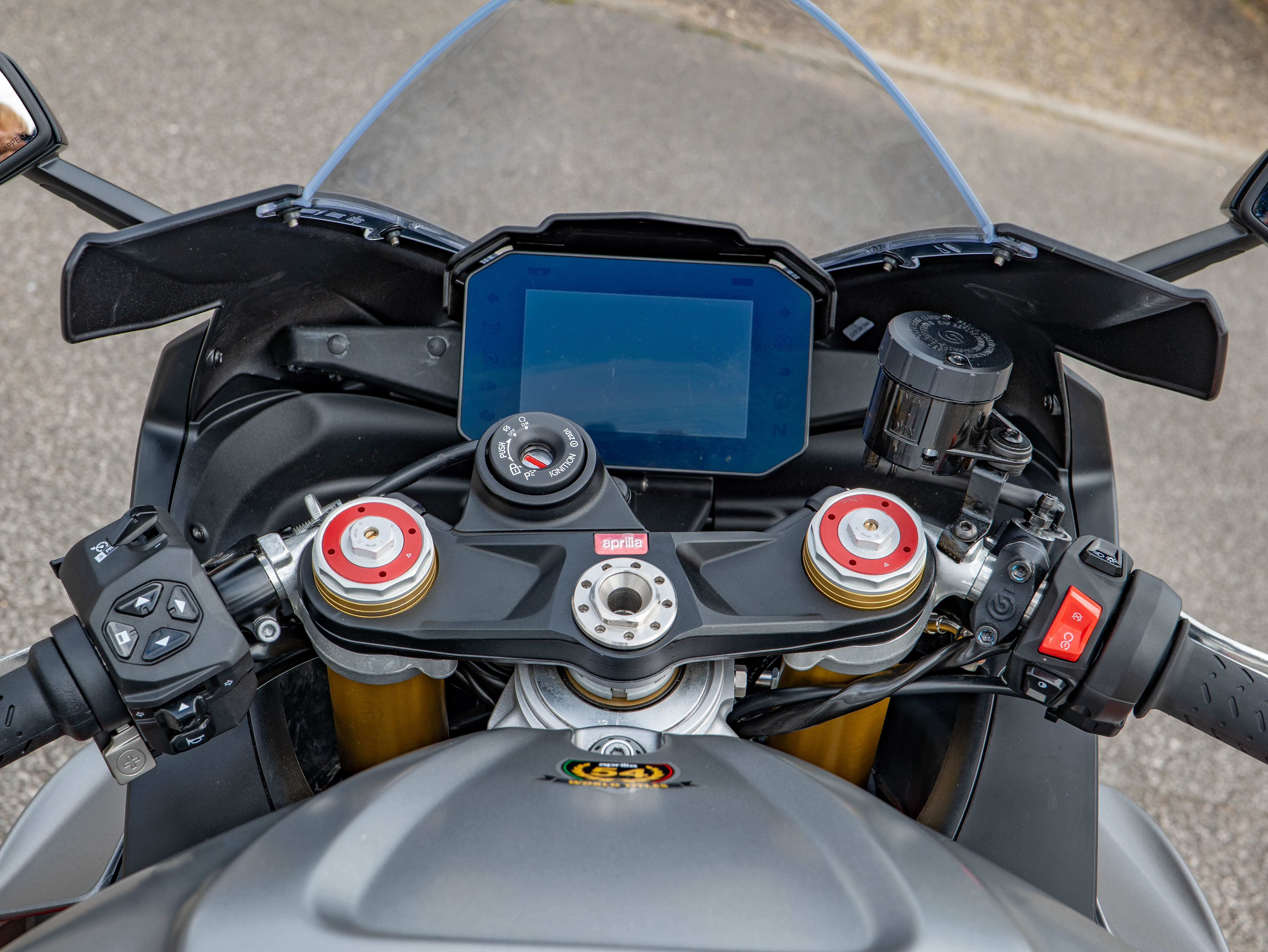 The RSV4 1100 is equipped with Aprilia's advanced APRC (Aprilia Performance Ride Control) electronic suite, ensuring supreme control and rider customisation. This comprehensive package includes multi-map Ride-by-Wire, Traction Control (ATC), Wheelie Control (AWC), Engine Brake Control (AEB), Launch Control (ALC), Speed Limiter (APL), Cruise Control (ACC), and a seamless Quick Shift (AQS) system for up and down changes. Riders can fine-tune the bike's characteristics via six distinct Riding Modes (three for track, three for road). Superior stopping power is guaranteed by Cornering ABS and powerful Brembo Stylema calipers, complemented by fully adjustable suspension for razor-sharp handling. All vital information is displayed on a crisp 5-inch TFT colour display, and the bike features full LED lighting with DRL.