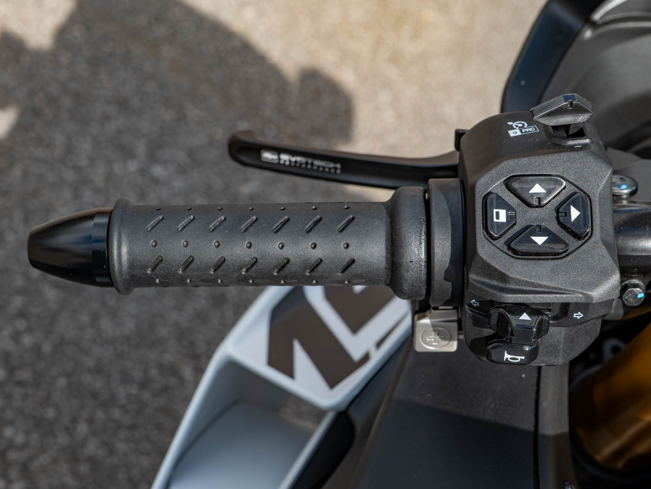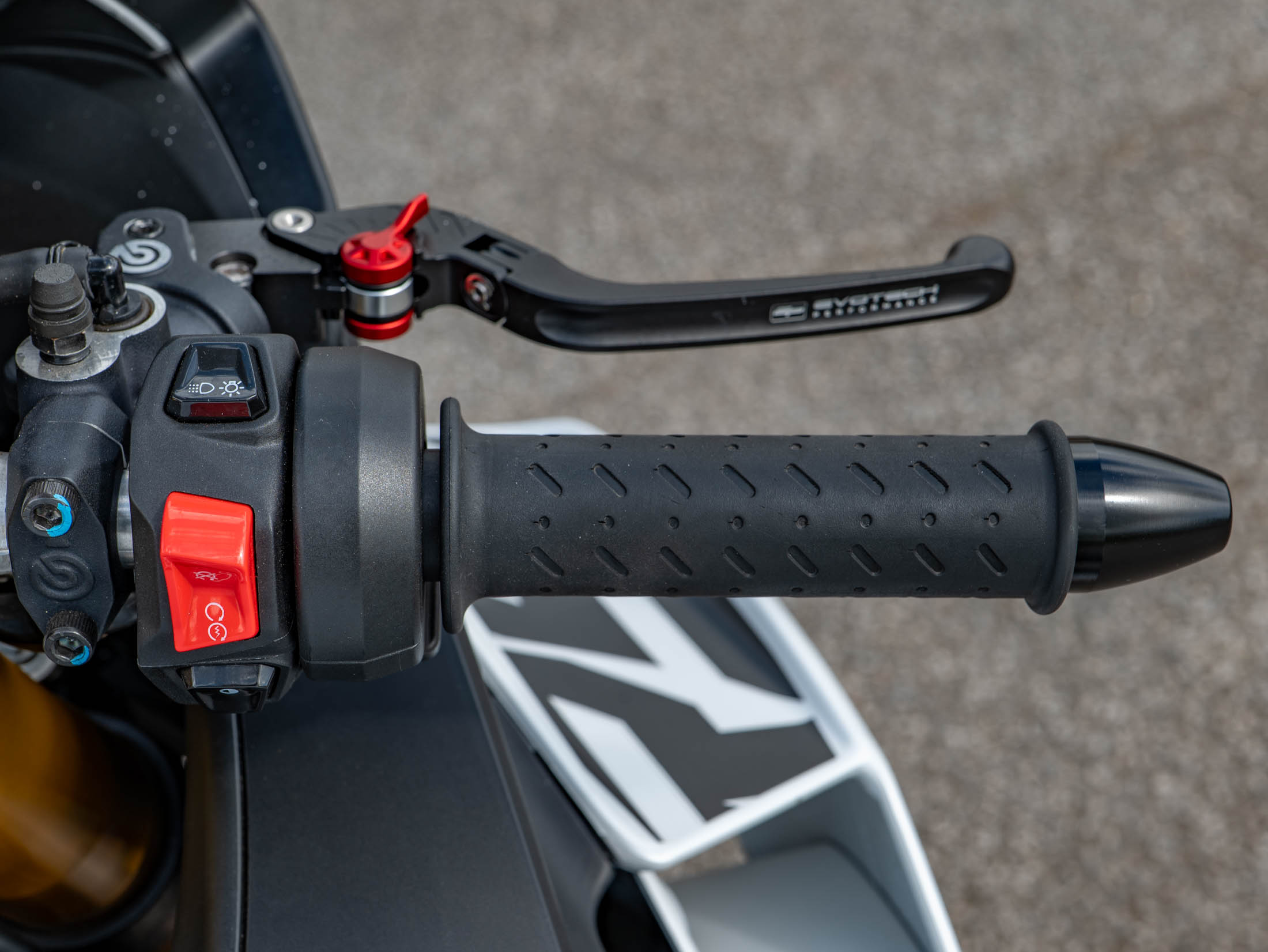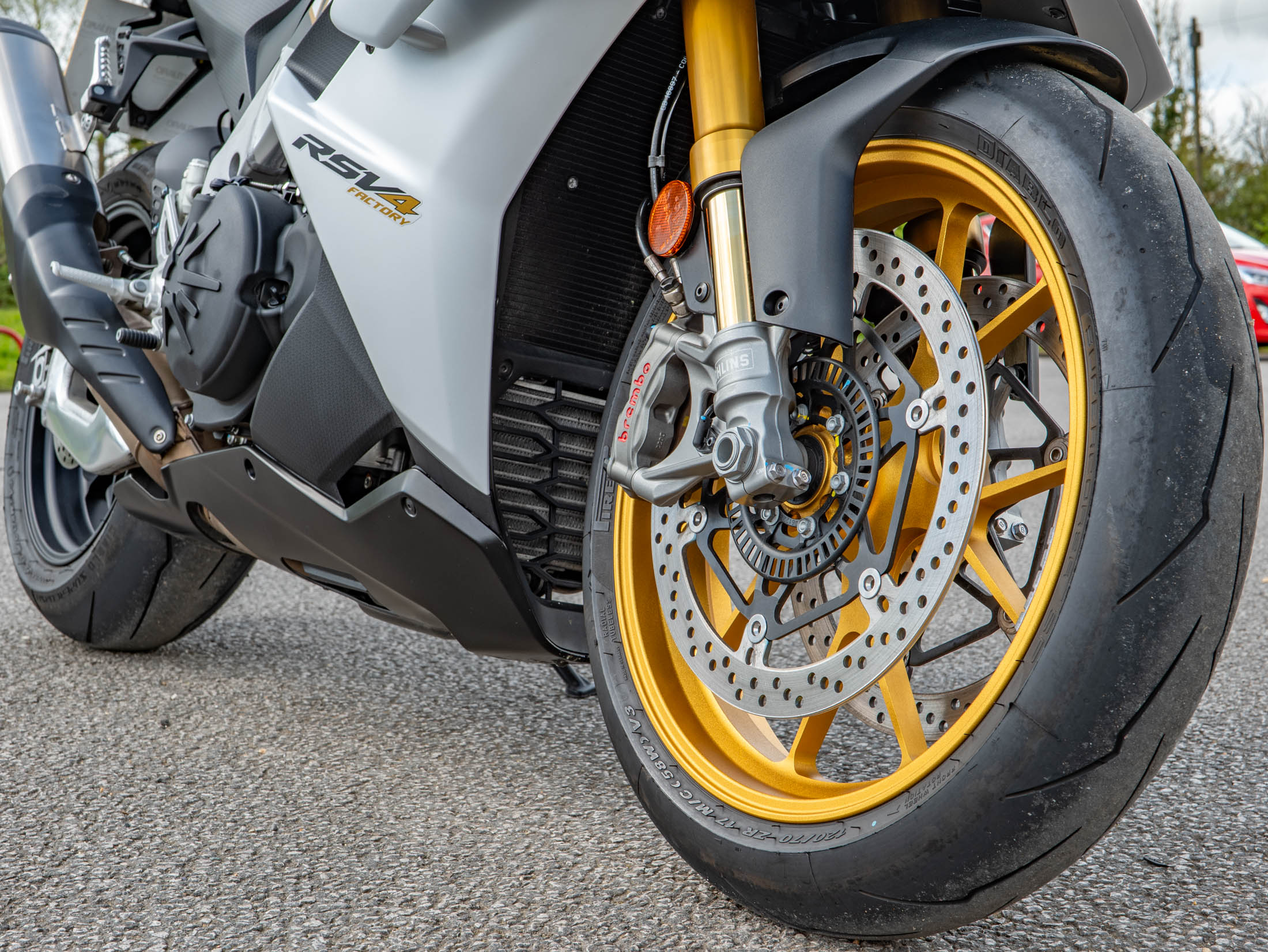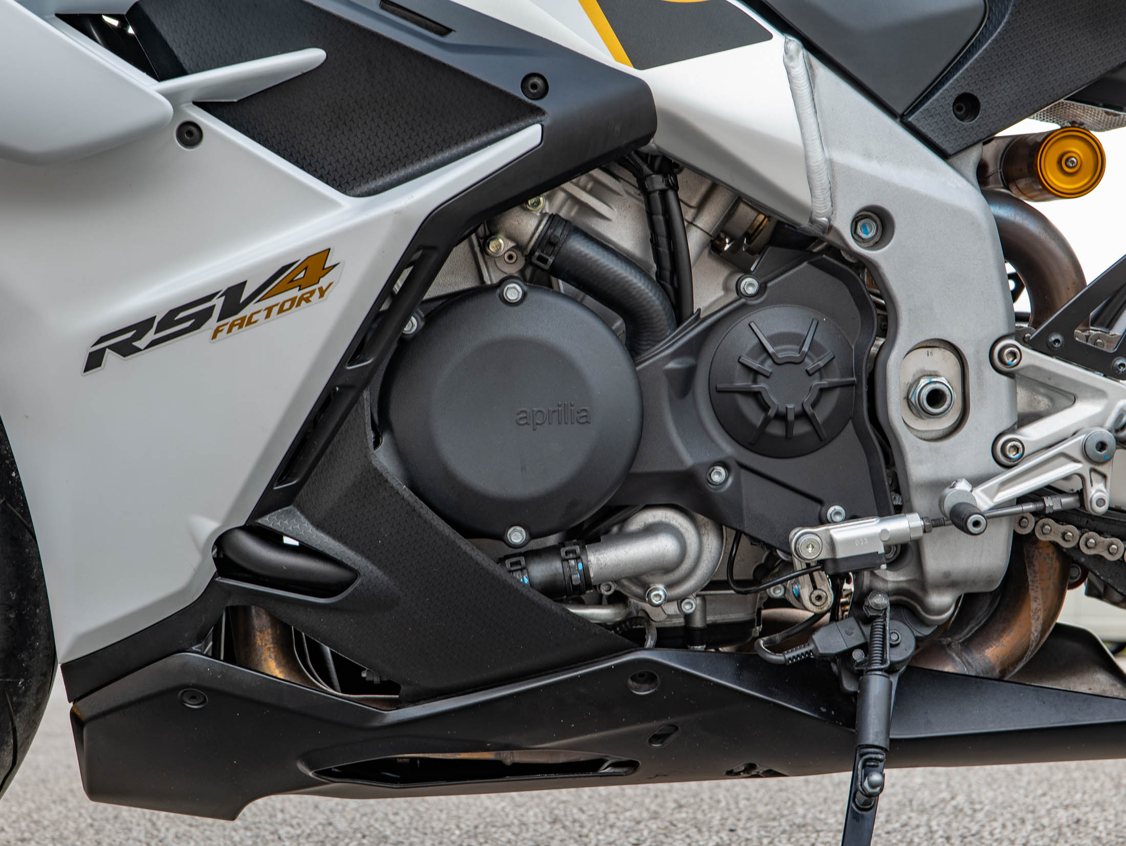 This Factory model is a "standard" bike in terms of its core architecture but features premium Evotech levers for enhanced tactile control. The performance is harnessed by the most sophisticated electronics suite available, including the Marelli 11MP ECU, which manages the semi-active Öhlins suspension, cornering ABS, and the comprehensive a-PRC (Aprilia Performance Ride Control) system.