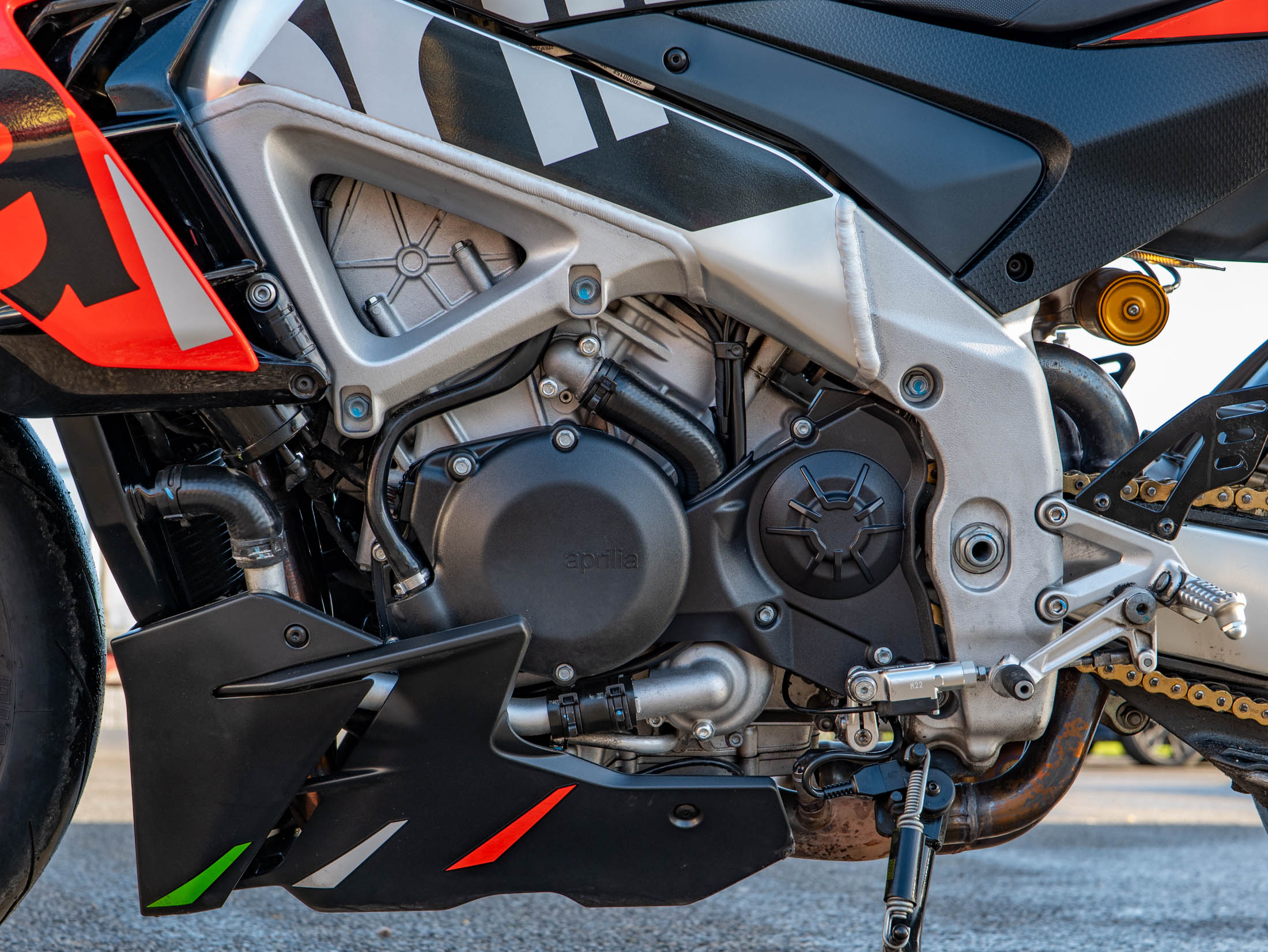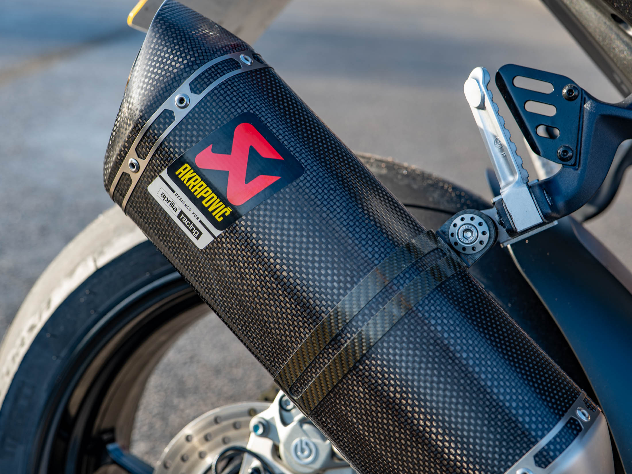 The heart of the Tuono V4 Factory is its legendary 1,077cc 65° V4 engine, pushing out a breathtaking 175 hp and delivering a savage, yet manageable power delivery and a unique, intoxicating sound. This example is further enhanced by an Akrapovič Silencer, which not only liberates more of that V4 soundtrack but also saves weight and looks fantastic.