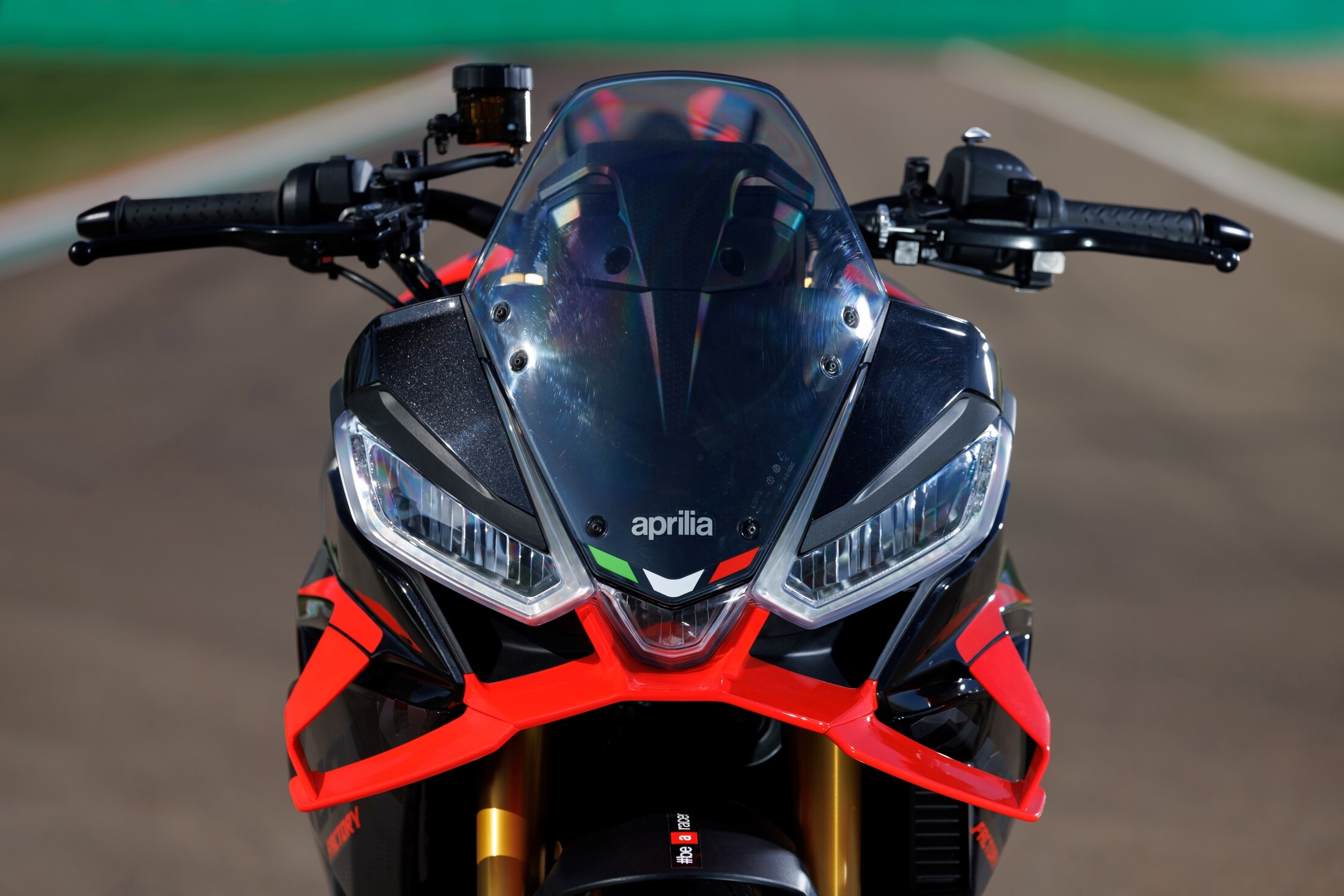 Technology is paramount, with a comprehensive APRC (Aprilia Performance Ride Control) electronics package, managed by a sophisticated 6-axis IMU. This includes multi-map Cornering ABS, predictive Traction Control (ATC), Wheelie Control (AWC), Engine Brake (AEB), Engine Map (AEM), Cruise Control (ACC), Pit Limiter (APL), Slide Control (ASC), and Launch Control (ALC) for perfect track starts. Six customisable Riding Modes allow you to fine-tune every aspect of the bike's character, all displayed on a vivid 5-inch TFT colour panel.