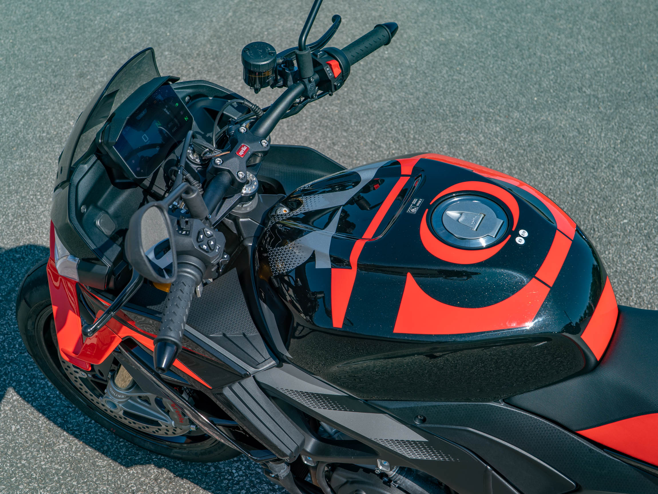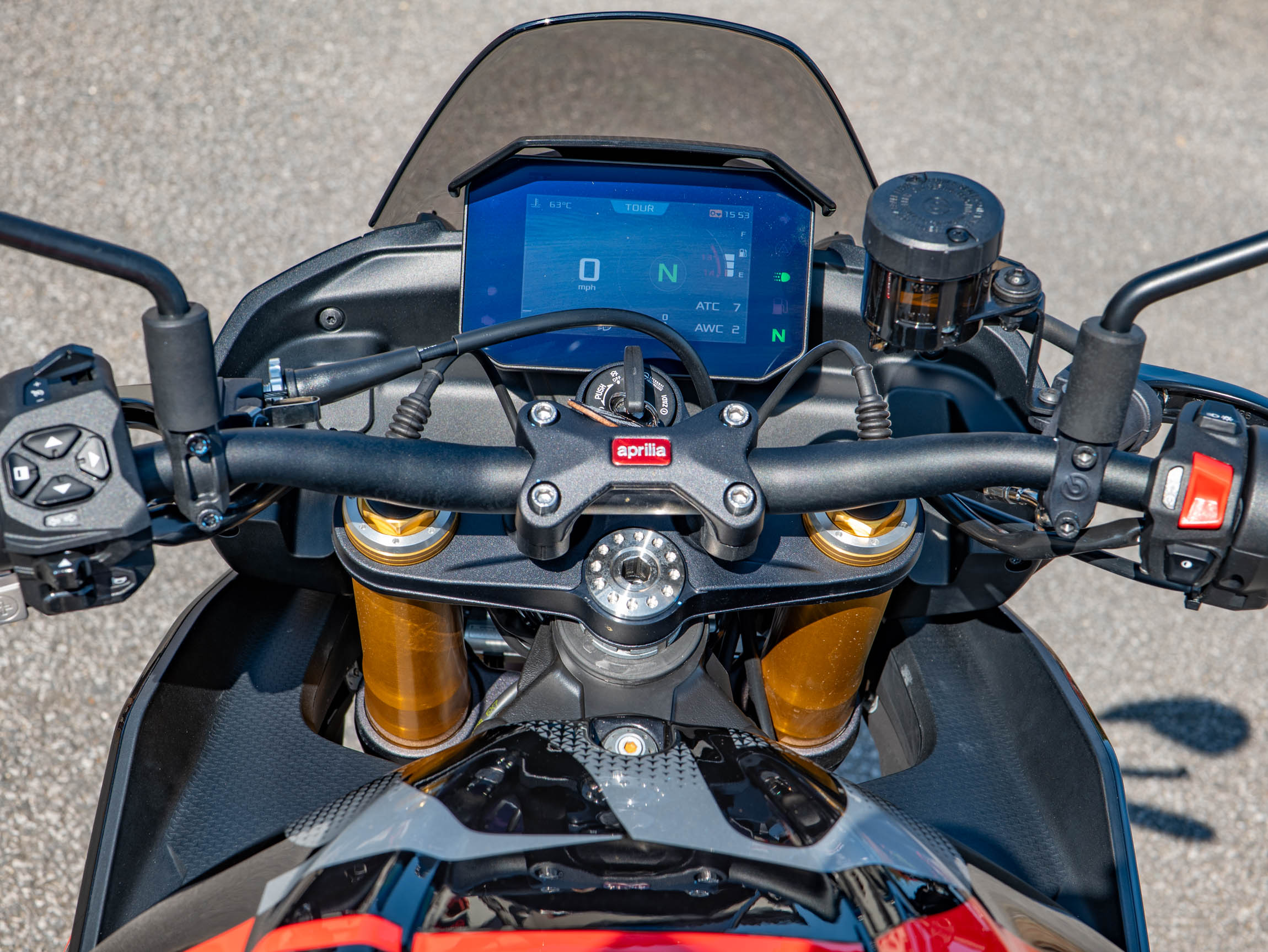 The heart of the beast is the formidable 1099cc 65° V4 engine, which delivers a ferocious 180 hp through a precise six-speed manual transmission. This power is expertly managed by the Aprilia Performance Ride Control (a-PRC) electronics suite, managed by a 6-axis IMU. The suite includes multi-level Traction Control, adjustable Wheelie Control, three-level Cornering ABS, and selectable Riding Modes. Adding to the speed and excitement is the bi-directional Quickshifter for lightning-fast, clutchless gear changes.