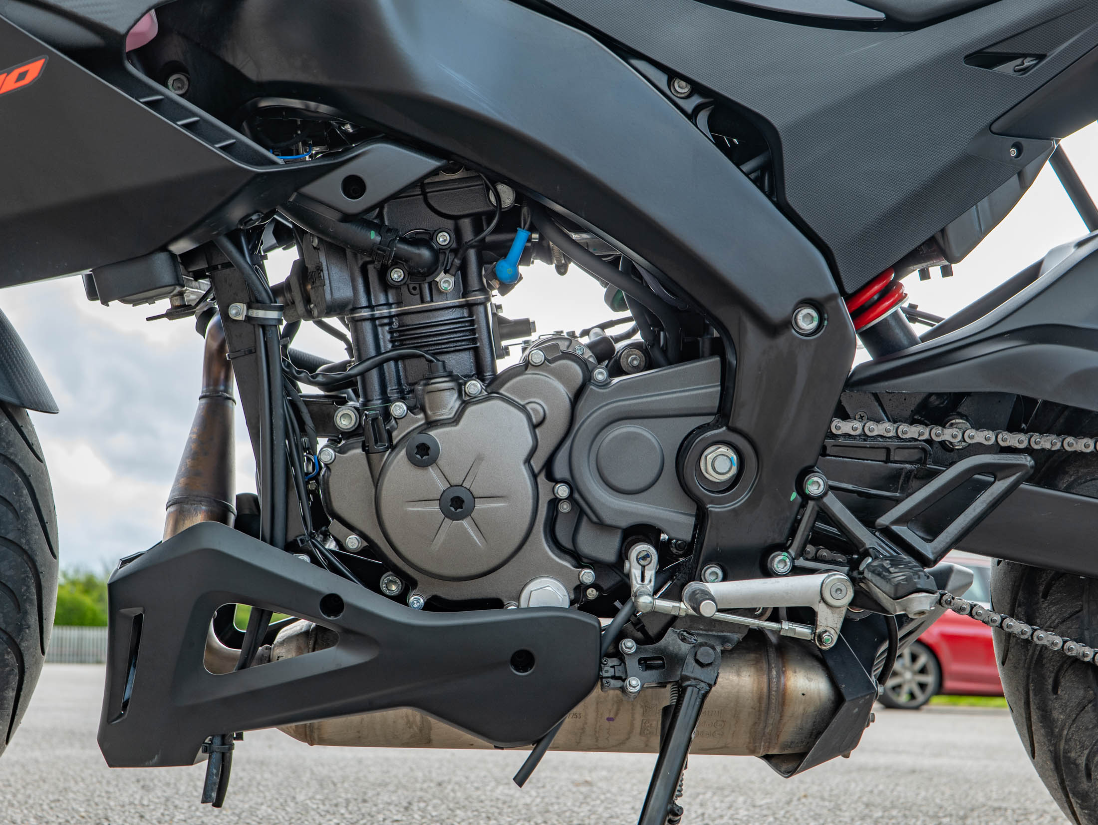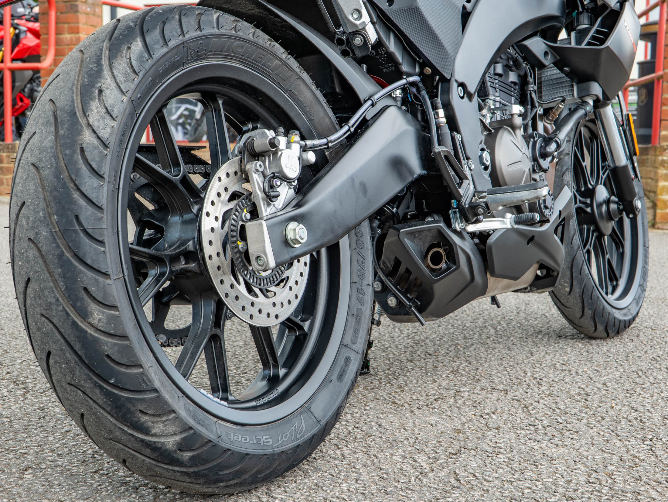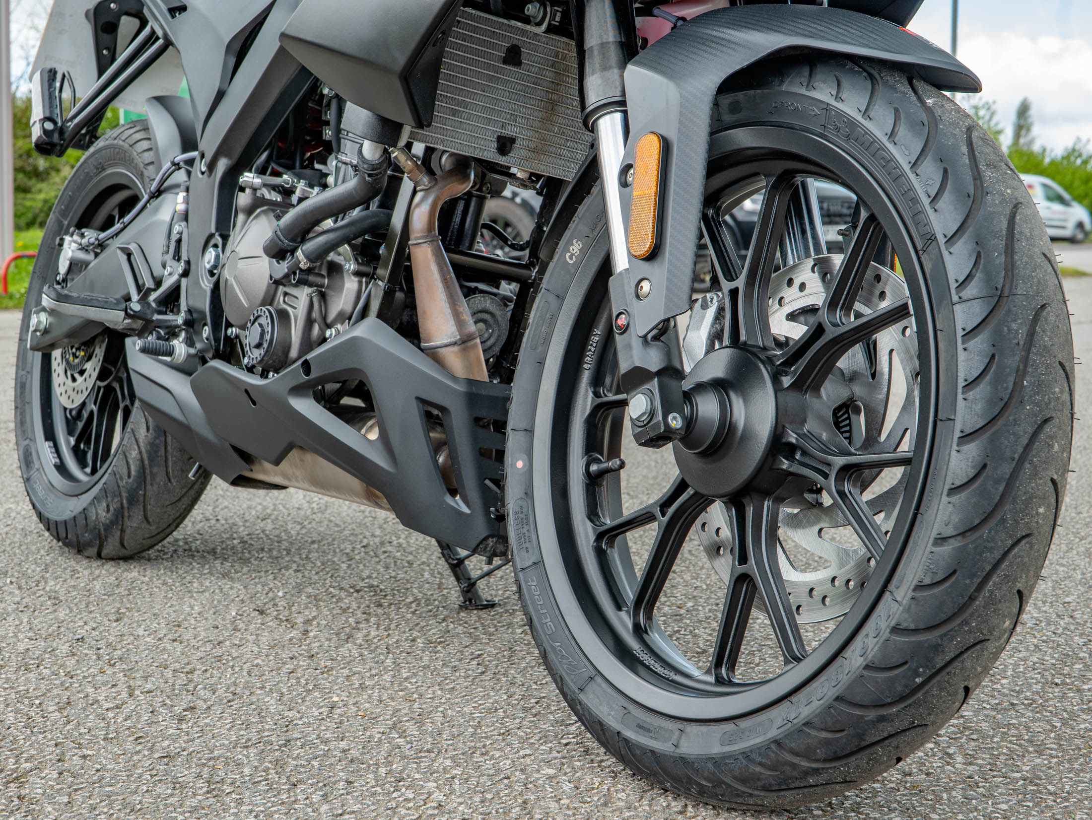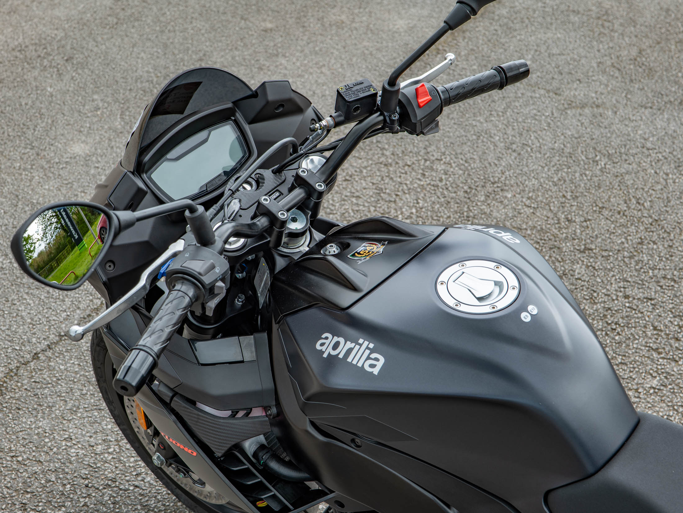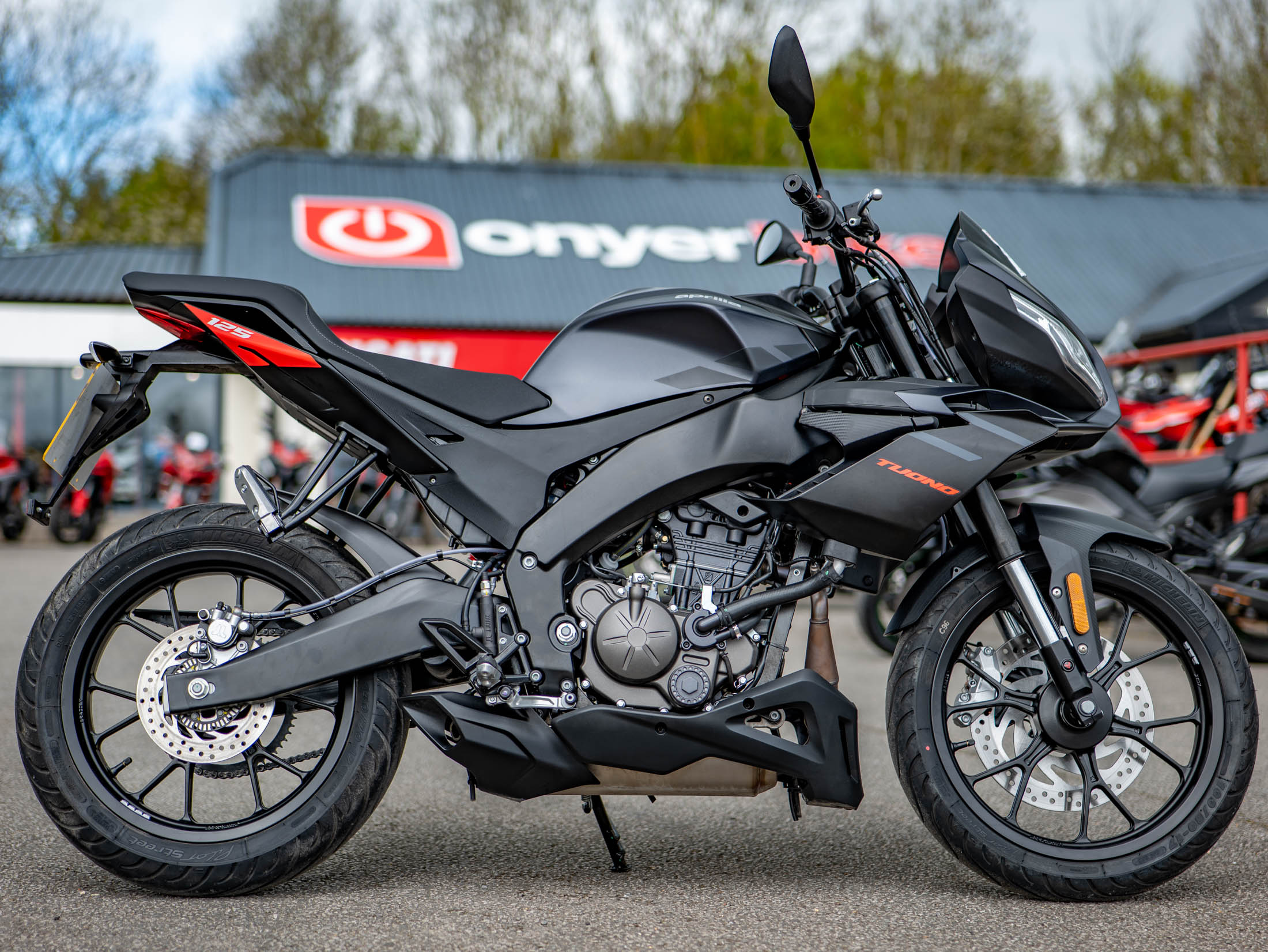 Riding the Tuono 125 is a refined experience thanks to the upright ergonomics and a protective top fairing that offers superior wind deflection compared to traditional naked bikes. The bike is equipped with premium hardware, including 40mm inverted forks and a powerful braking system with Bosch dual-channel ABS. For added peace of mind, this 15 hp machine features switchable traction control, a rare and welcome safety feature in the 125cc class.