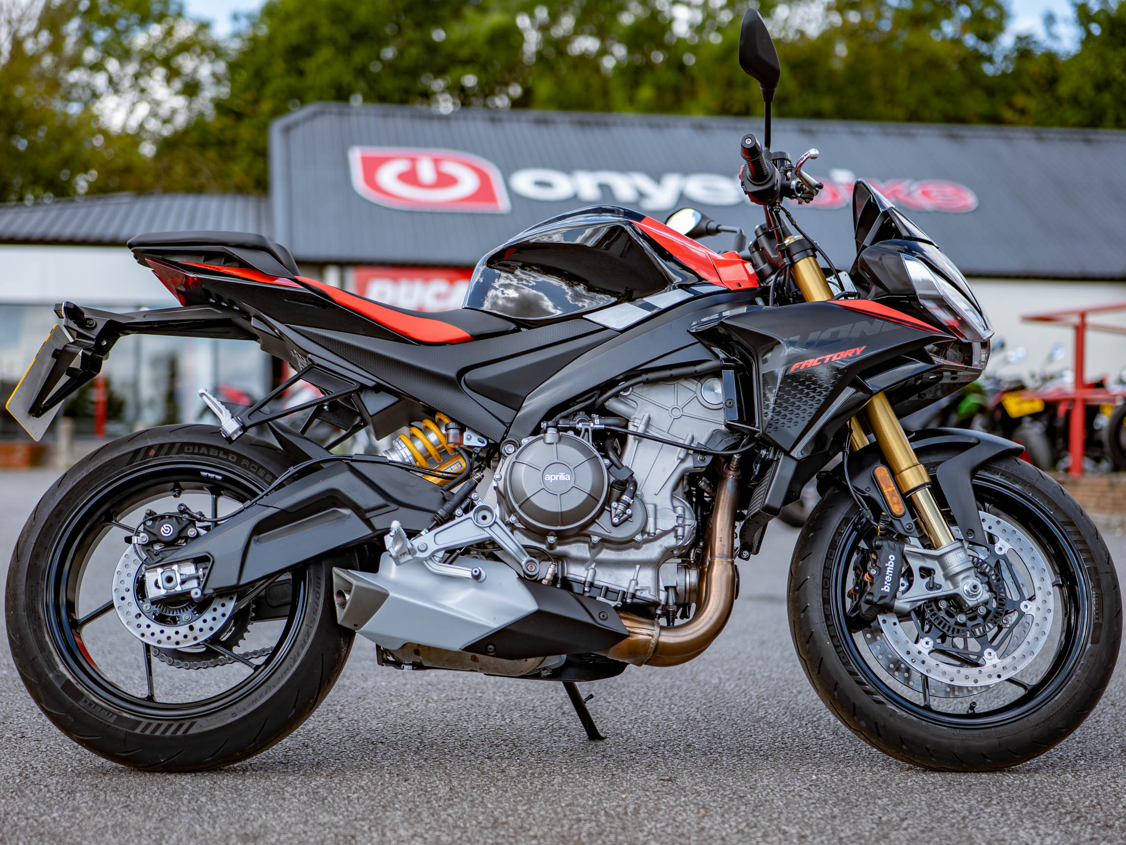 This model comes with a full electronics suite as standard, including Aprilia's advanced APRC (Aprilia Performance Ride Control) system. This includes five Riding Modes, multi-map Cornering ABS, Traction Control, Wheelie Control, and Cruise Control. The bi-directional quickshifter is also standard, providing smooth, clutchless gear changes. This Tuono 660 Factory is ready for a new owner to experience its superior performance and handling. It is available from On Yer Bike, your official Aprilia dealer in Aylesbury. Delivery is also available across mainland UK.