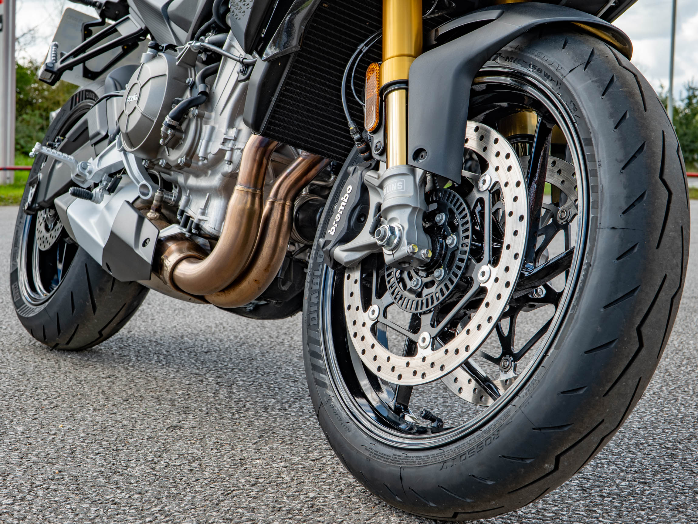 The Tuono 660 Factory is powered by a potent 659cc parallel-twin engine, which has been tuned to produce a punchy 105 hp, delivering an exhilarating and dynamic ride. This is the top-of-the-range model, featuring a number of significant upgrades over the standard version. The most notable is the high-quality, fully adjustable Öhlins suspension at the front and rear, which provides a level of handling and precision that is unrivalled in its class. The bike is also equipped with a lightweight lithium-ion battery, contributing to a reduced kerb weight of just 181 kg.