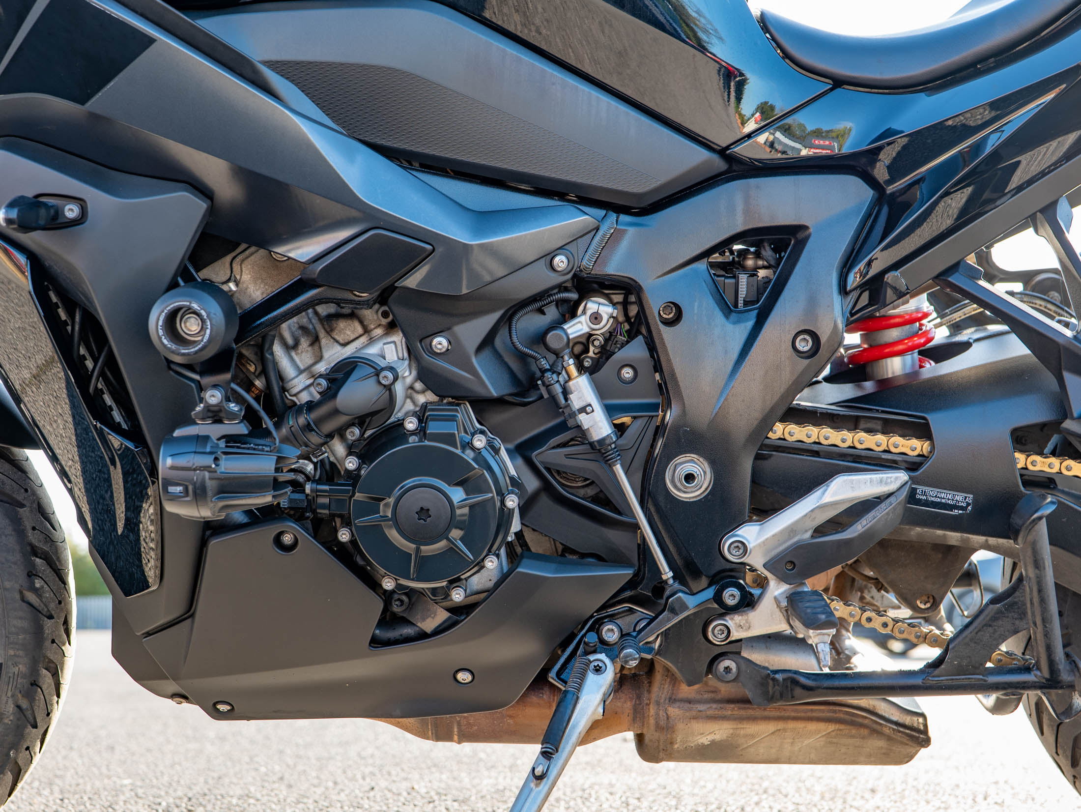The heart of the S 1000 XR TE is the 999cc inline four-cylinder engine, derived from the legendary S 1000 RR, which delivers a potent 165 hp. This provides exhilarating performance across the rev range, making the bike equally at home on a spirited B-road blast or comfortably cruising on the motorway. As a true 'TE' specification bike, it features the very best in electronic sophistication, including Dynamic ESA (Electronic Suspension Adjustment) and Riding Modes Pro, allowing the rider to tailor the bike’s performance and handling characteristics instantly to suit any road surface or weather condition. The superb, bi-directional Quickshifter and gold chain further enhance the dynamic riding experience, offering slick, seamless gear changes.