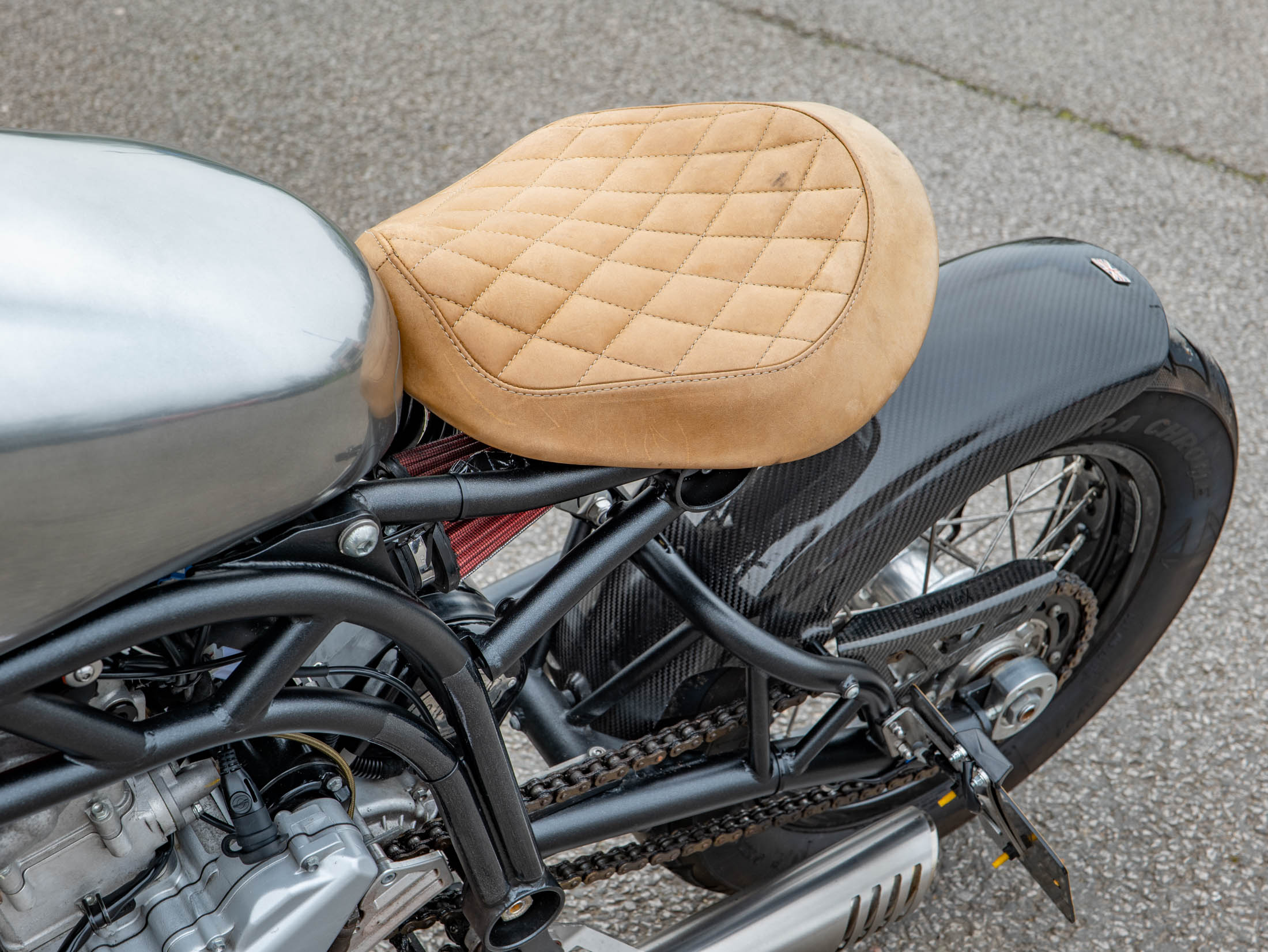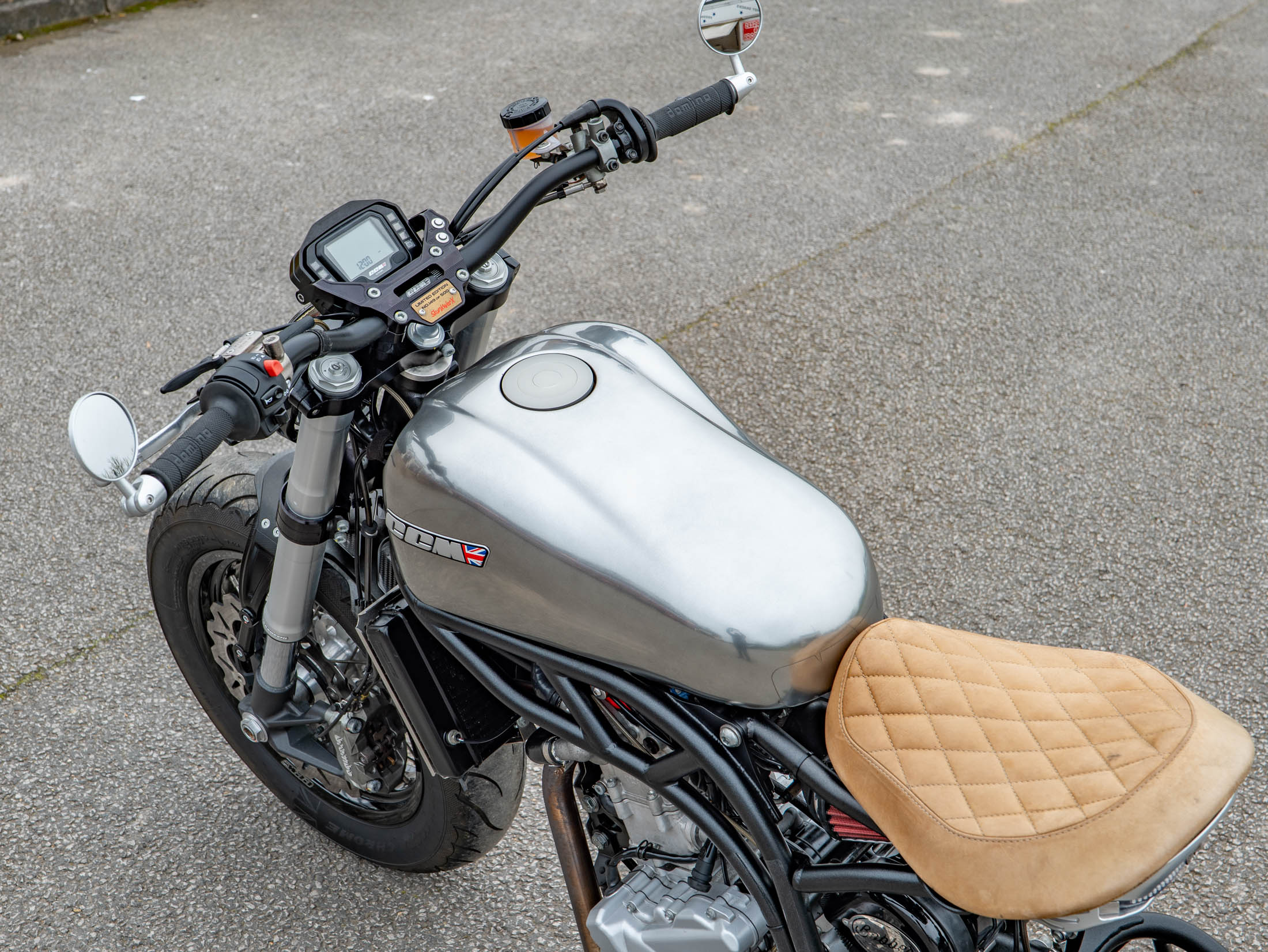 As a piece of rolling art, this Bobber features a wealth of premium components, including a floating tractor-style solo leather seat and 16-inch spoked wheels wrapped in Avon Cobra Chrome tyres. The hand-TIG-welded high-strength steel frame is left visible to showcase the artisan craftsmanship. Despite its 1930s-inspired "stripped-back" appearance, the bike is equipped with modern performance hardware, including Brembo brakes and a protective radiator guard. This specific example also includes the original number plate holder, allowing the next owner to maintain its authentic factory look.
