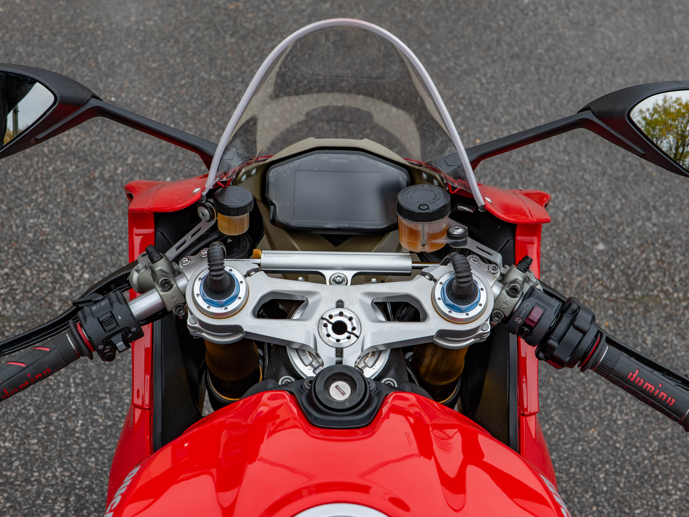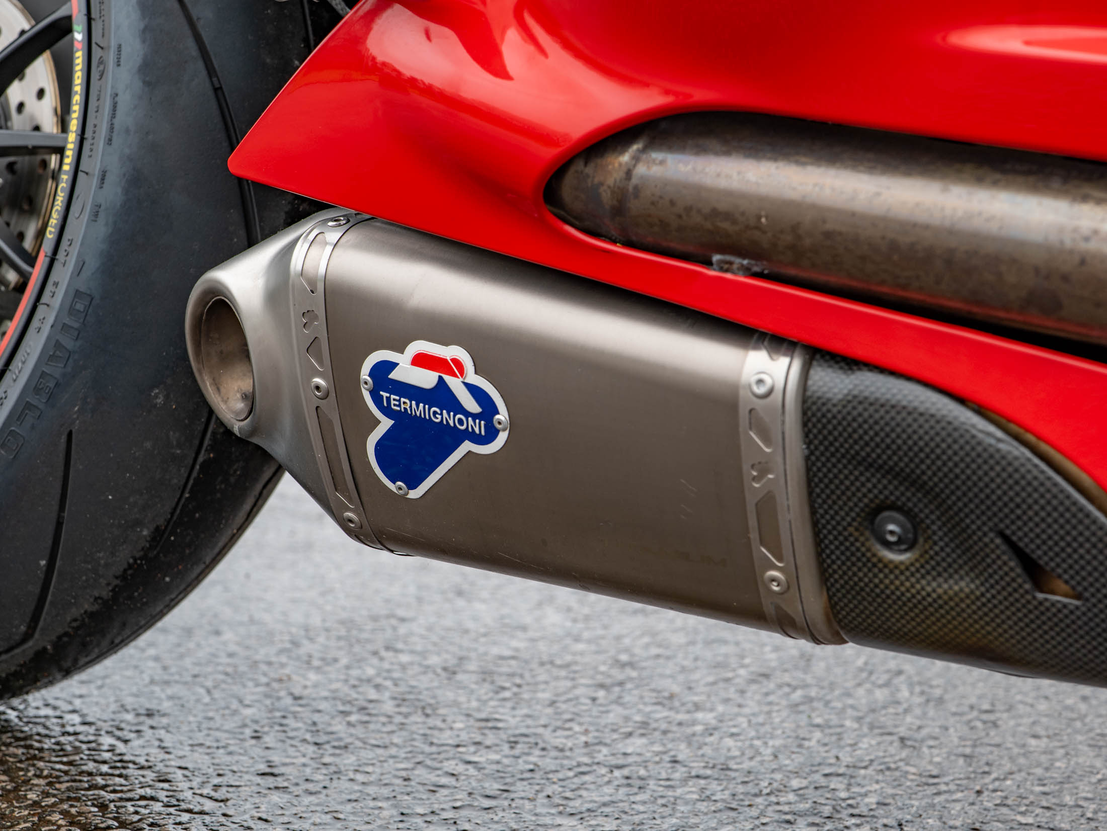 This Panigale is highly specified with desirable performance and aesthetic upgrades. The phenomenal sound of the Superquadro engine is amplified by a sporty Termignoni (Termi) Silencer, a must-have upgrade for these superbikes, which also enhances performance. The bike features extensive carbon fibre additions, including a Carbon Hugger and a Carbon Front Mudguard, elevating its exclusive racing aesthetic. Further accessories include a Tail Tidy to clean up the rear end, a protective Rad Guard for the radiator, a Tank Pad to protect the paint, and a Steering Damper for enhanced stability at speed. For peace of mind, a Tracker has been fitted, offering added security. The result is a stunning, well-maintained machine that is a great example of the original Panigale.