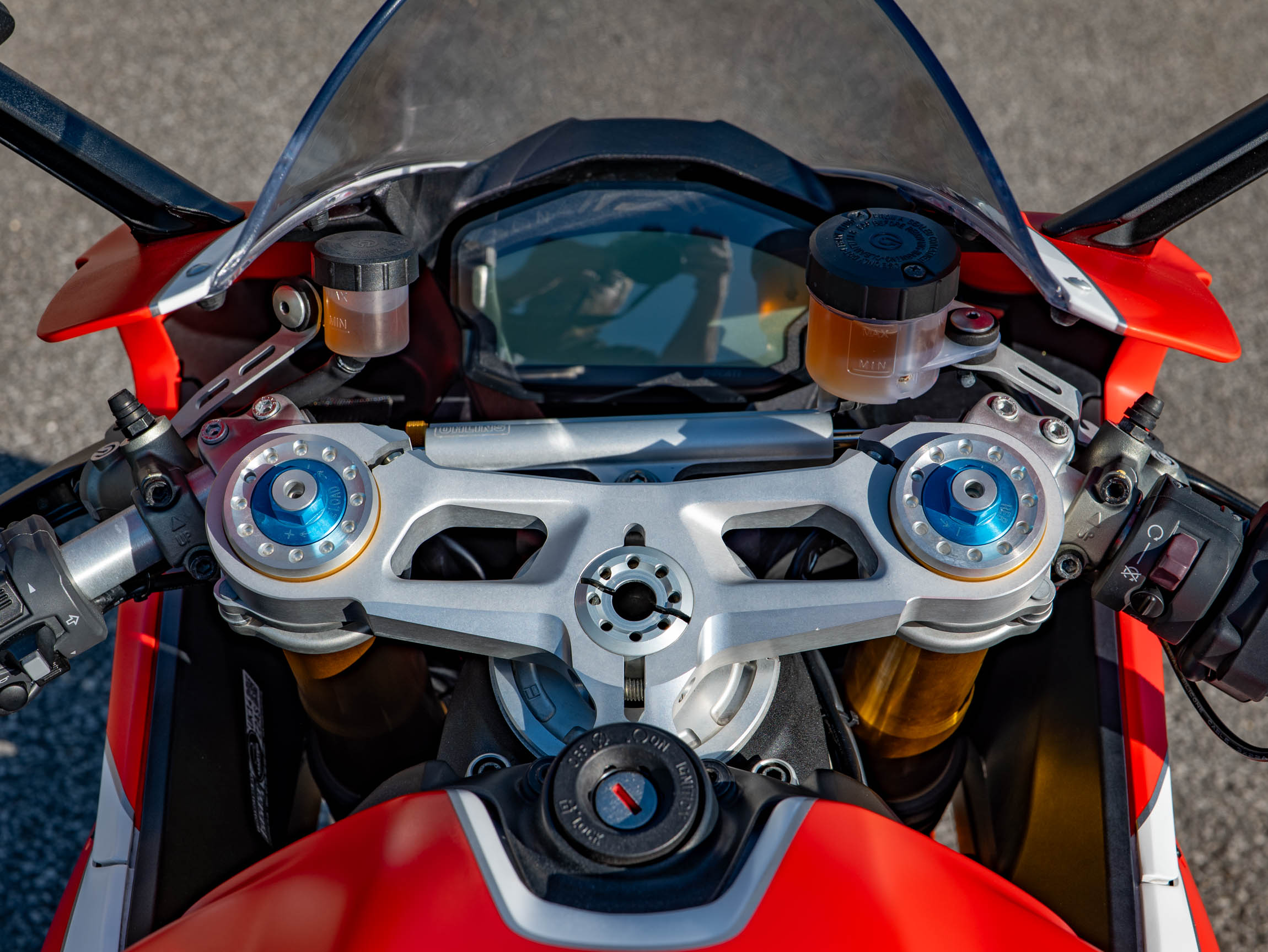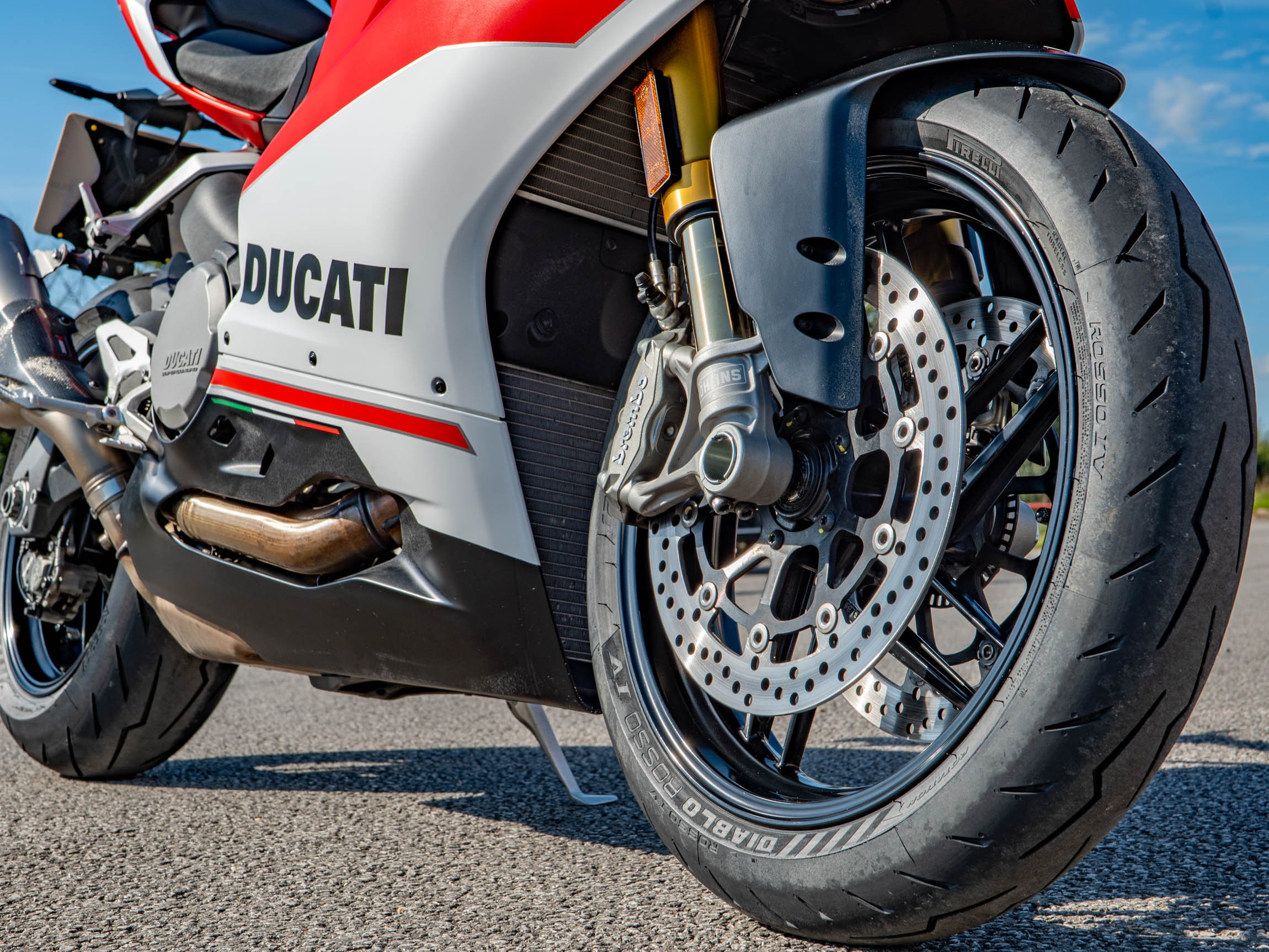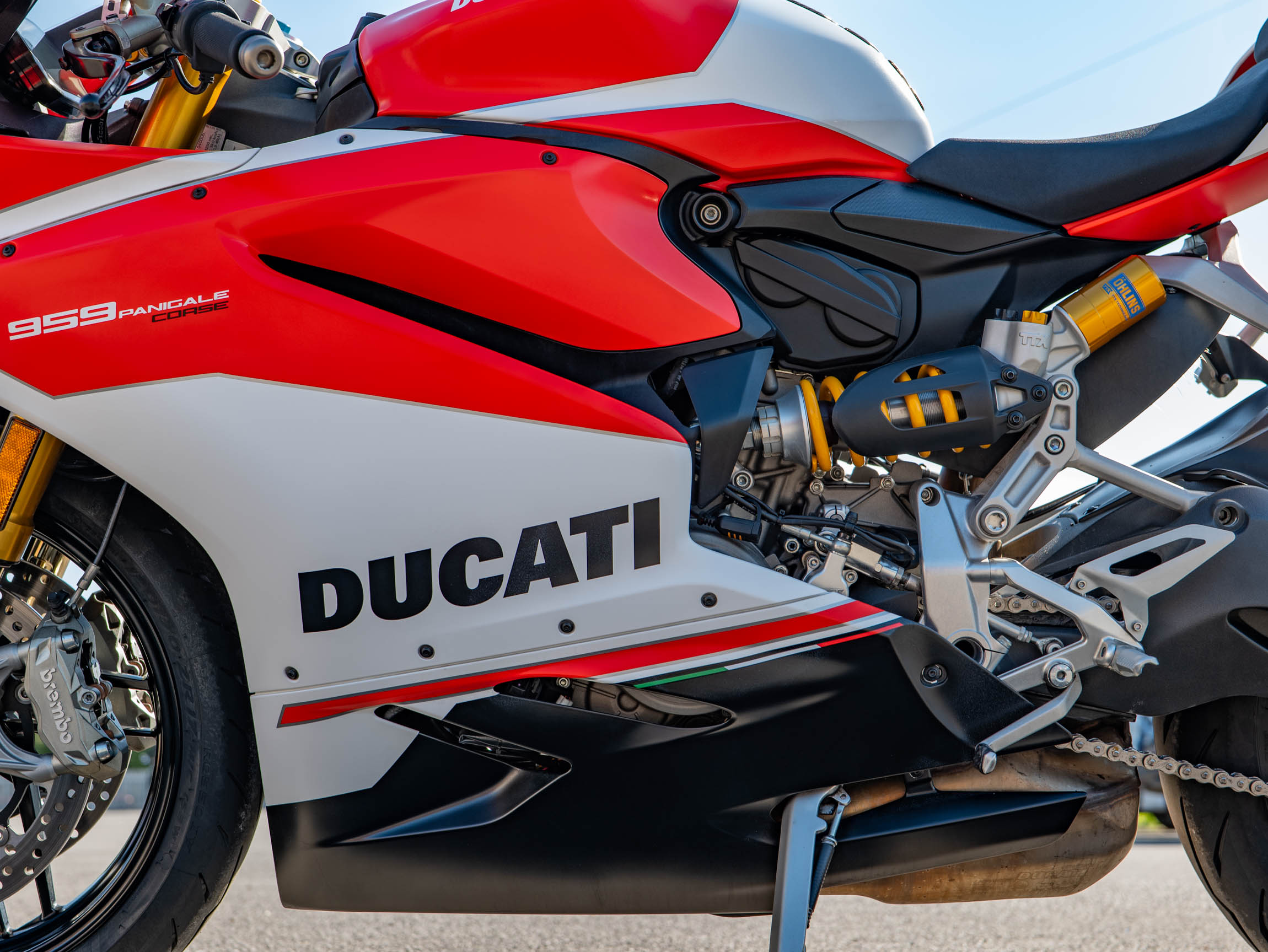 At its heart lies the formidable 955cc Superquadro L-Twin engine, which delivers an exhilarating 150 hp at 10,500 rpm. Unlike the larger V4s, the 959 Panigale offers a uniquely balanced blend of usable road performance and track-day capability, allowing riders to exploit its full potential without being overwhelmed. The engine note is profoundly enhanced by the standard fitment of a homologated Akrapovic performance exhaust system, providing a deep, resonant soundtrack befitting a true Italian sports machine. Handling is sharpened considerably over the standard model, thanks to the Corse specification's multi-adjustable Ohlins NIX30 front forks and Ohlins TTX36 rear shock absorber, complemented by an Ohlins adjustable steering damper for maximum stability under hard riding.