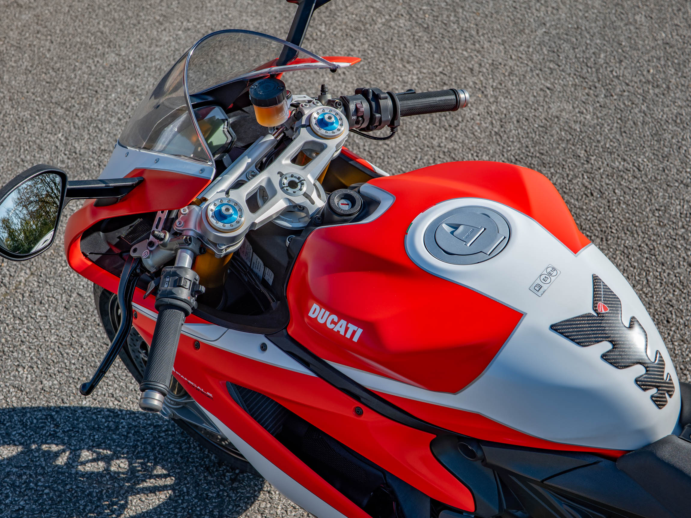 The electronic package ensures absolute confidence, featuring Bosch ABS, Ducati Traction Control (DTC), Engine Brake Control (EBC), and three distinct riding modes, all managed via the Full Ride-by-Wire system. Swift and precise gear changes are guaranteed by the Ducati Quickshifter (DQS). The premium feel is further cemented by desirable upgrades, including Oxford Heated Grips and LED indicators. This bike offers a truly engaging experience—it is a bike that begs to be ridden hard, flicking through corners with the surgical precision only a Panigale can offer.