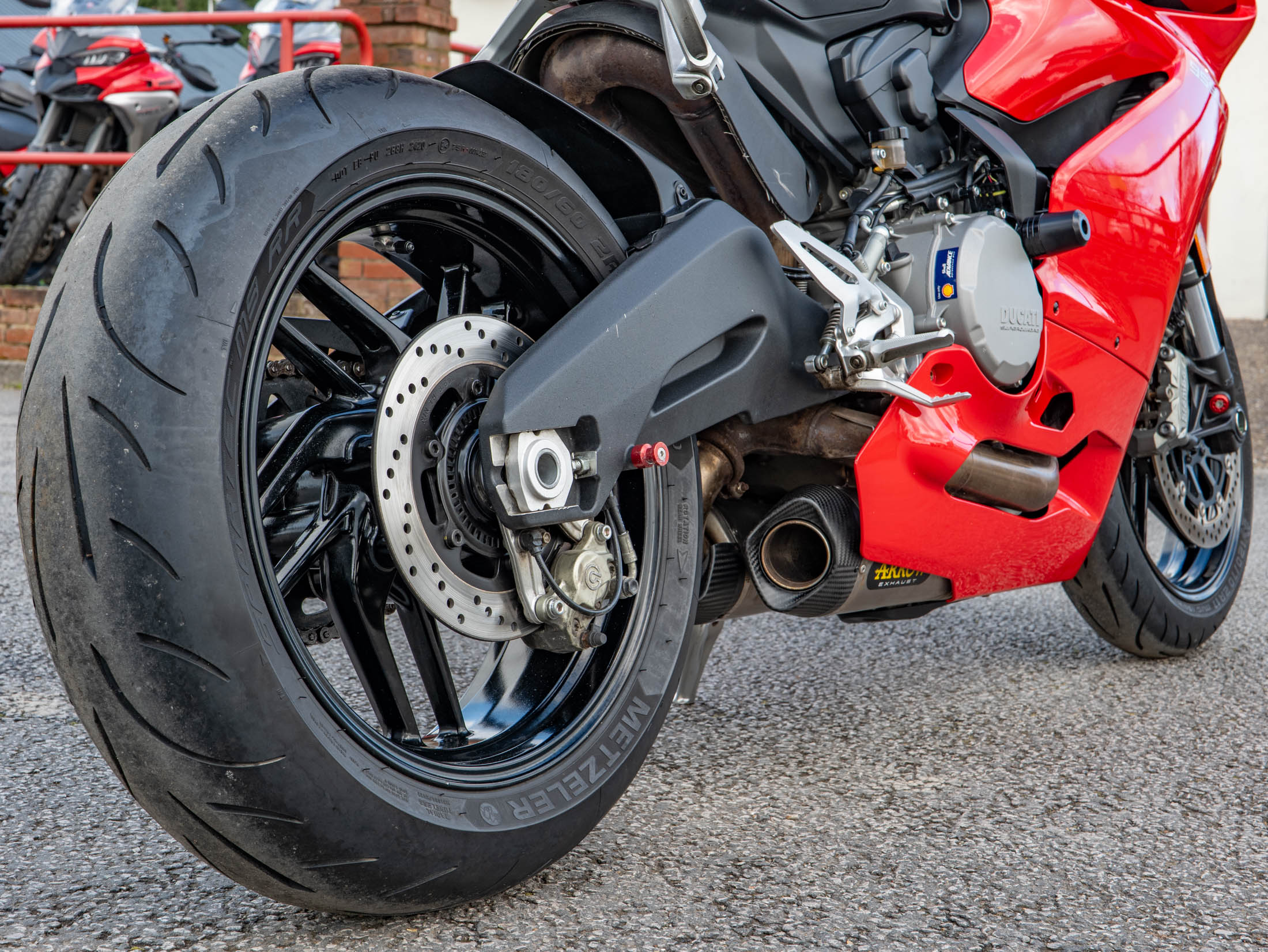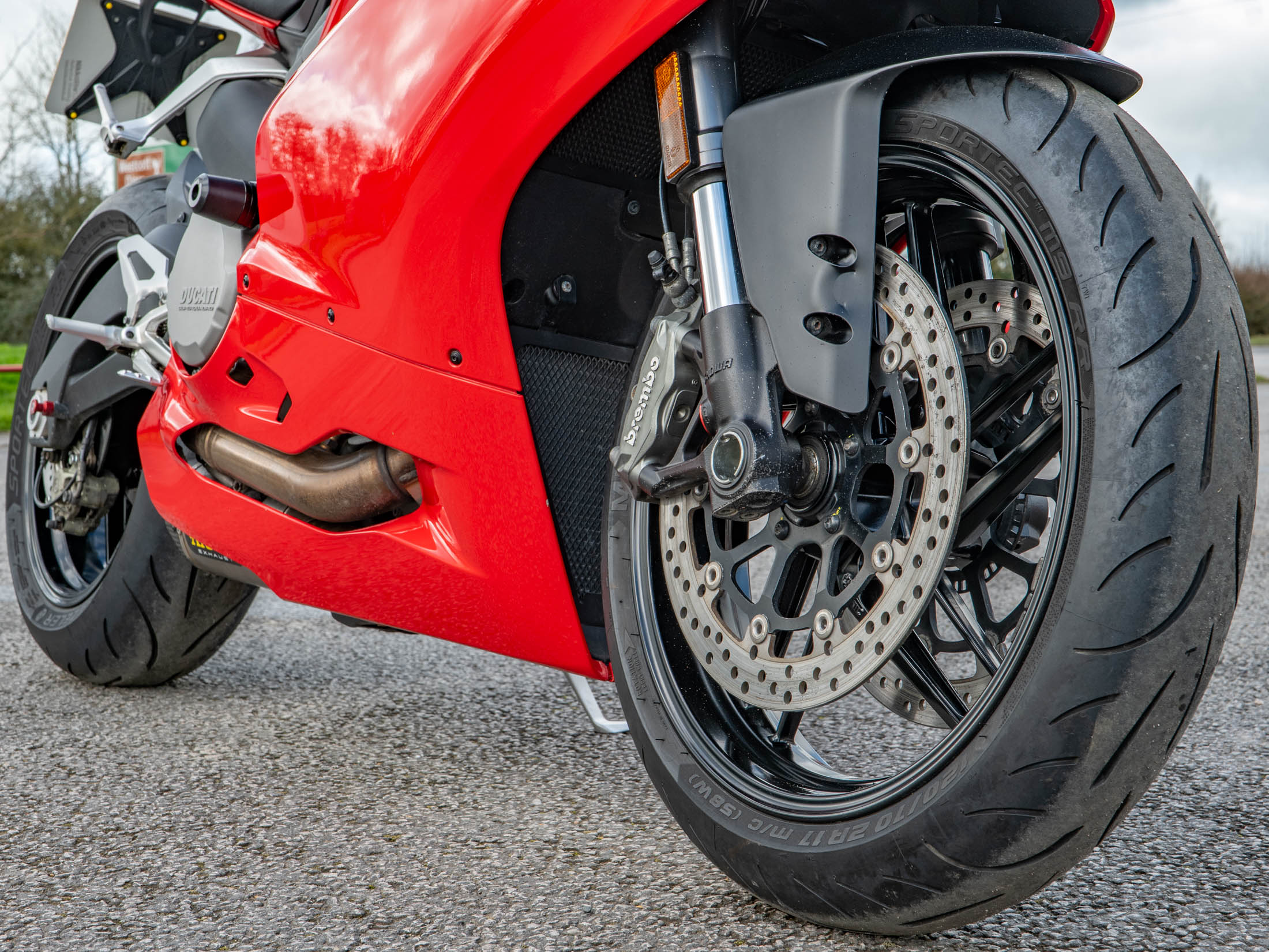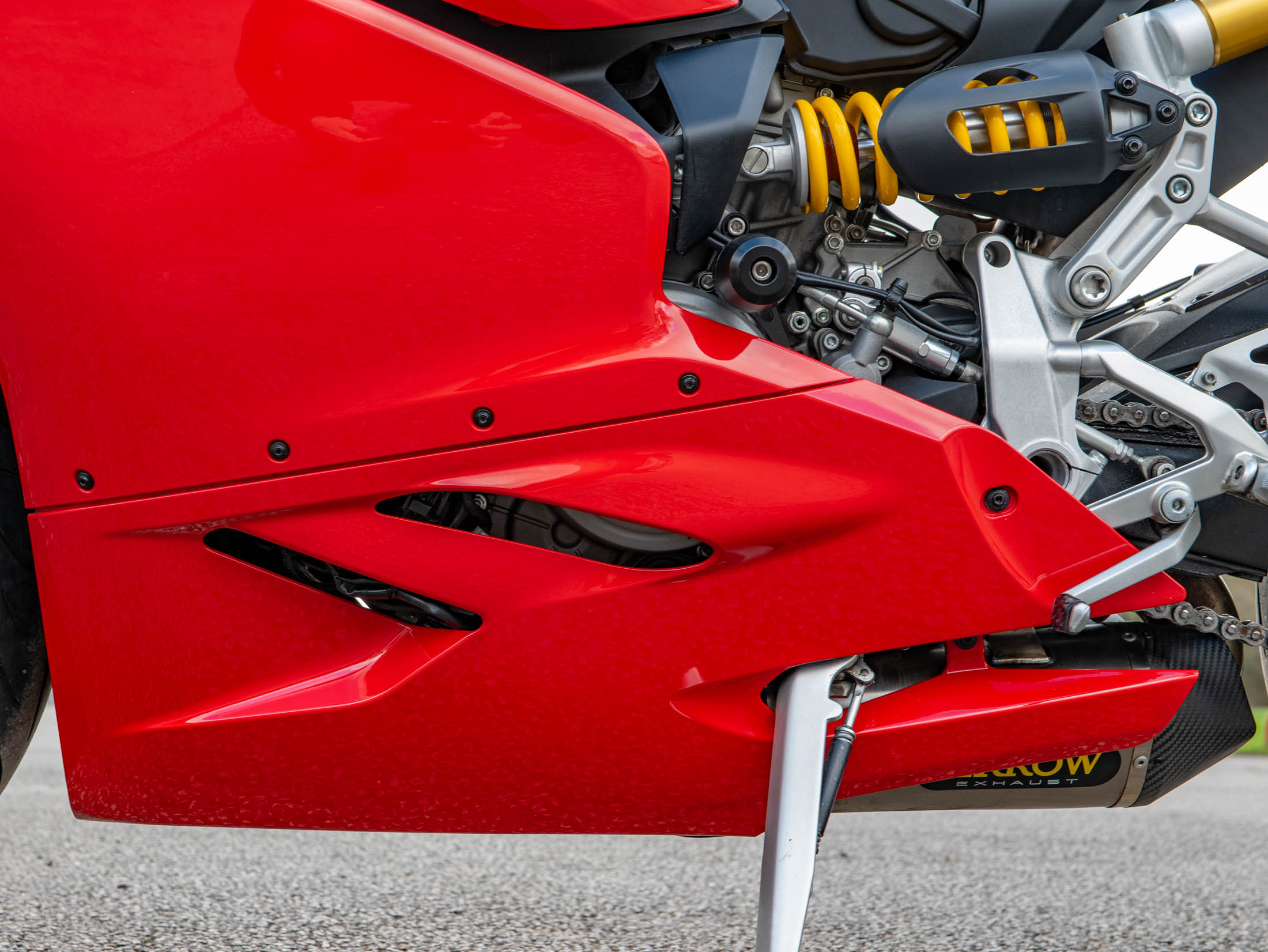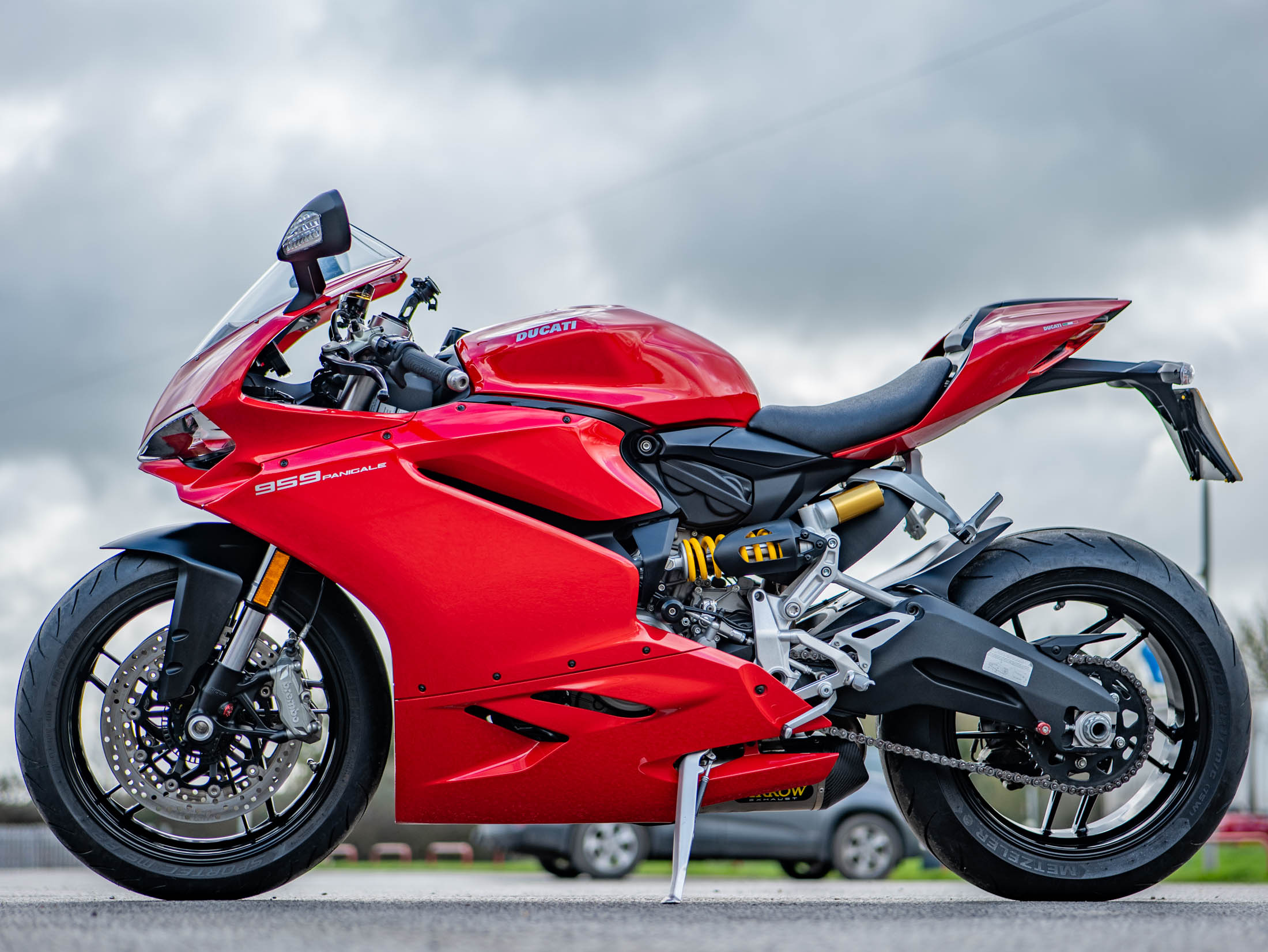 The heart of the 959 is the 955cc Superquadro L-twin engine, producing a potent 157 hp. This engine was developed to provide a broader powerband and more usable torque than its predecessor, the 899, ensuring that the 157 hp output is accessible whenever you need it. The bike features Ducati’s signature monocoque chassis, which uses the engine as a stressed member to keep the weight remarkably low and the handling incredibly precise. With its side-mounted twin mufflers (a signature of the Euro 4 era) replaced on this example by a premium Arrow performance exhaust, this 157 hp twin emits a deep, racing growl that is pure Ducati.