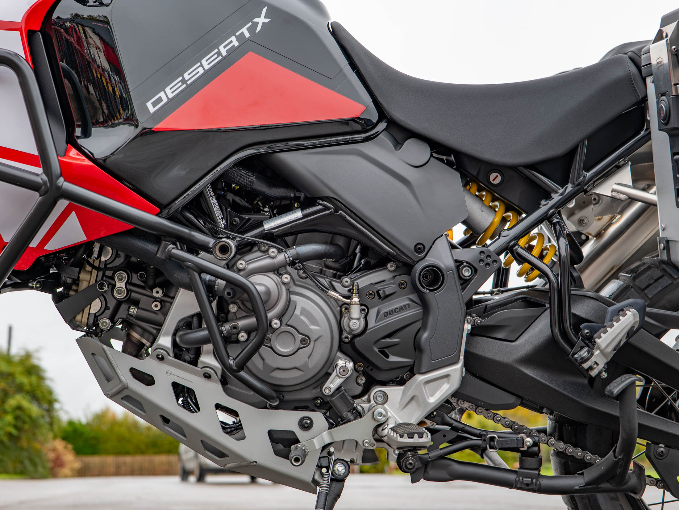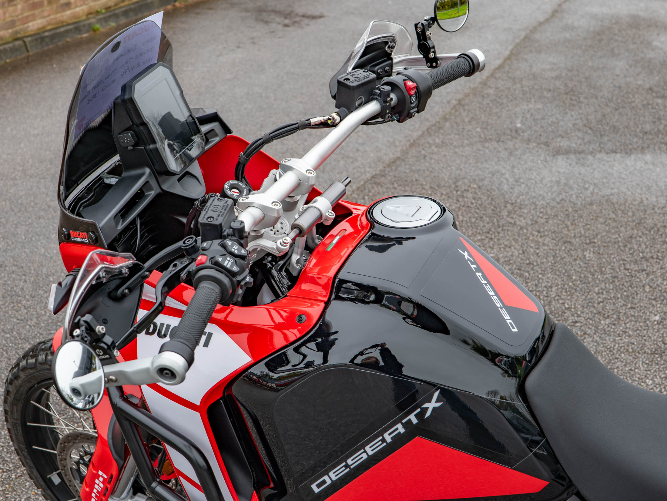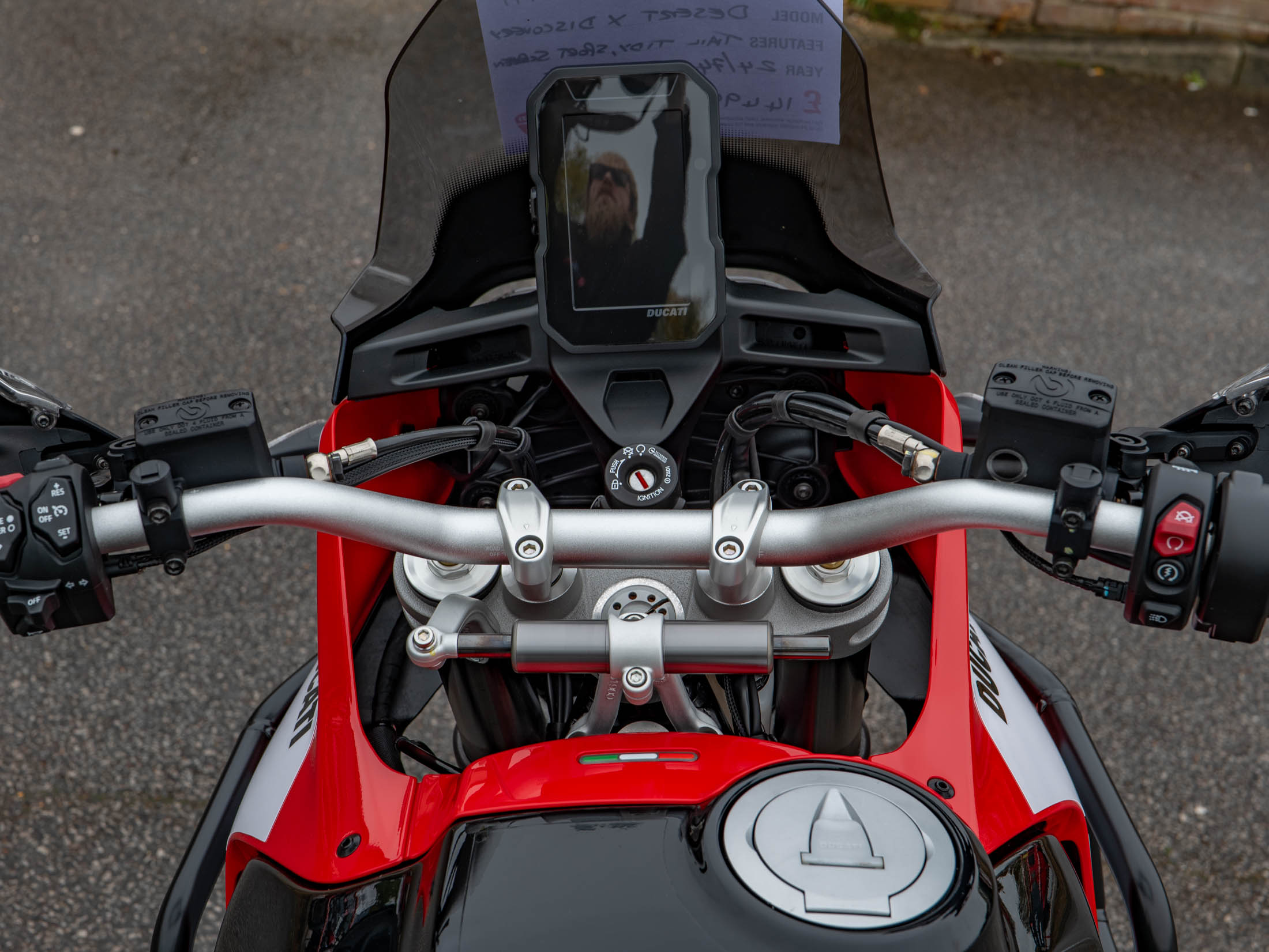 The experience of riding the DesertX is one of effortless capability and thrilling dynamism. The sophisticated electronics, including switchable Riding Modes and the excellent Quickshifter, allow the rider to perfectly tailor the bike’s character to any situation, while the long-travel Kayaba suspension setup, controlled by a Steering Damper for stability, simply devours rough terrain. The addition of a responsive aftermarket silencer elevates the experience further, delivering a deep, charismatic bark that truly brings the desmodromic L-twin to life and sounds magnificent on the open road. It is a machine that inspires confidence from the moment you swing a leg over it, feeling planted and composed regardless of the environment.