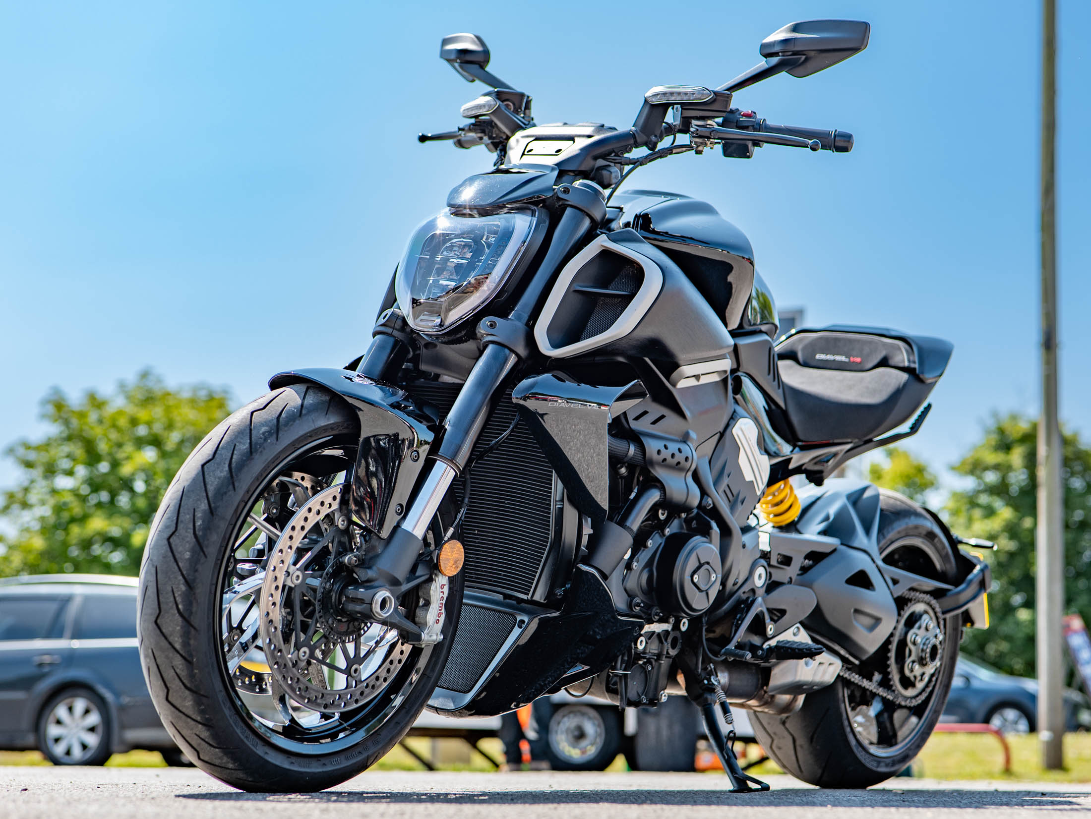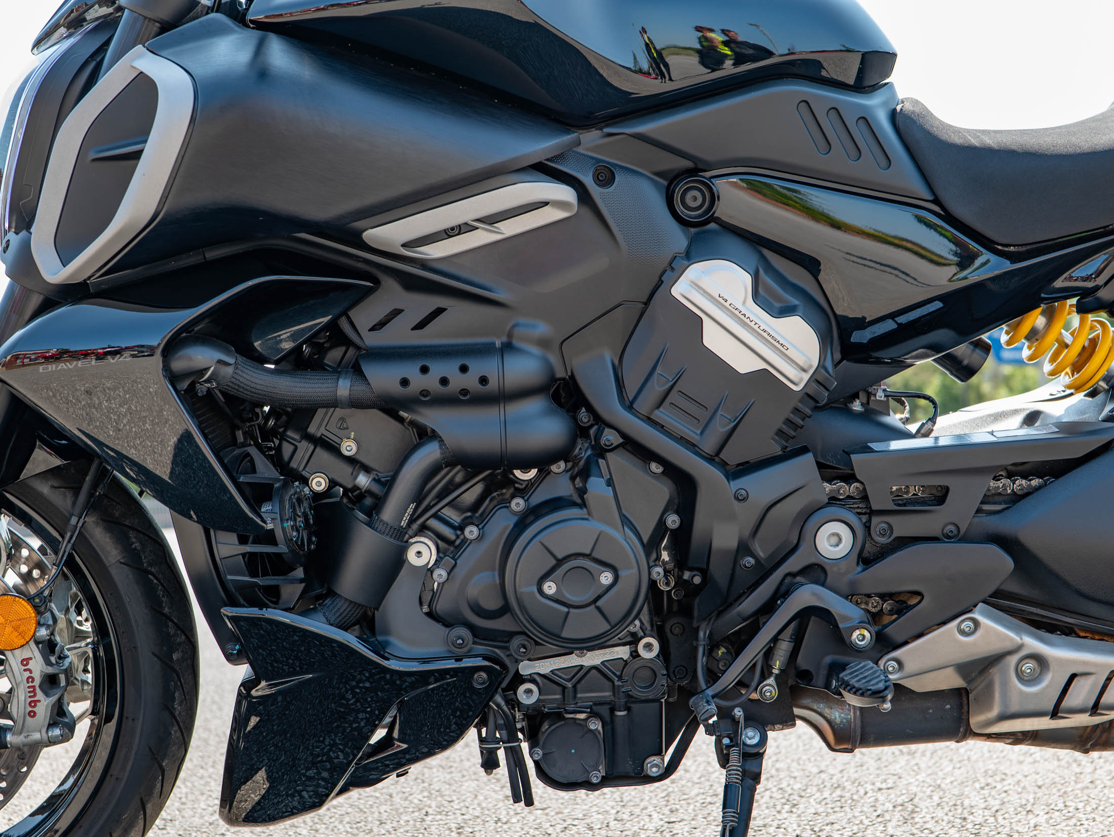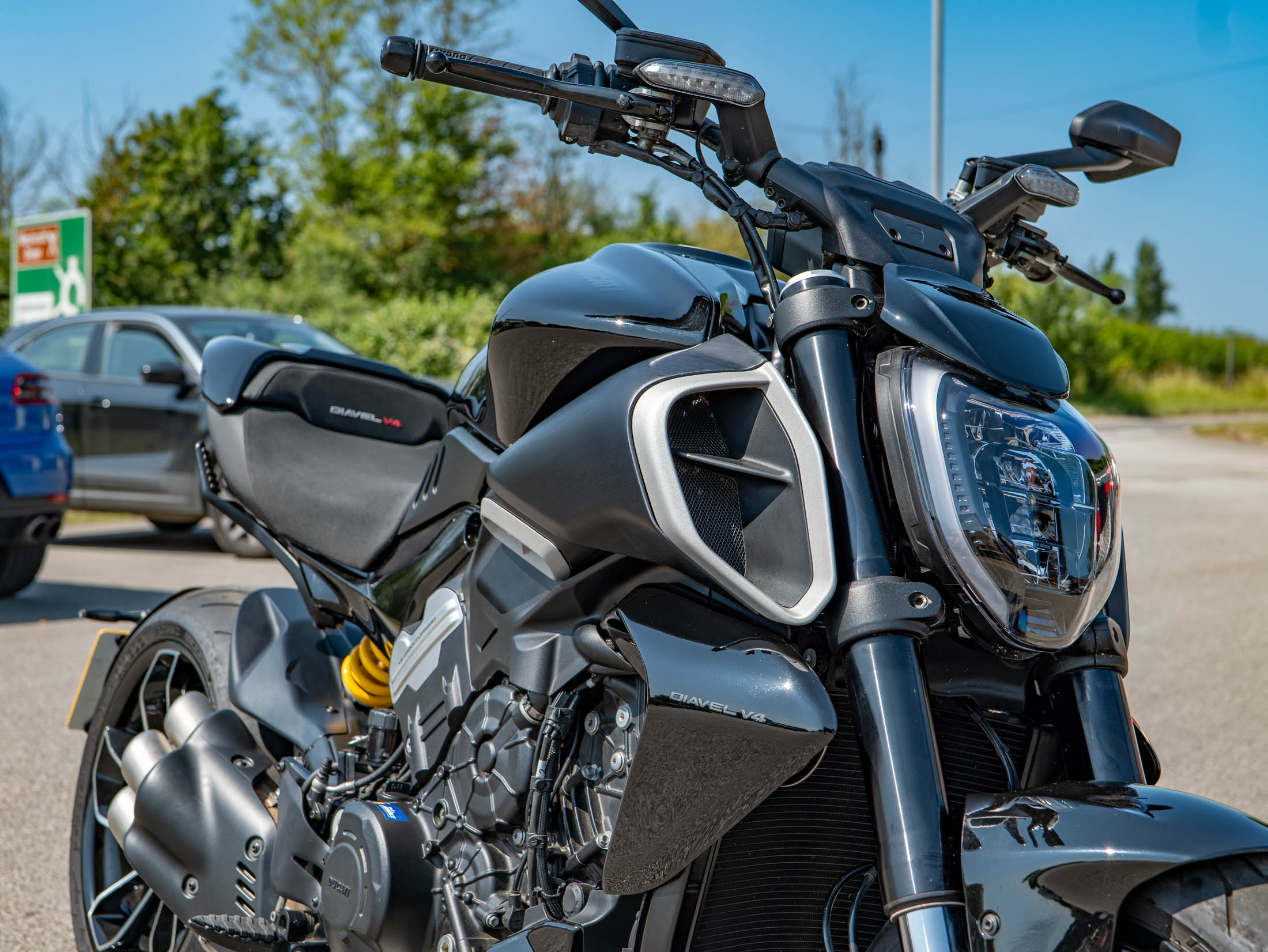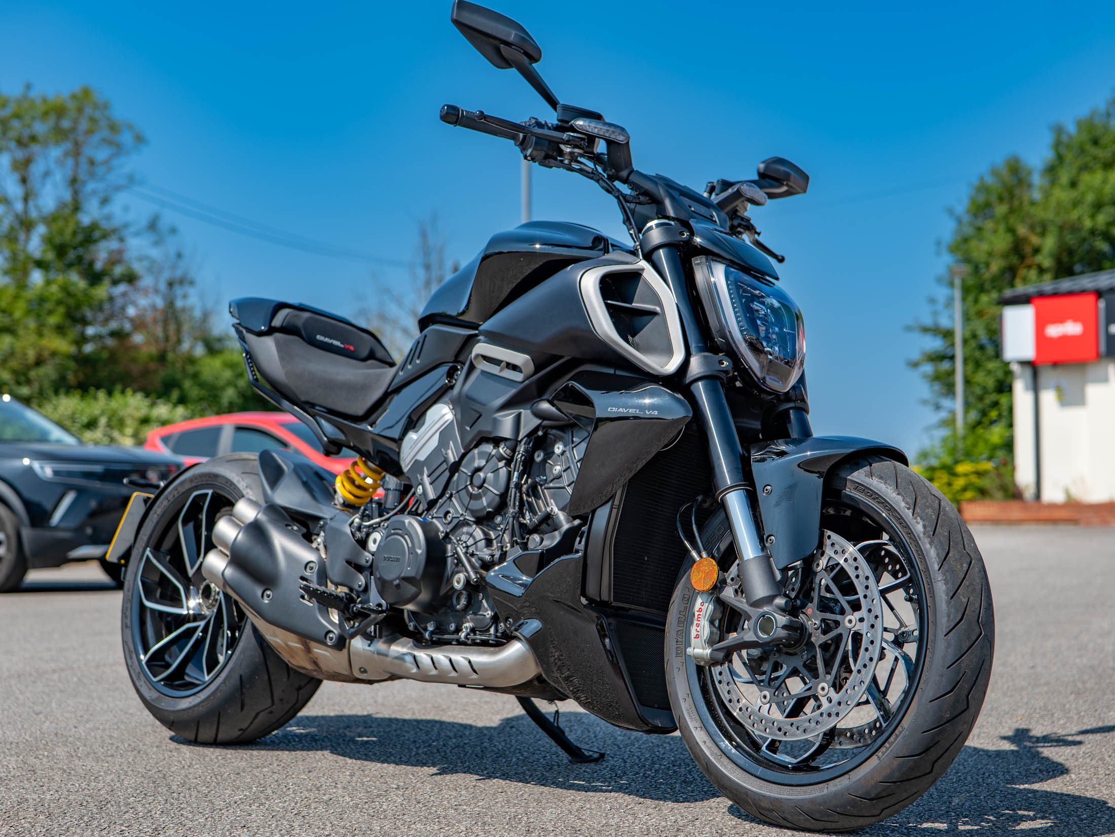 Command attention with this stunning used 2024 (24 Reg) Ducati Diavel V4, presented in a menacing Black finish. Having covered 8,600 miles, this remarkable power cruiser offers an intoxicating blend of muscular design, cutting-edge technology, and exhilarating performance.
