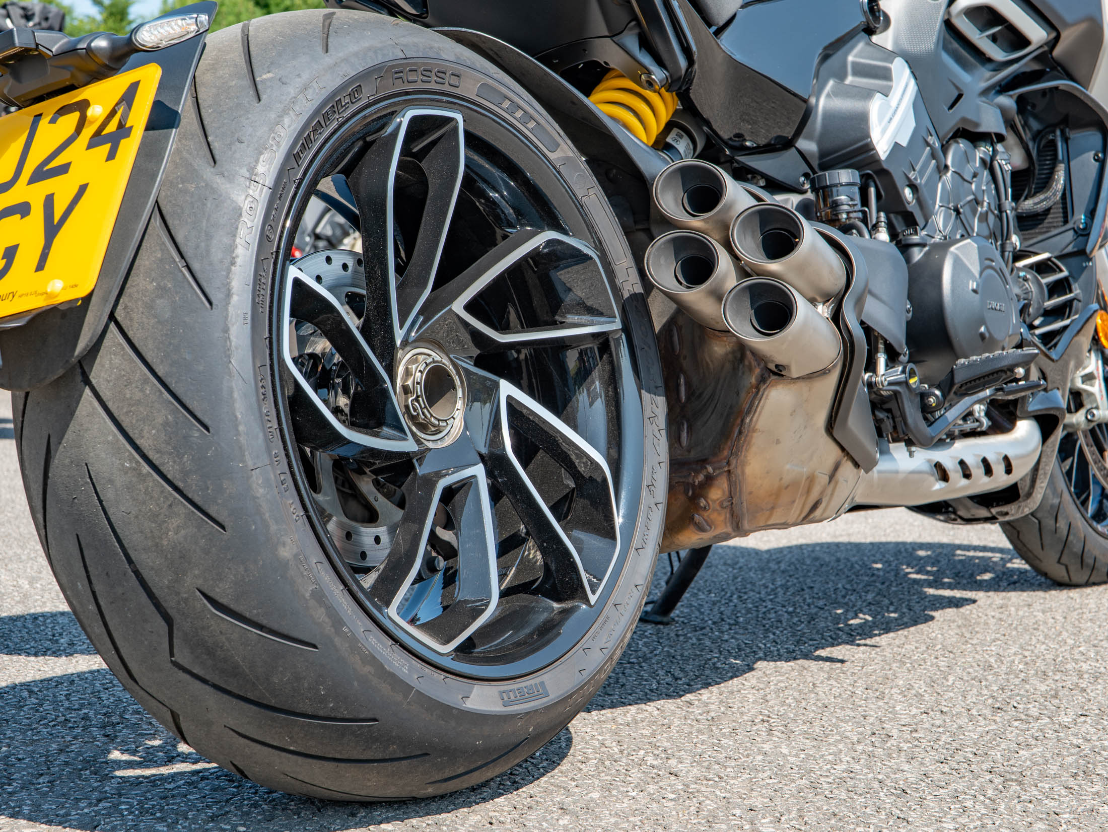 The Diavel V4 is brimming with an advanced suite of electronics, ensuring both exhilarating performance and enhanced safety. It features Cornering ABS, multi-level Ducati Traction Control (DTC), and Ducati Wheelie Control (DWC), all lean-sensitive and managed by a sophisticated 6-axis Inertial Measurement Unit (IMU). Riders can fine-tune their experience using four distinct Riding Modes (Sport, Touring, Urban, Wet), each with tailored Power Modes. For thrilling getaways, Ducati Power Launch (DPL) ensures explosive acceleration.