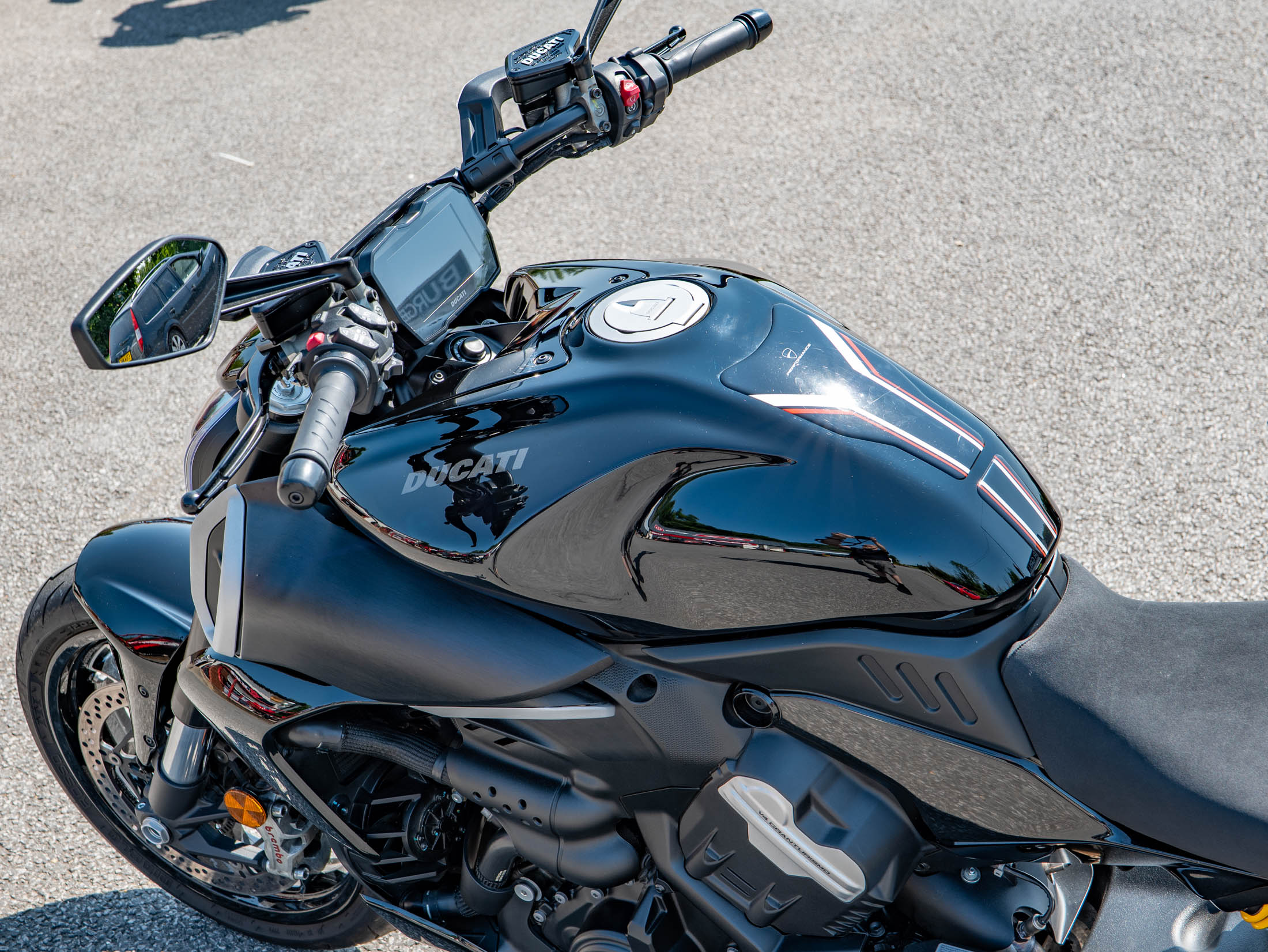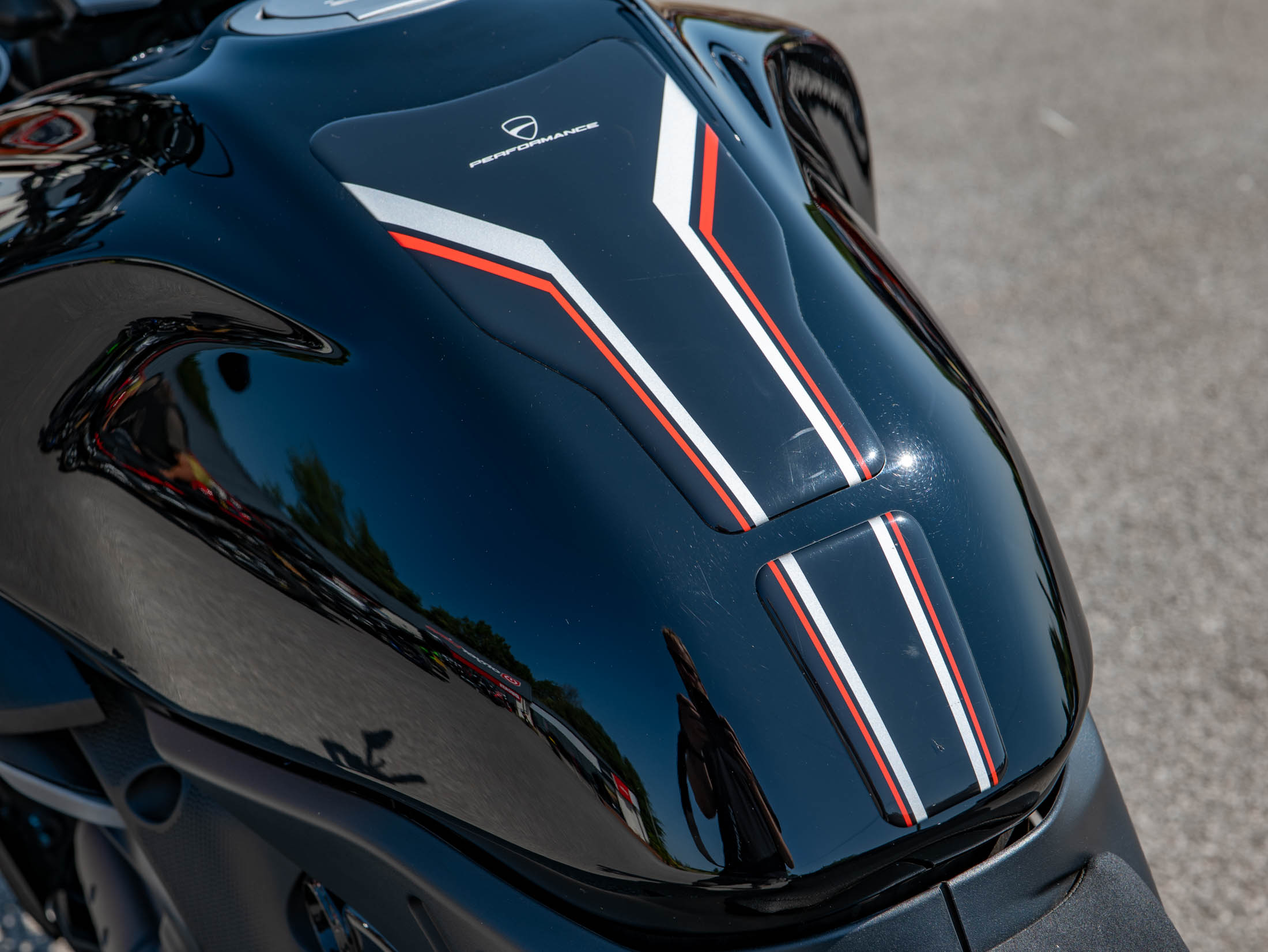 Further enhancing convenience and luxury, this Diavel V4 boasts Keyless Ride (Hands-Free ignition), Cruise Control for effortless long-distance journeys, and a crystal-clear 5-inch full-colour TFT display with Ducati Multimedia System (DMS) smartphone connectivity. The unmistakable full LED lighting system with its striking double-C DRL and dynamic indicators adds to its commanding presence. This particular example also benefits from a fitted tank pad, offering extra protection and grip.