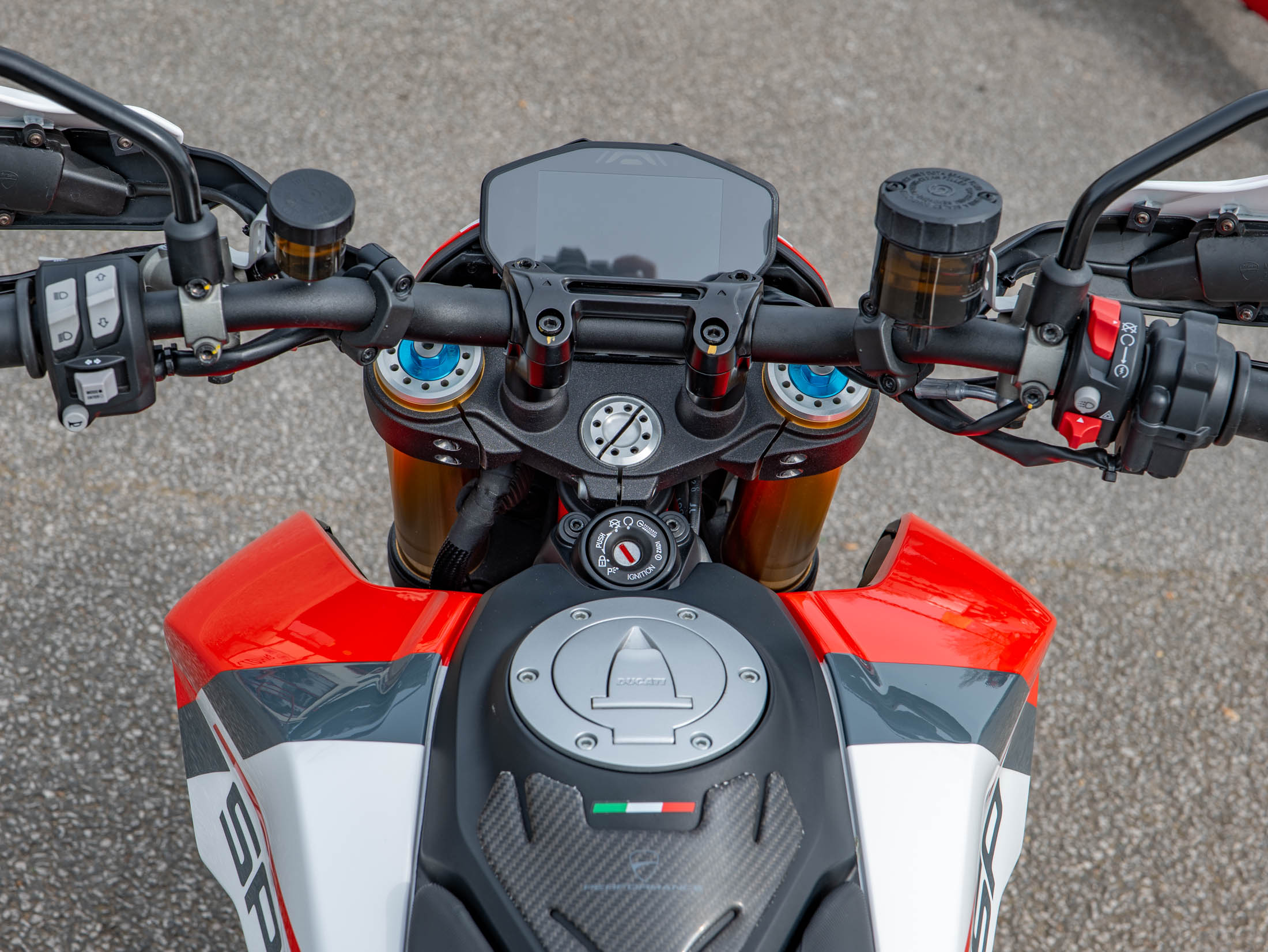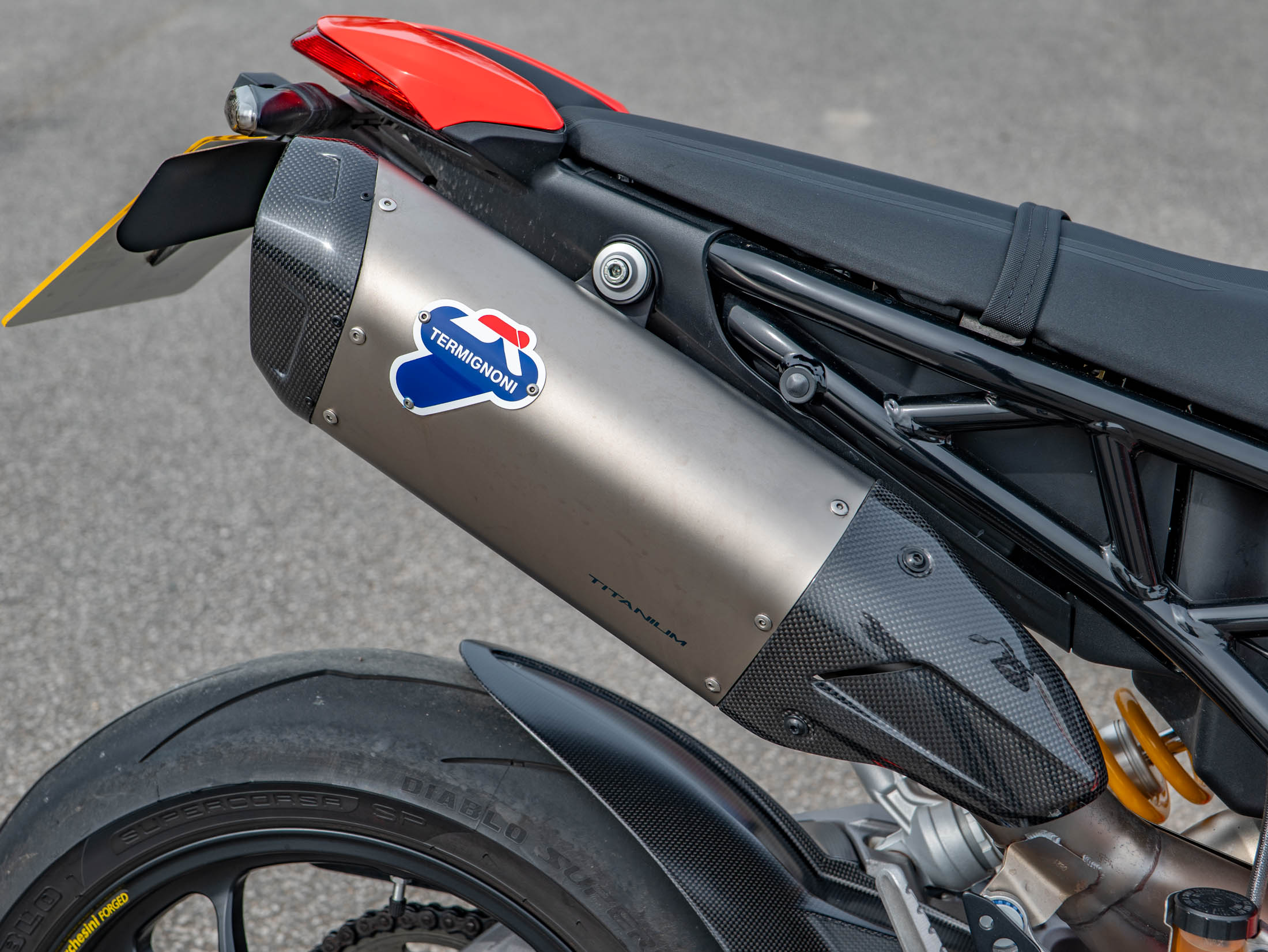 The heart of this beast is the 937cc L-twin engine, producing a thrilling 114 hp. This particular example has been significantly enhanced with a full Termignoni exhaust system and the corresponding engine map, which not only increases performance but provides the unmistakable, visceral Ducati soundtrack. To ensure the engine remains protected, it has been fitted with an oil cooler guard, crash bungs and front wheel spindle sliders. The 114 hp is managed by a top-tier electronics suite, featuring a bi-directional quickshifter, cornering ABS with "Slide by Brake" functionality, and Ducati Power Launch for perfect starts.