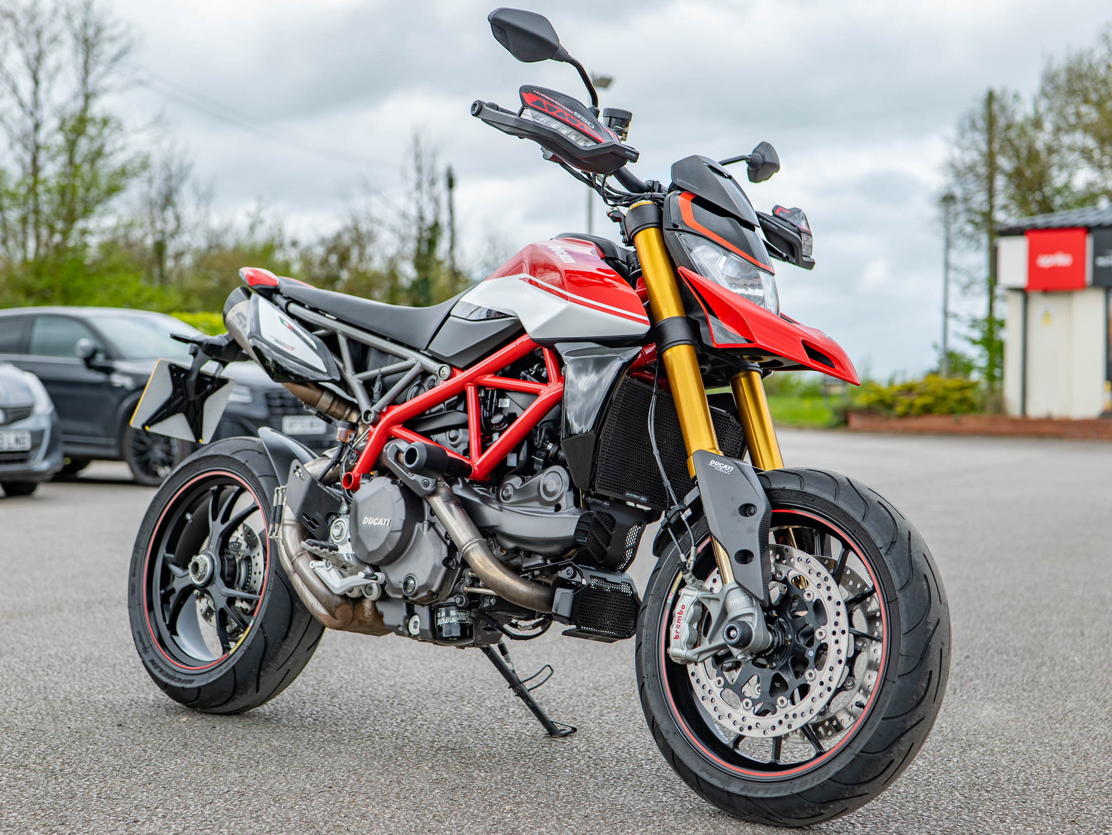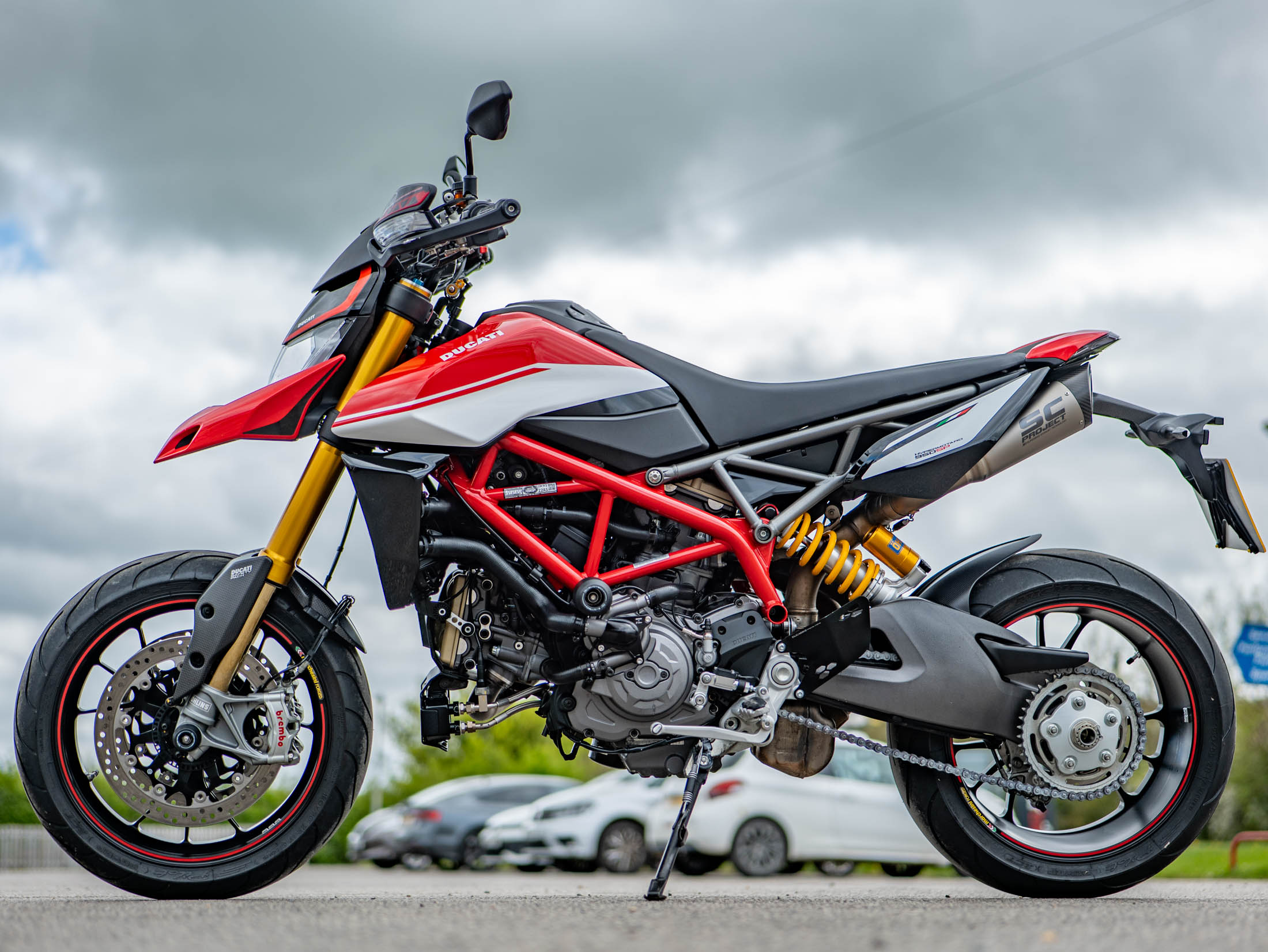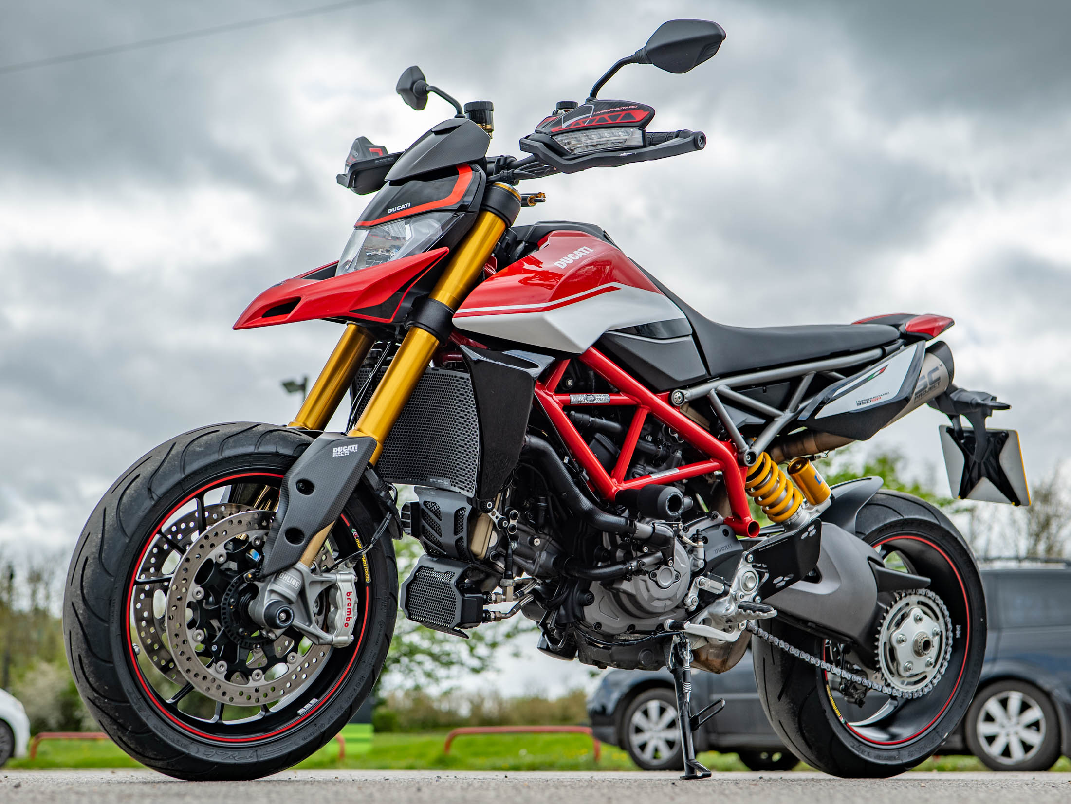Track-focused agility meets 114 hp of Testastretta power with premium Öhlins suspension and a carbon-fibre SC Project exhaust. This striking machine is finished in the iconic SP racing livery and is presented in very good condition with just 3,369 miles and a Full Service History. As the top-tier version of the Hypermotard family, the SP model offers a more aggressive stance and higher specification for those who demand the ultimate hooligan bike experience.