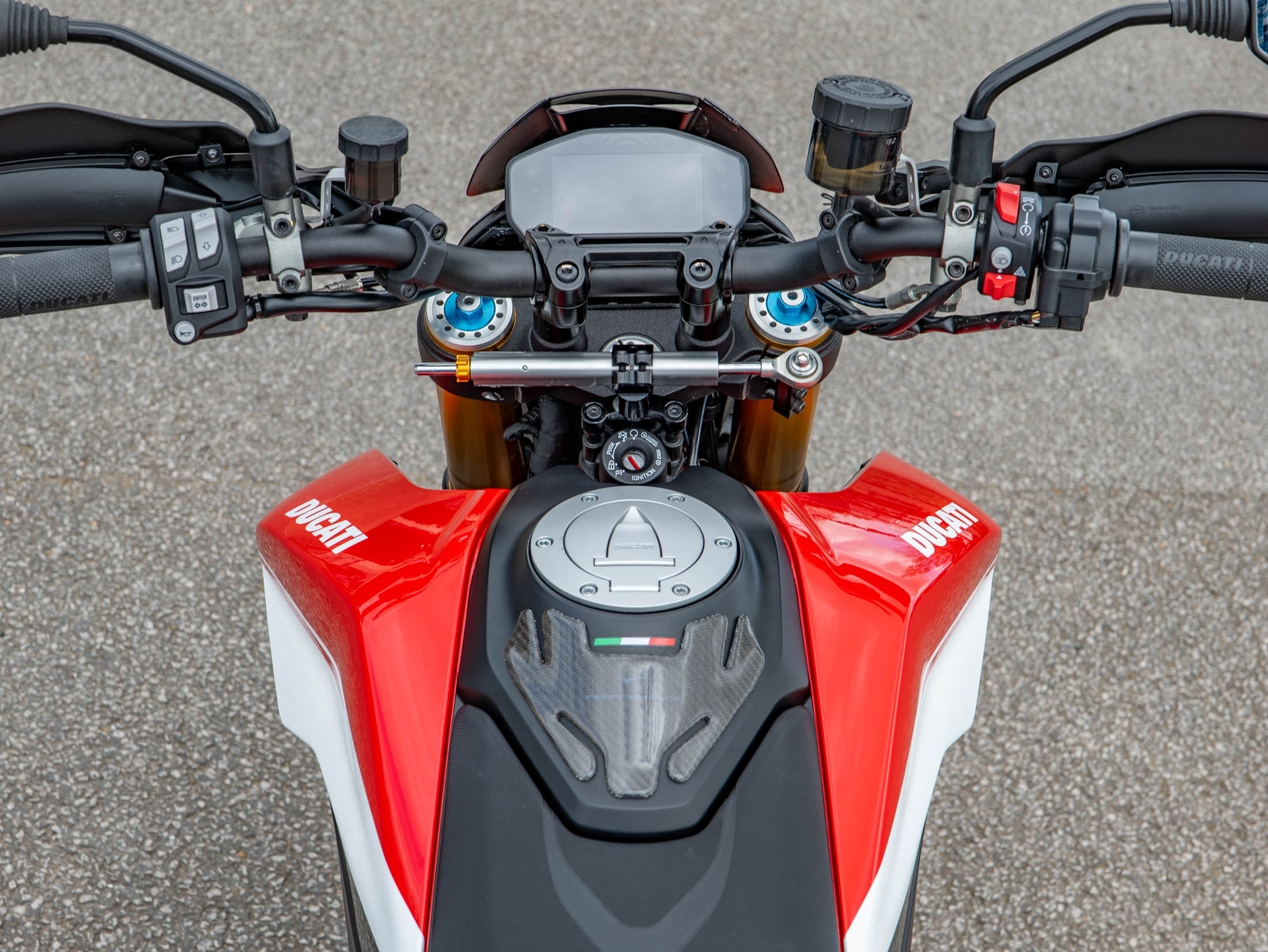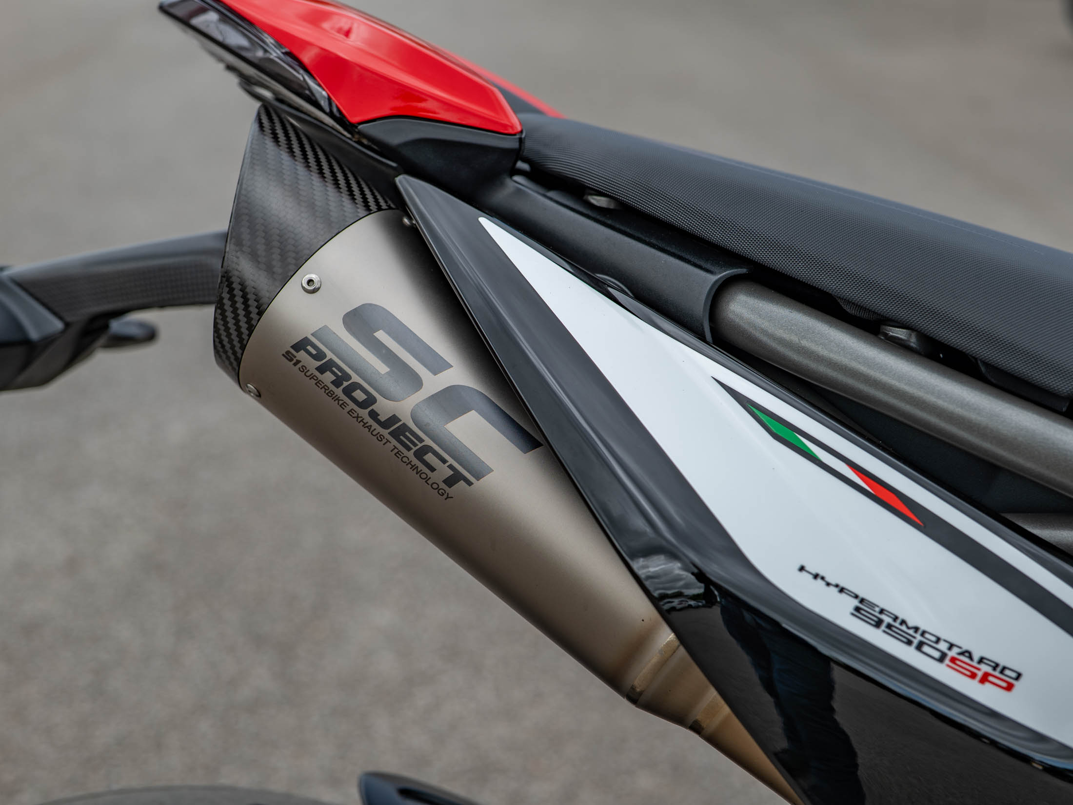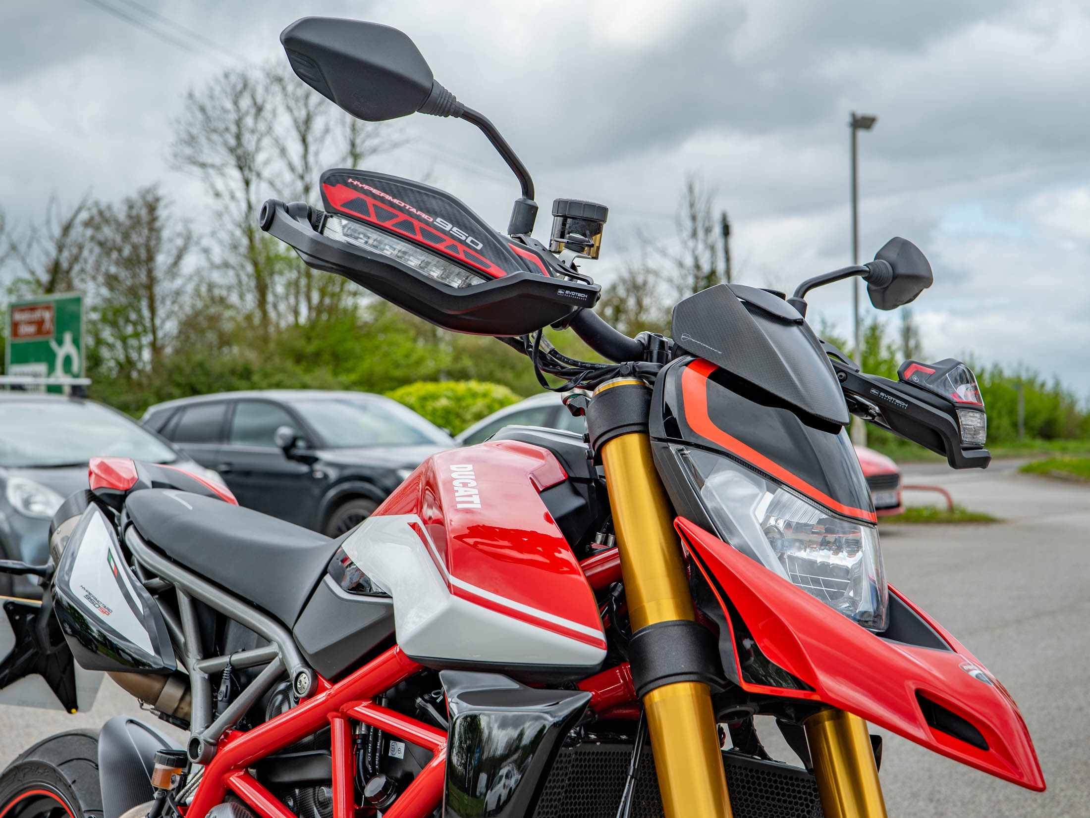 Track-focused agility meets 114 hp of Testastretta power with premium Öhlins suspension and a carbon-fibre SC Project exhaust. This striking machine is finished in the iconic SP racing livery and is presented in very good condition with just 3,369 miles and a Full Service History. As the top-tier version of the Hypermotard family, the SP model offers a more aggressive stance and higher specification for those who demand the ultimate hooligan bike experience.