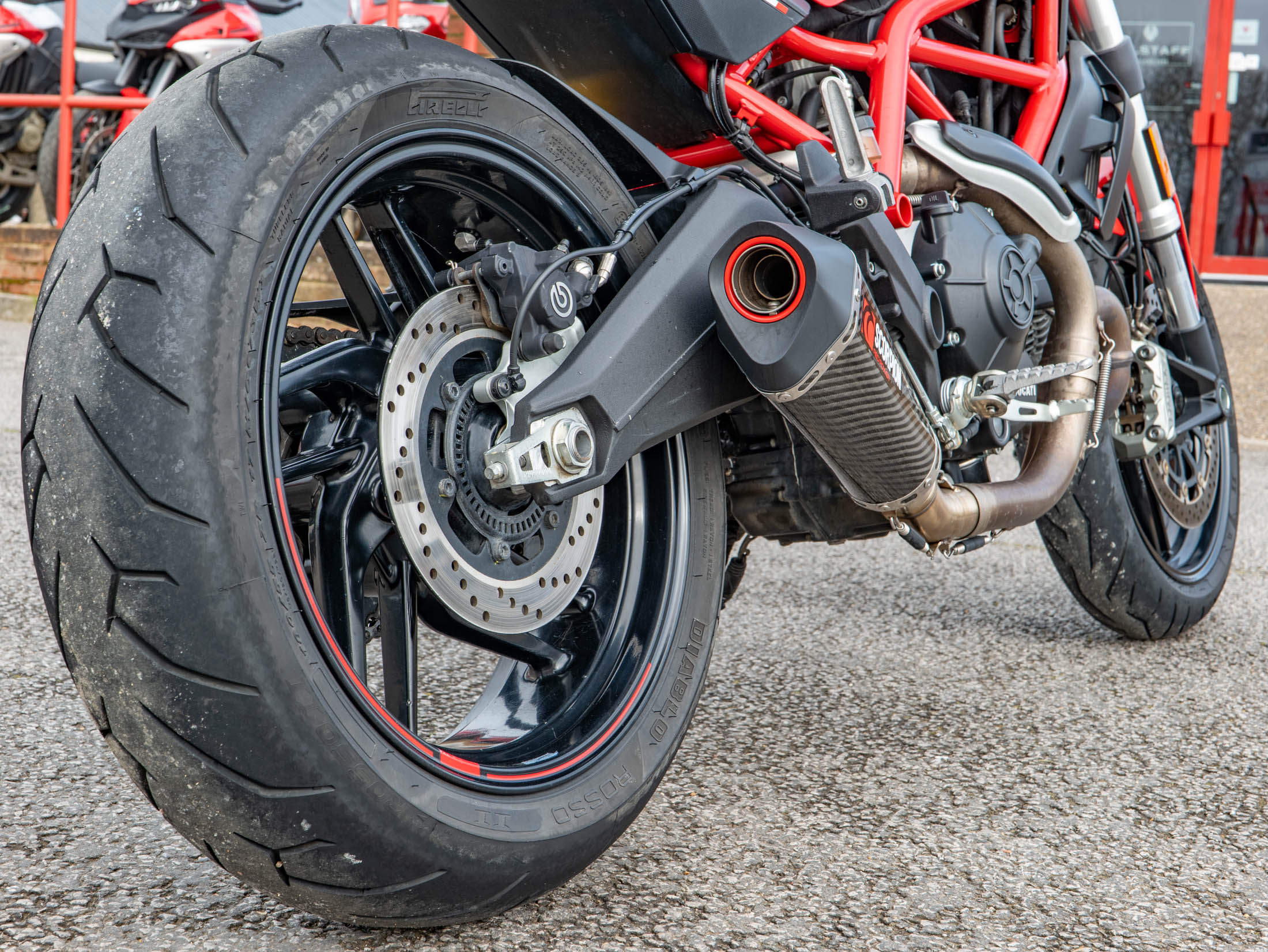 This 73 hp machine has been enhanced with a high-quality Scorpion performance exhaust, which significantly improves the L-twin soundtrack and adds to the bike's premium feel. It also features a tail tidy to clean up the rear end and a protective tank pad. With its manageable seat height and lightweight chassis, the 797 offers a pure, uncomplicated riding experience that focuses on the joy of the road.
