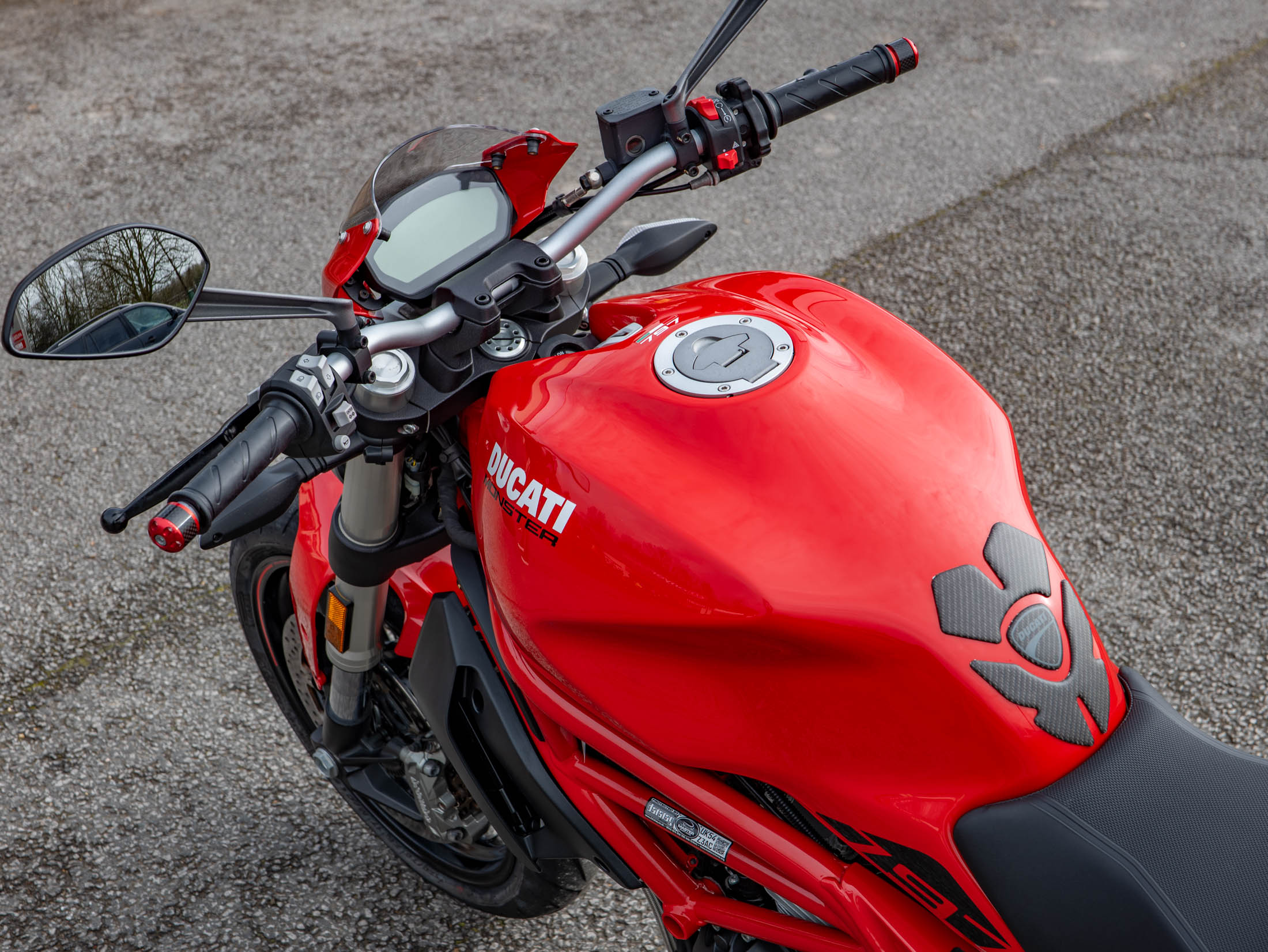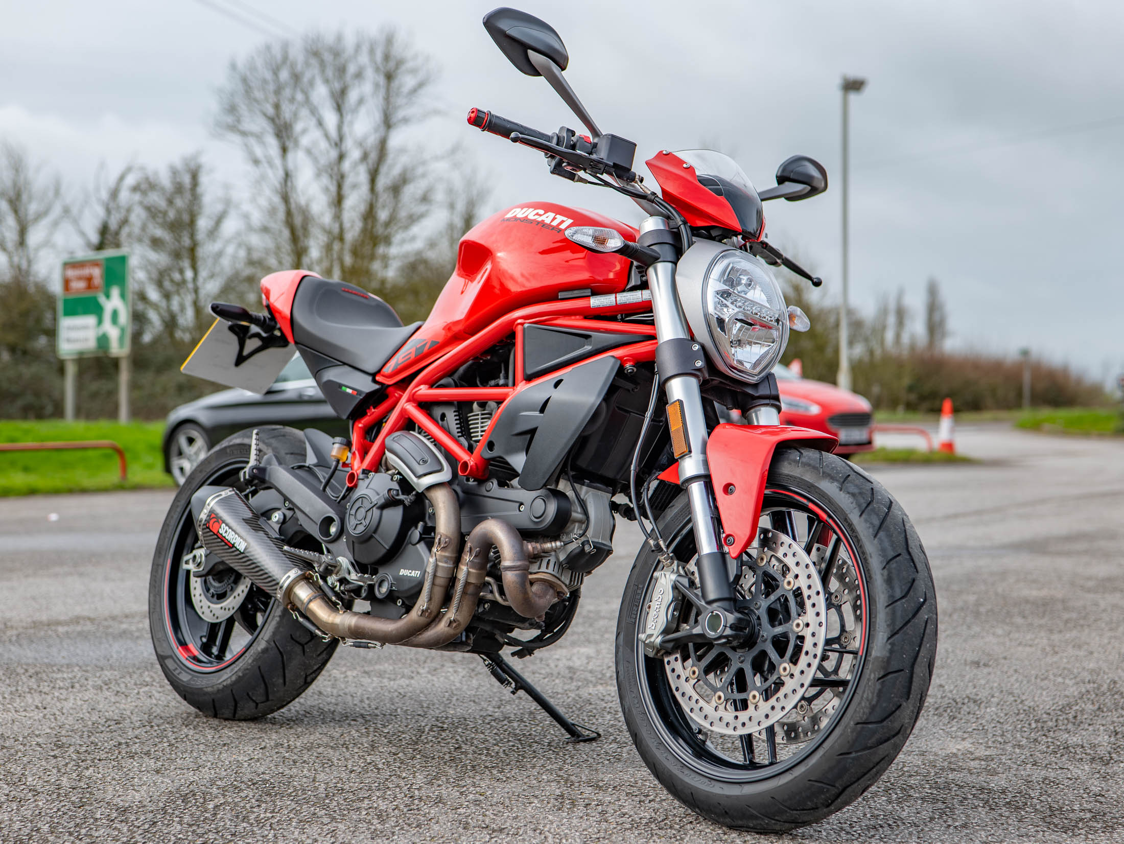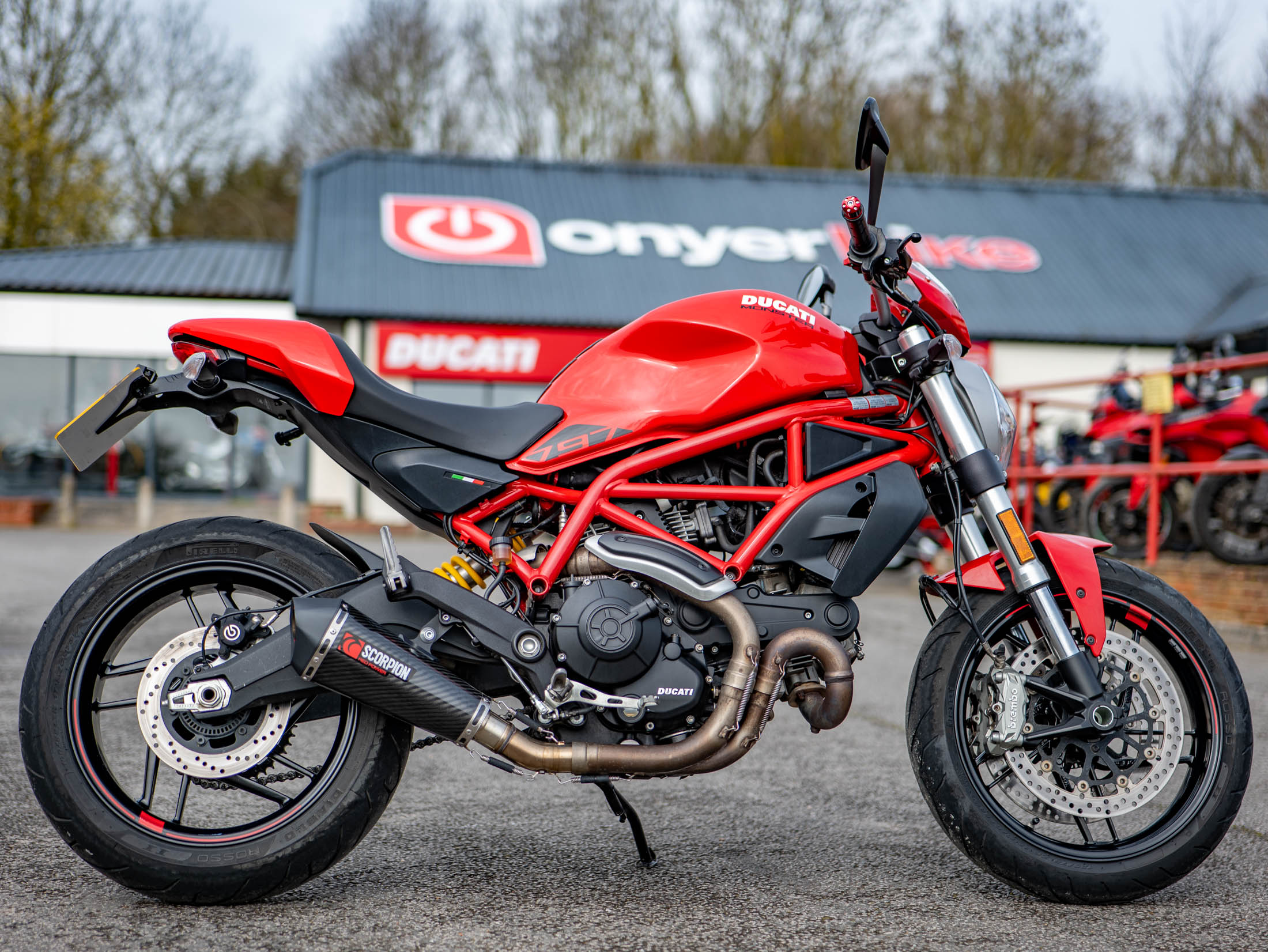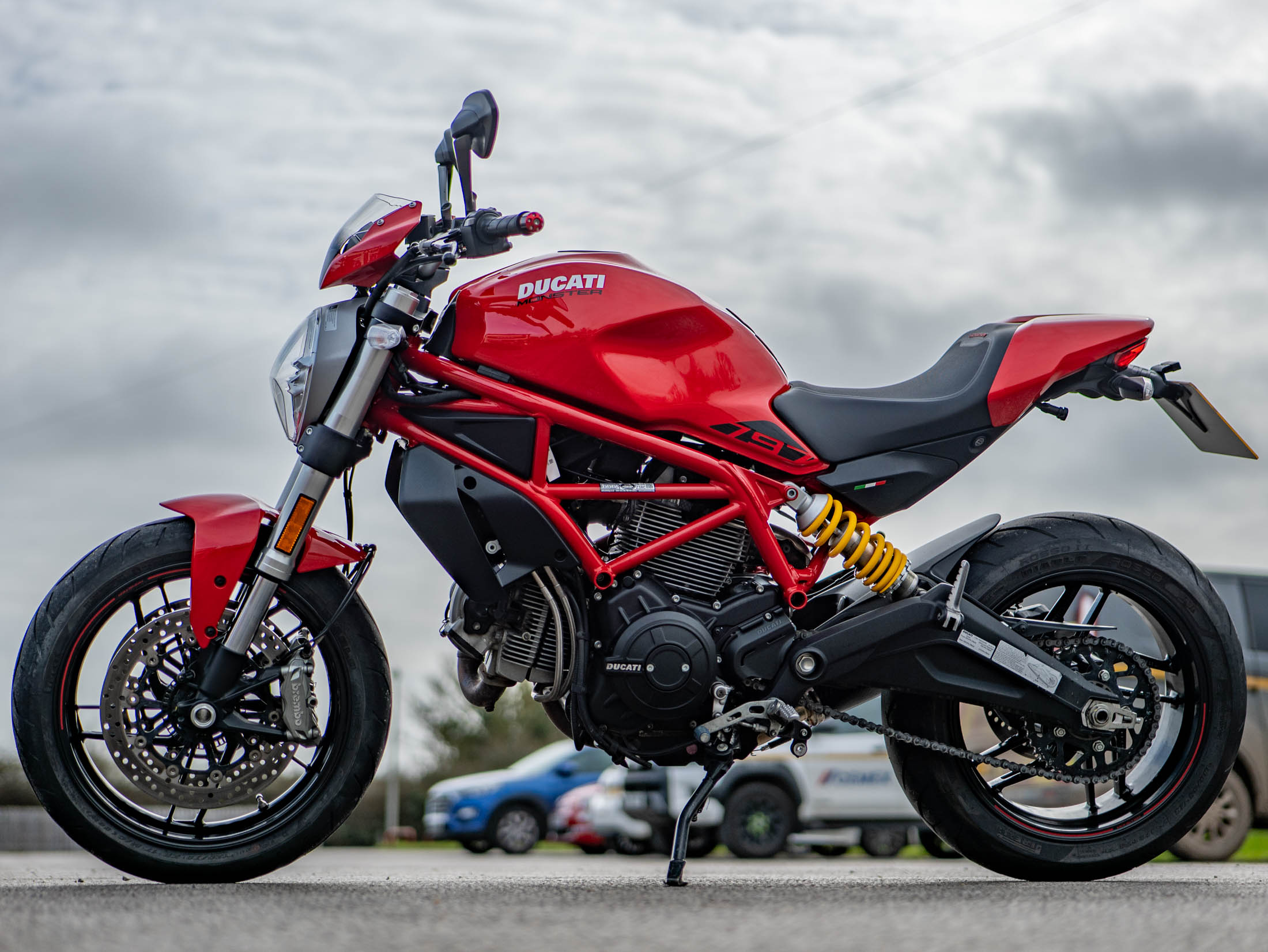 The classic air-cooled spirit of Ducati is perfectly captured in this 2019 Ducati Monster 797 Plus, featuring just 4,053 miles from new. Available now at On Yer Bike / Ducati Aylesbury, this 73 hp naked bike is finished in iconic Ducati Red and is presented in good condition. As the "Plus" model, it benefits from factory-fitted extras including a sleek headlight fairing and a color-matched passenger seat cowl, giving it a sharper and more aggressive silhouette.