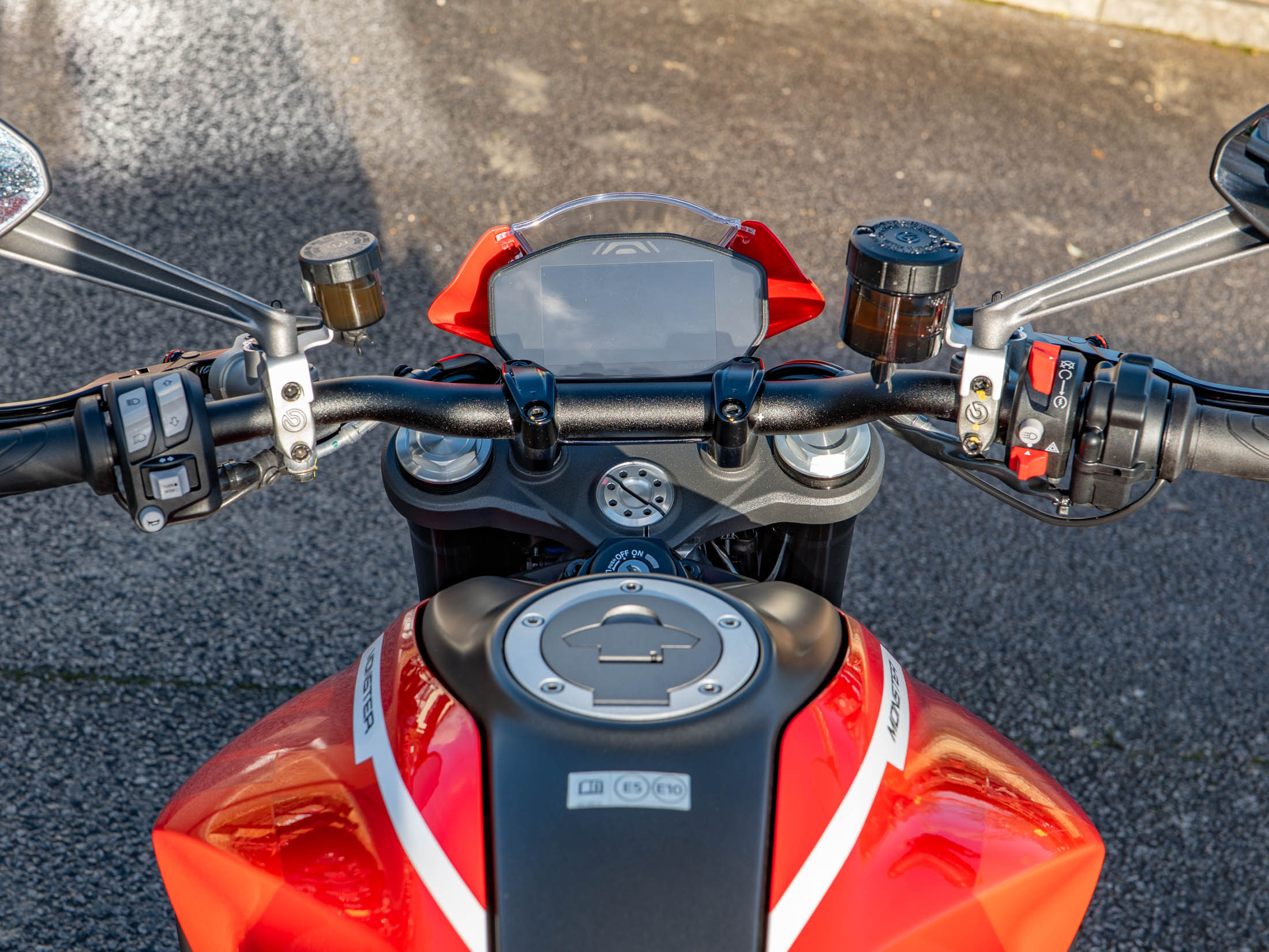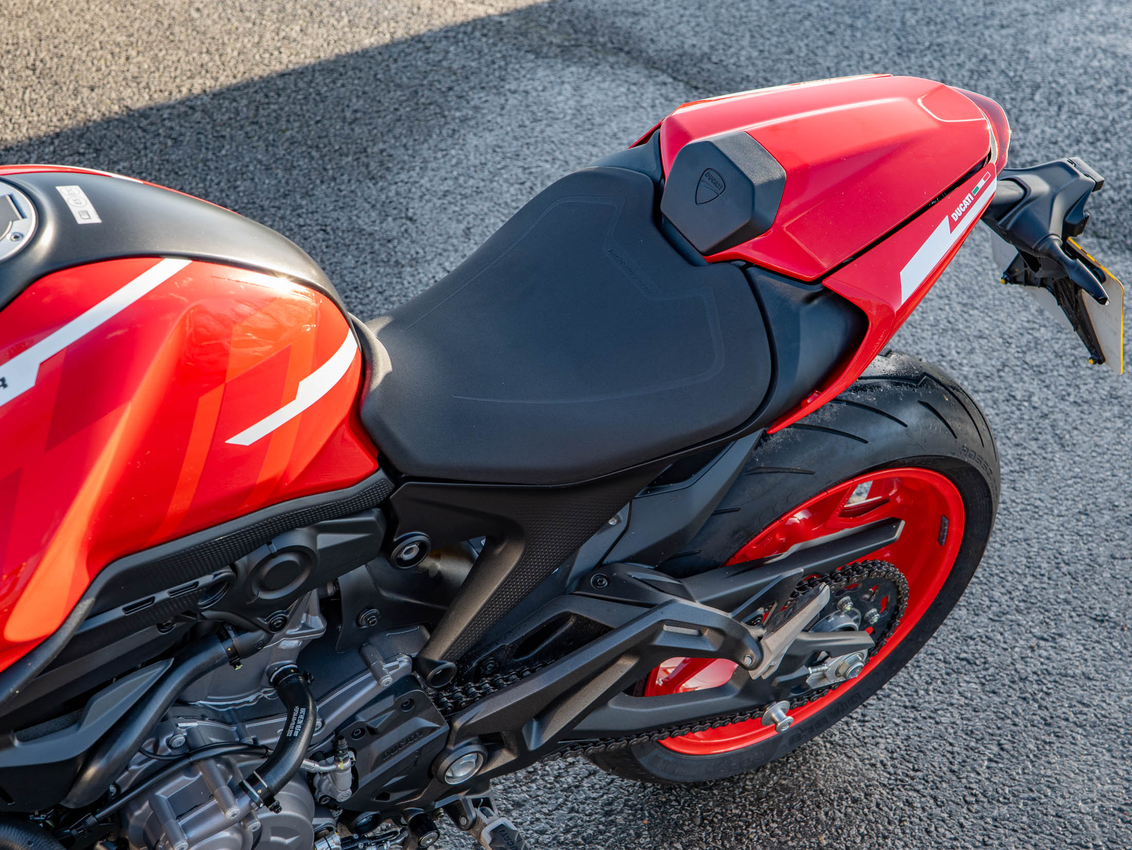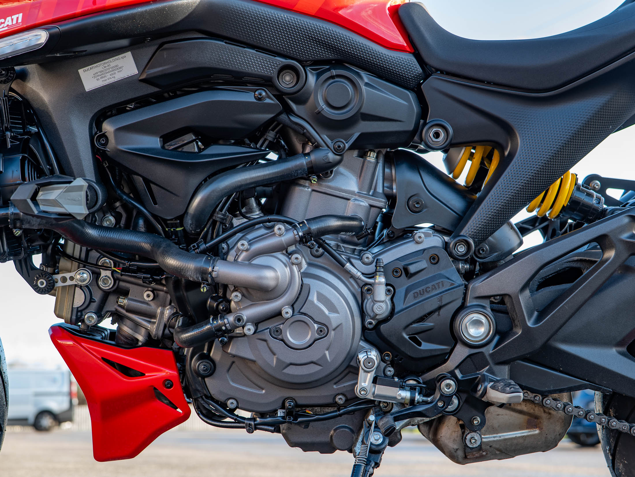 This machine is a technological leader in the naked bike class, featuring a comprehensive electronic suite governed by a Bosch 6-axis Inertial Measurement Unit (IMU). This system controls Cornering ABS, multi-level Ducati Traction Control (DTC), and Ducati Wheelie Control (DWC). Riders can easily tailor the bike's character using the three selectable Riding Modes (Sport, Touring, and Urban), displayed clearly on the 4.3" full-colour TFT dash. As a 'Plus' model, it includes the sporty fly screen and passenger seat cover as standard. Further enhancements include Heated Grips for all-season comfort and Paddock Stand Bobbins for easy maintenance.