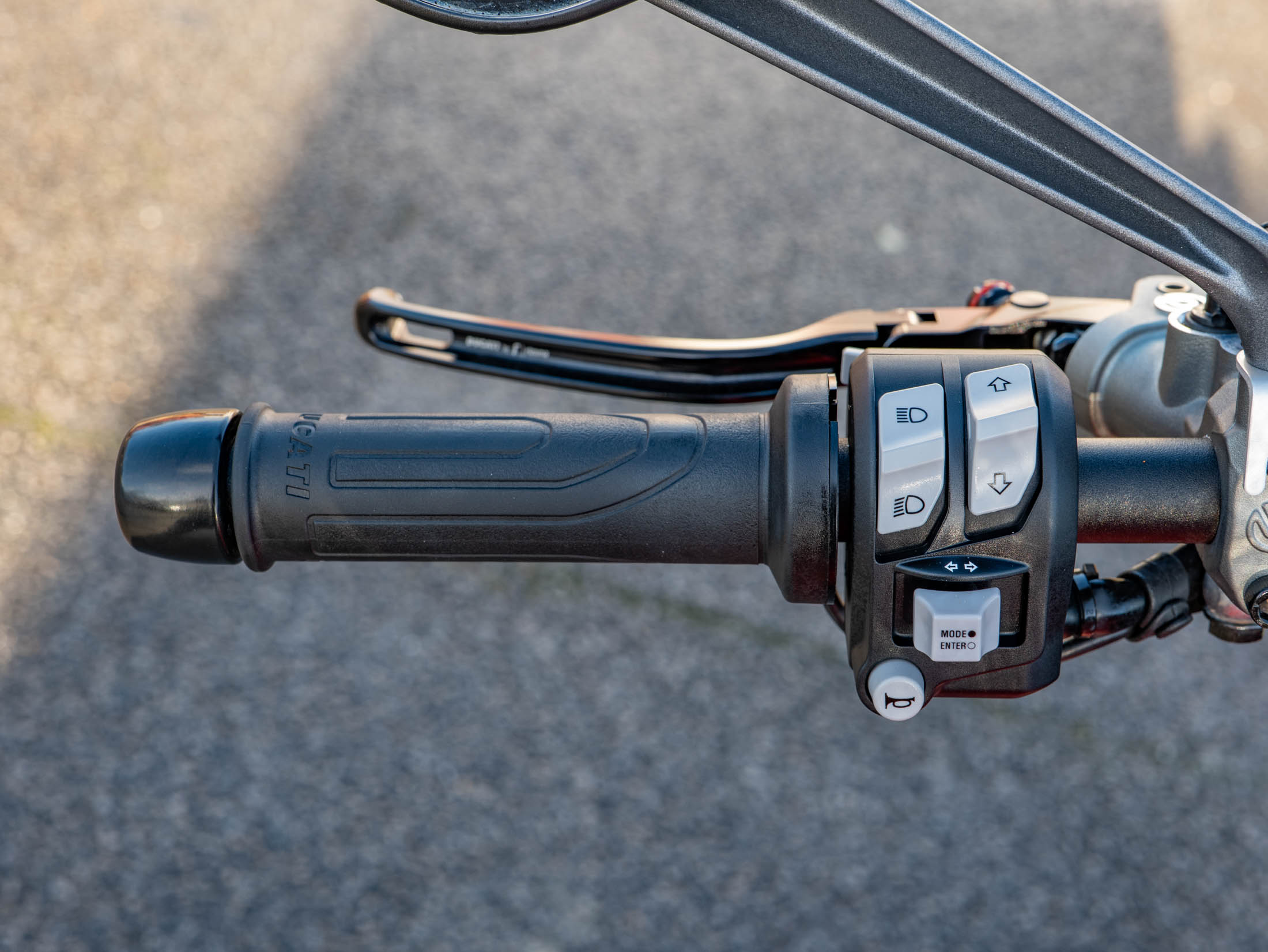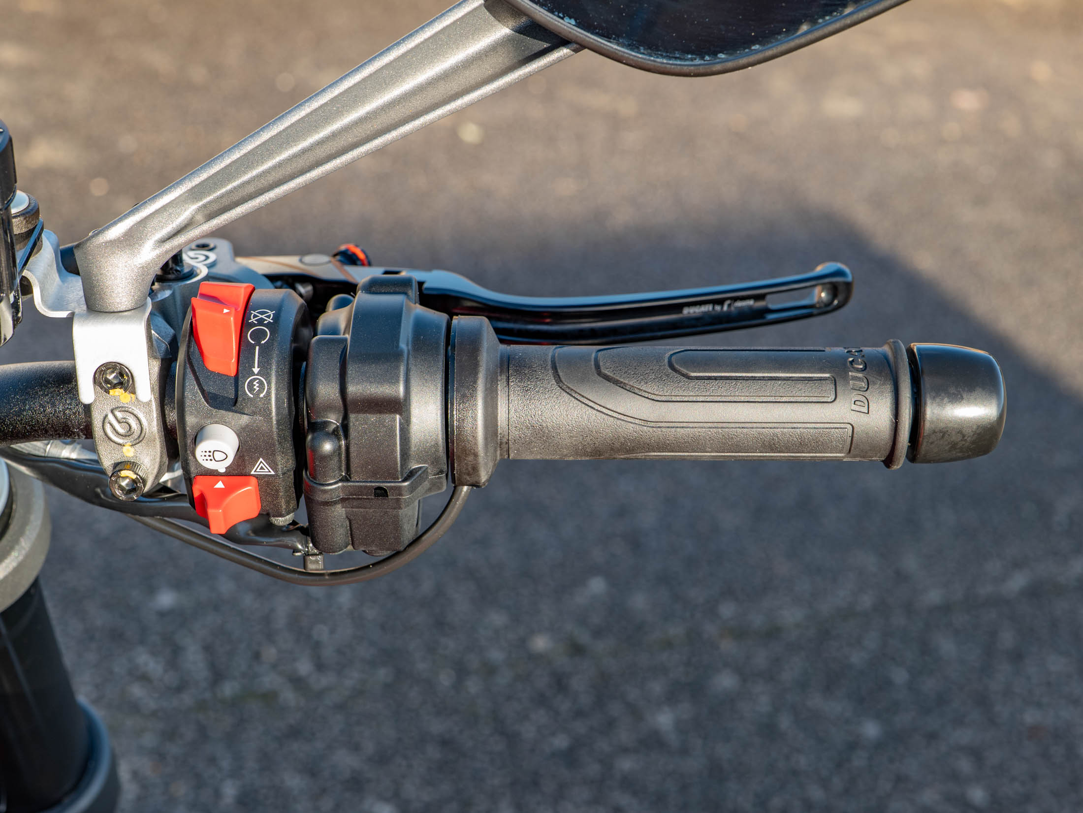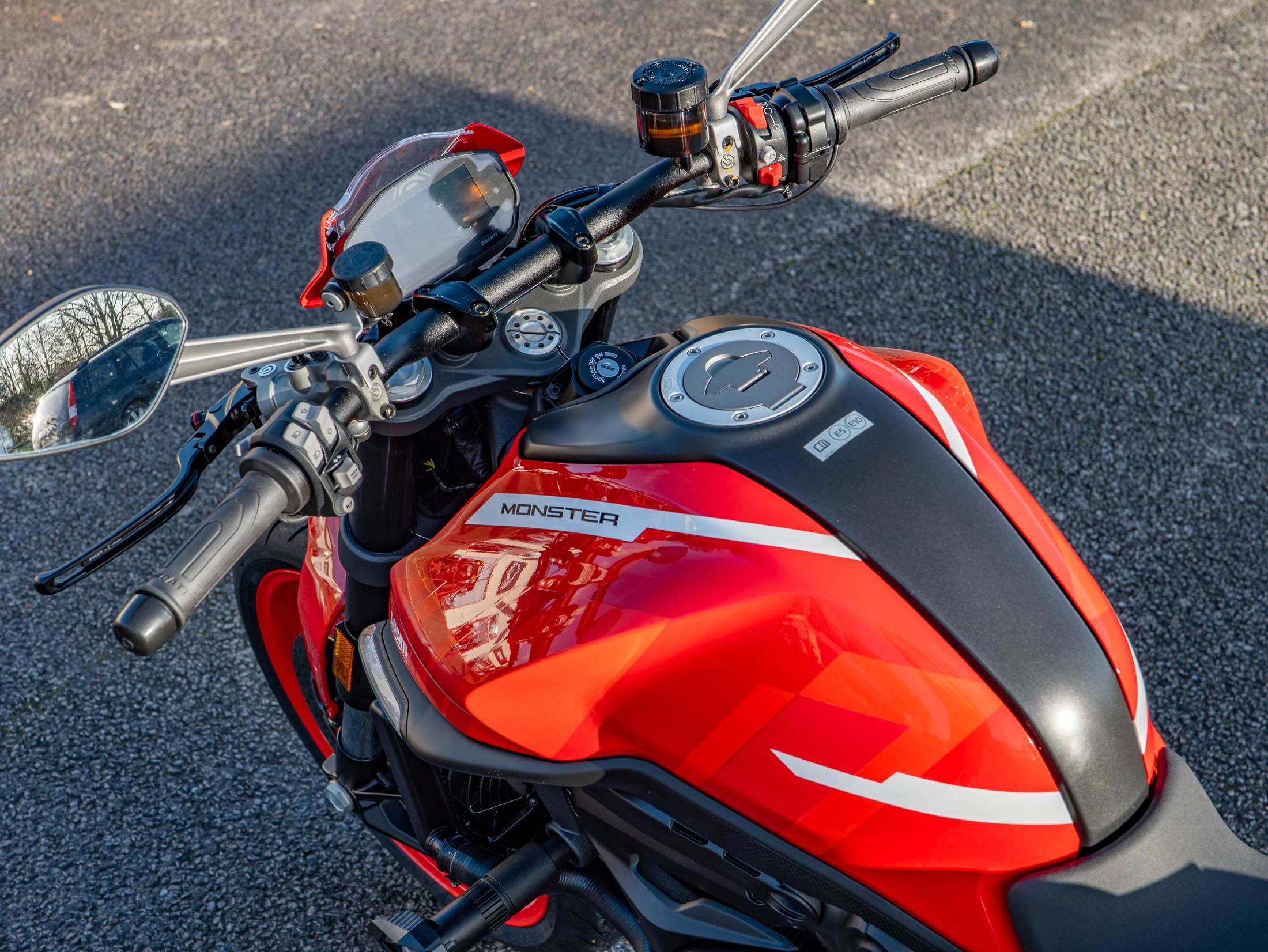 This machine is a technological leader in the naked bike class, featuring a comprehensive electronic suite governed by a Bosch 6-axis Inertial Measurement Unit (IMU). This system controls Cornering ABS, multi-level Ducati Traction Control (DTC), and Ducati Wheelie Control (DWC). Riders can easily tailor the bike's character using the three selectable Riding Modes (Sport, Touring, and Urban), displayed clearly on the 4.3" full-colour TFT dash. As a 'Plus' model, it includes the sporty fly screen and passenger seat cover as standard. Further enhancements include Heated Grips for all-season comfort and Paddock Stand Bobbins for easy maintenance.