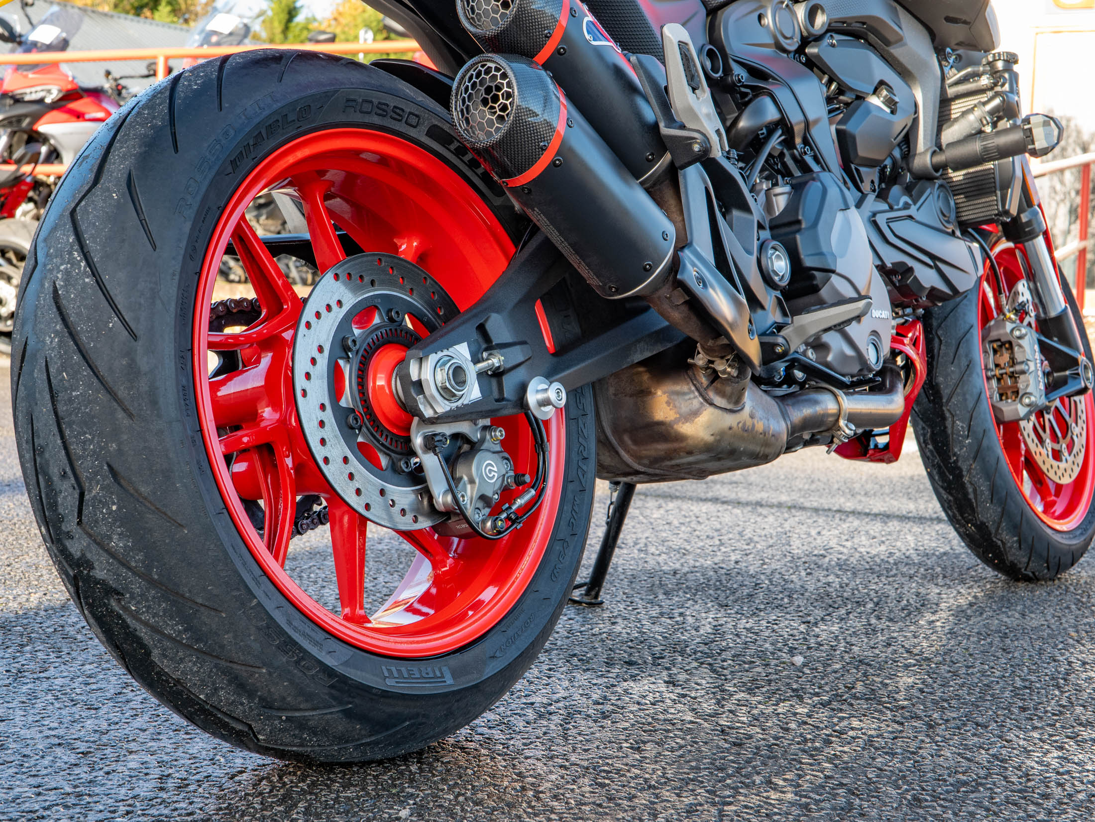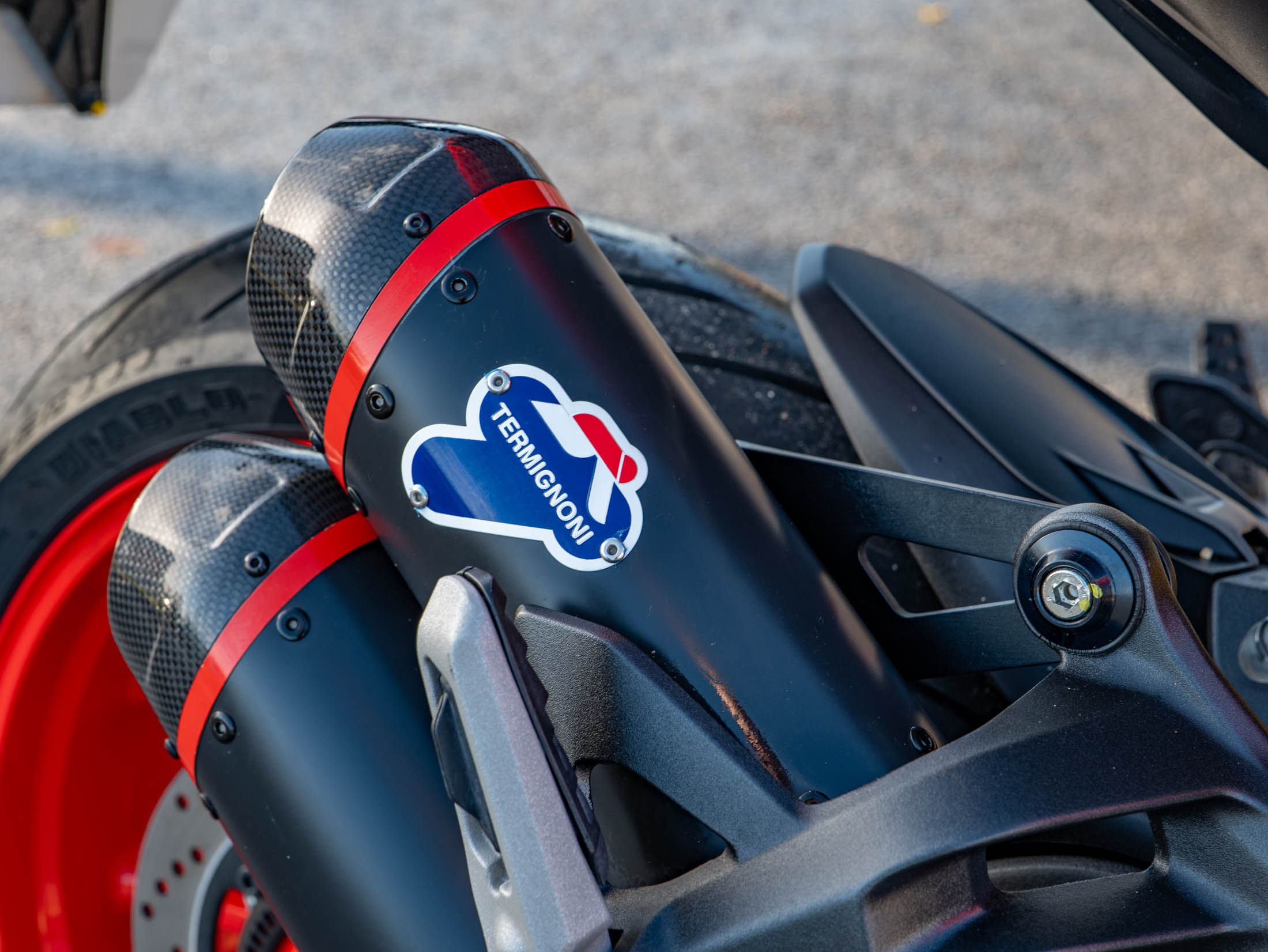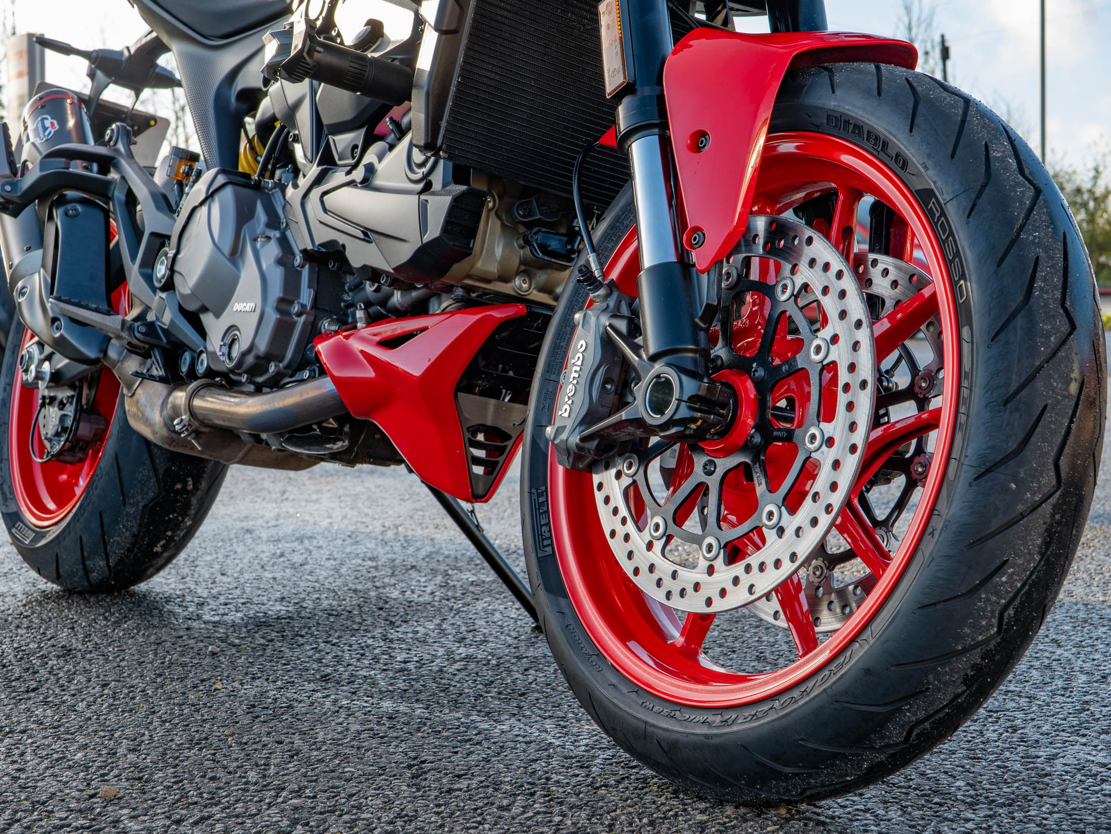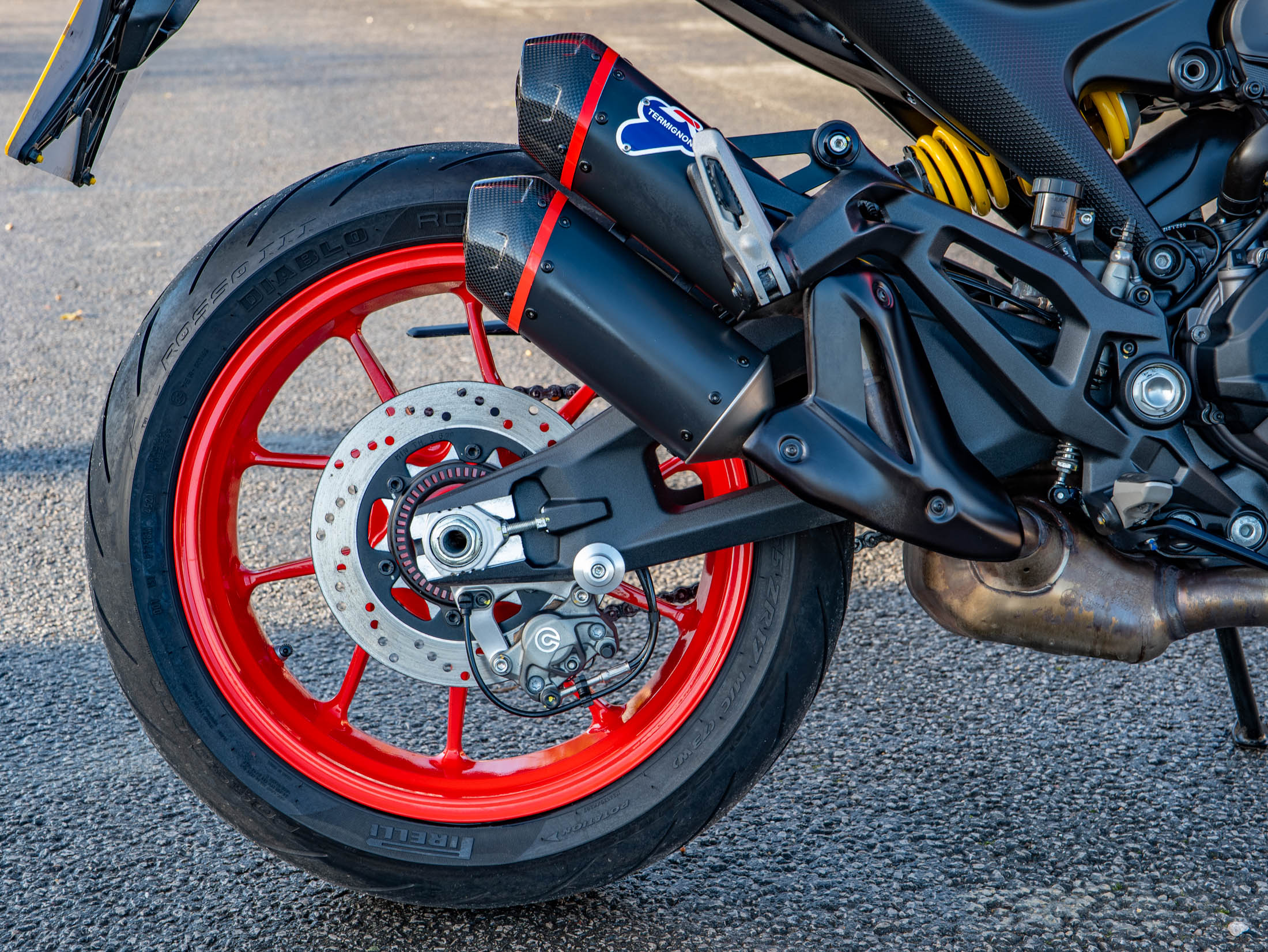 The heart of the Monster 937 Plus is the liquid-cooled 937cc Testastretta 11° L-Twin engine, which delivers a potent 111 hp and strong, predictable torque for thrilling street performance. The sound is dramatically enhanced by the factory-optional Termignoni slip-on exhaust, which shaves weight and delivers that signature Ducati roar. Power is managed via a super-slick six-speed manual transmission, complemented by the factory-fitted Dual-Direction Quickshifter (DQS) for lightning-fast, clutchless gear changes.