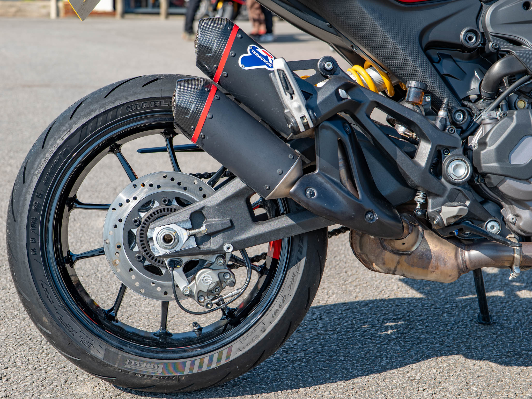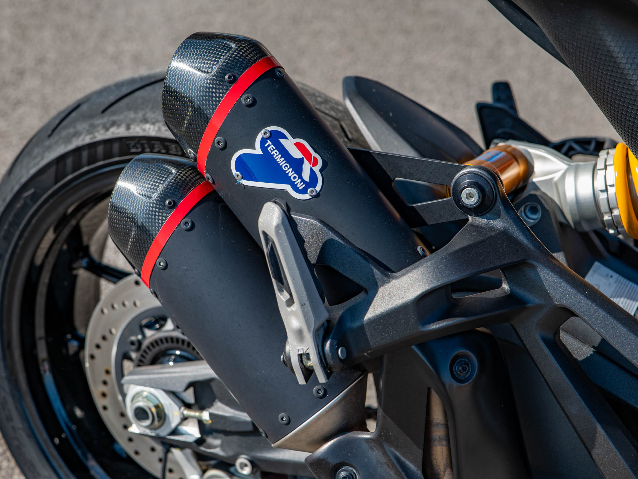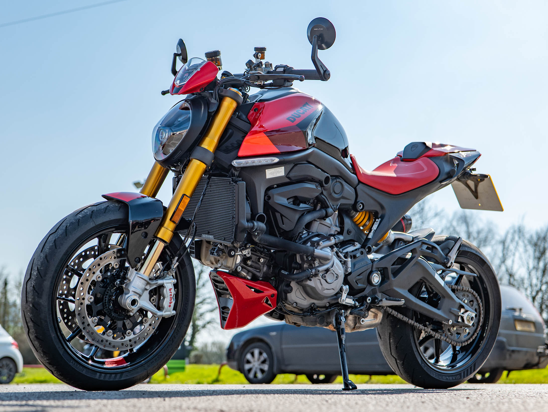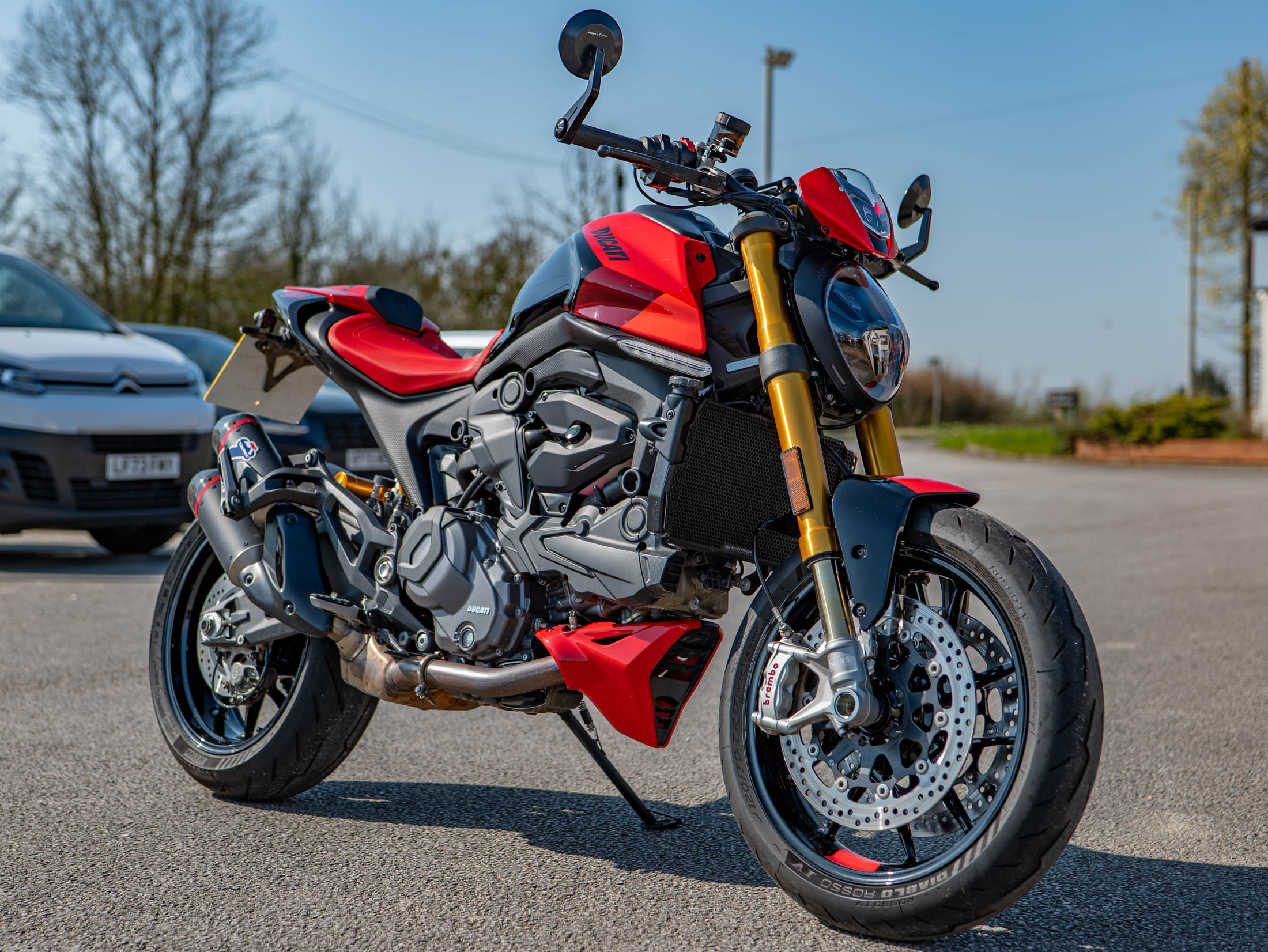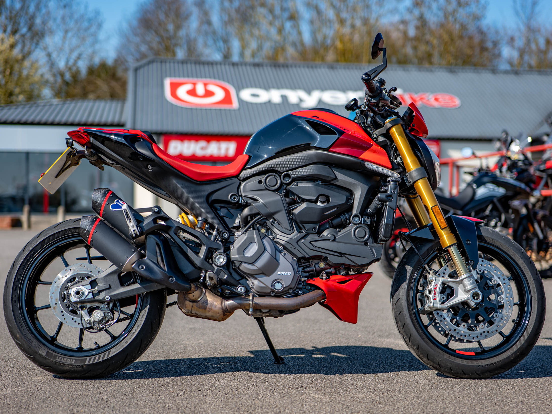 The heart of this Italian naked is the 937cc Testastretta 11-degree V-twin engine, producing a punchy and soulful 111 hp. Riding the Monster SP is a thrilling experience; it feels incredibly nimble and precise, thanks to a weight reduction that brings its dry weight down to just 166kg. The SP treatment includes fully adjustable Öhlins NIX30 front forks and a matching Öhlins rear shock, providing a plush yet supportive ride that excels on twisty B-roads. With 111 hp on tap and a standard-fit Termignoni silencer, the engine delivers a rich, desmodromic soundtrack that is unmistakably Ducati.
