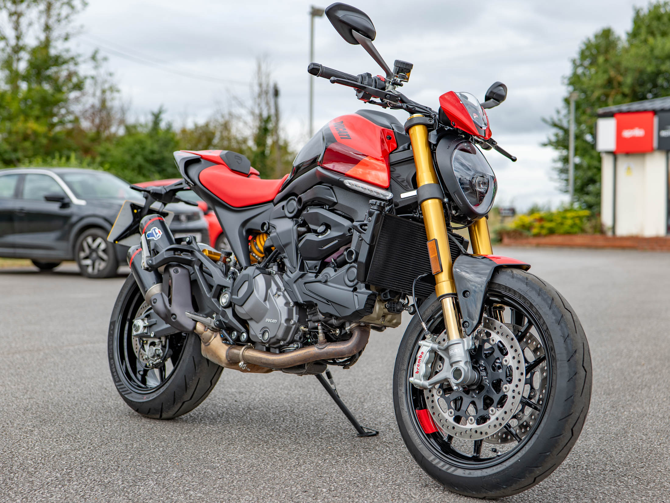 This ex-demo 2024 Ducati Monster SP in Dark Stealth is an unmissable chance to acquire a fully-loaded, nearly new naked sportbike, ready to dominate any road with its race-derived components and cutting-edge technology. Its exceptional condition and high specification make it a truly desirable machine. Viewings are highly recommended at On Yer Bike in Aylesbury.