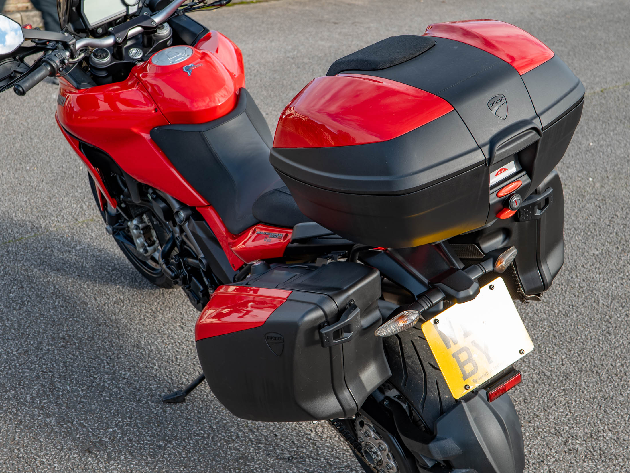 A massive upgrade on this specific model is the stunning Full Termignoni System (Performance Exhaust), which dramatically enhances the exhaust note and power delivery. This machine is fully equipped for touring, featuring factory Panniers and a matching Top Box, offering extensive storage. It also includes essential comfort and security features such as Heated Grips, Hand guards, Keyless Ride, a Centre Stand, and a DataTag security marking. The inclusion of the D-Air system makes this a rare and highly desirable example, offering compatibility with Dainese D-Air jackets for enhanced rider safety.