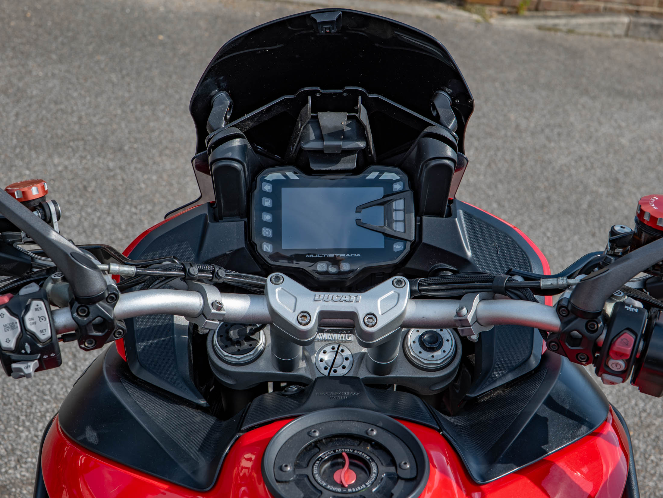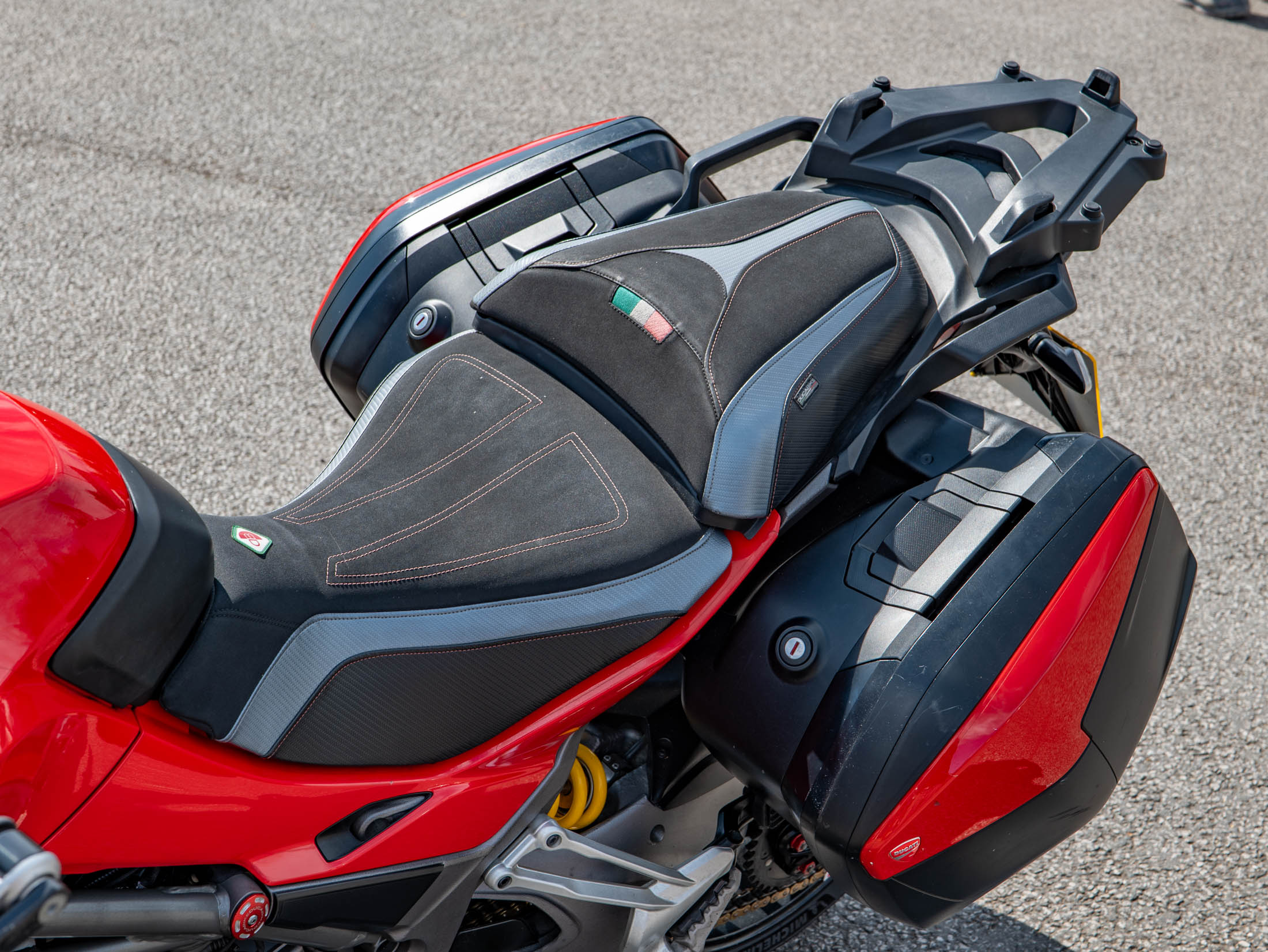 The 'S' model comes factory-fitted with premium components, including the semi-active Ducati Skyhook Suspension (DSS) Evo, which intelligently adapts damping to deliver an unparalleled ride. A comprehensive electronics suite featuring Cornering ABS, Ducati Traction Control (DTC) EVO, Ducati Wheelie Control (DWC) EVO, and multiple Riding Modes (Sport, Touring, Urban, Enduro) ensures supreme control and adaptability for any journey.