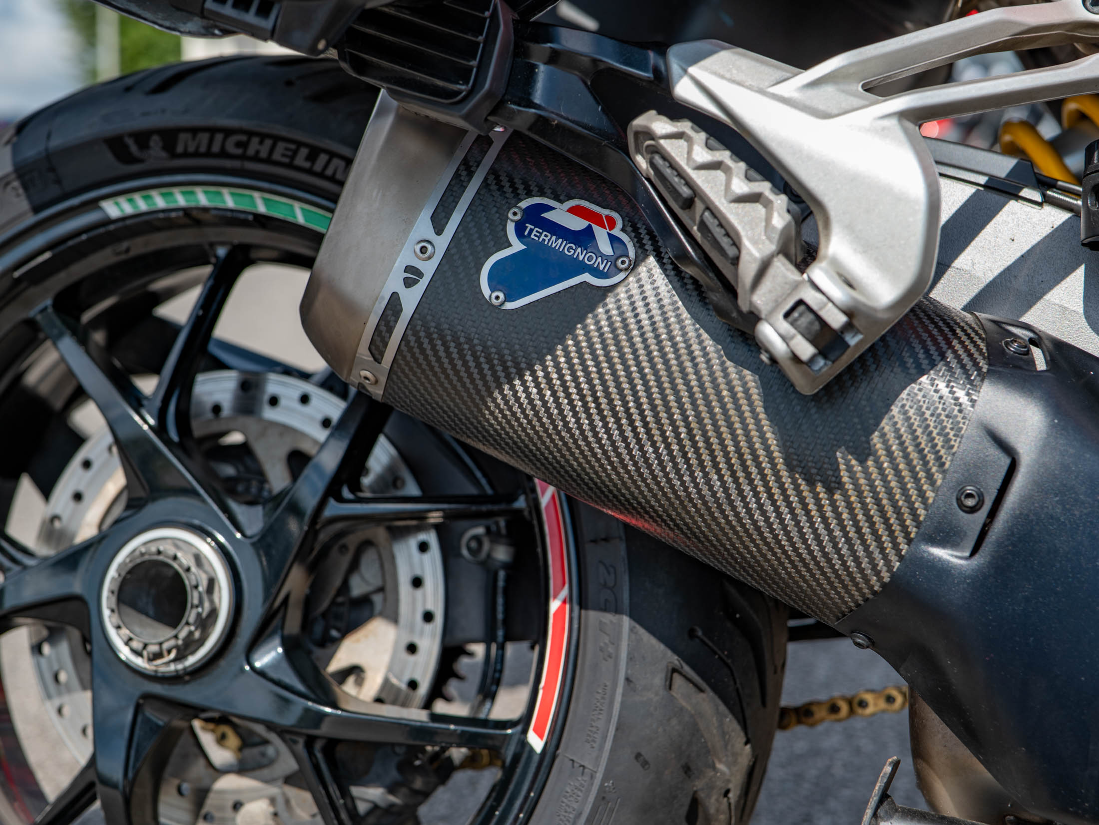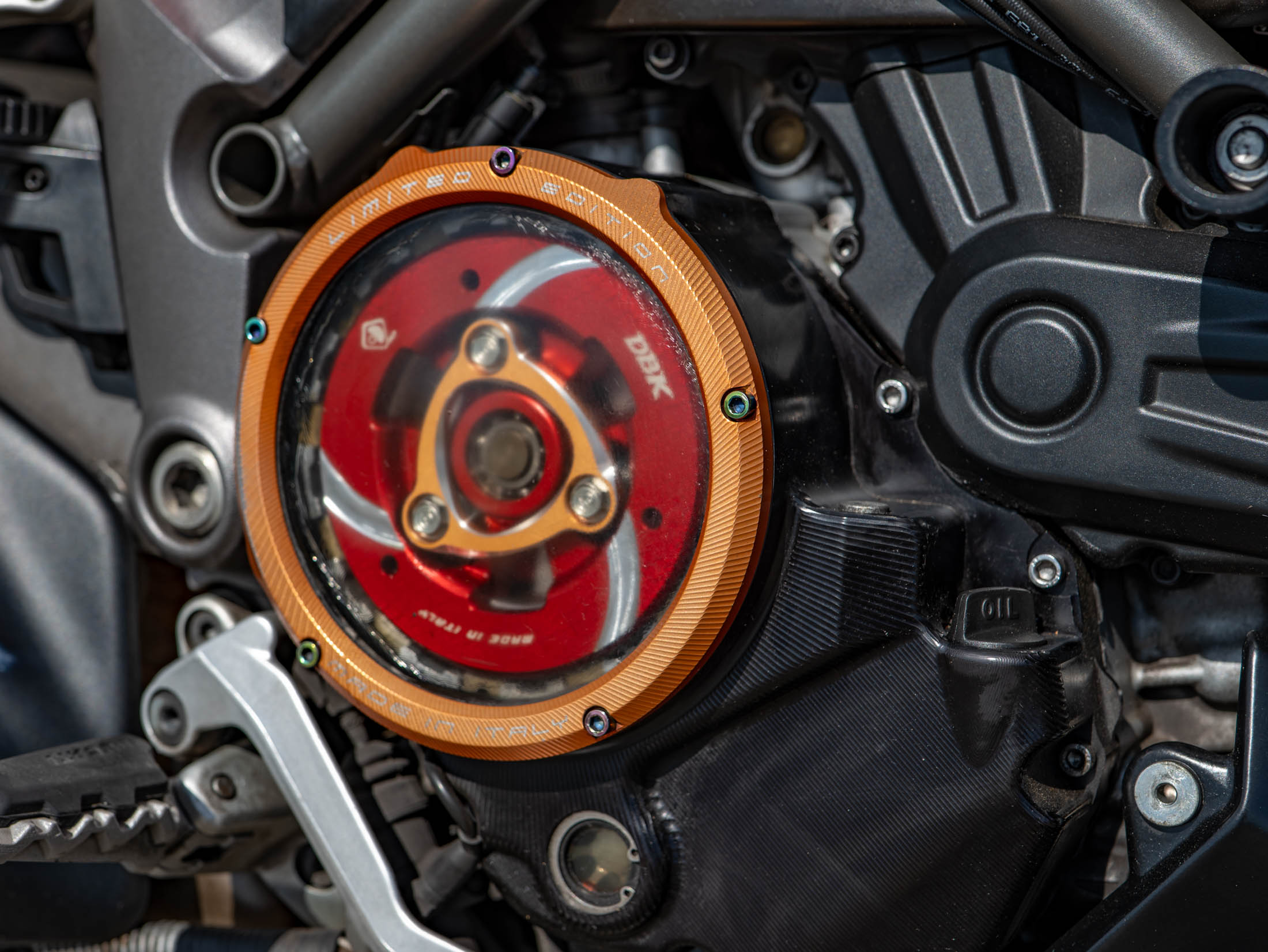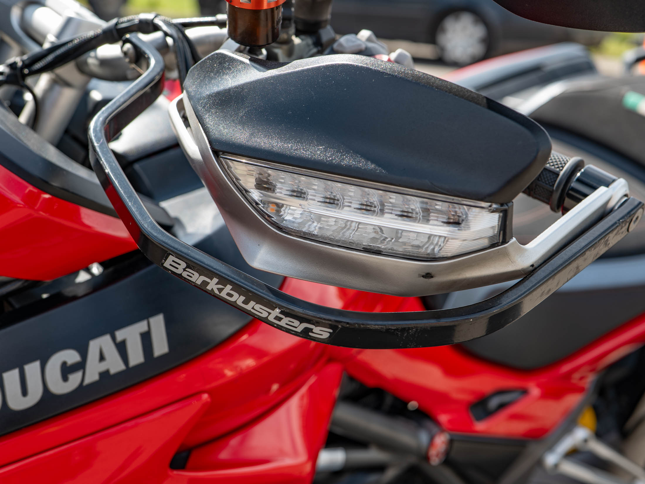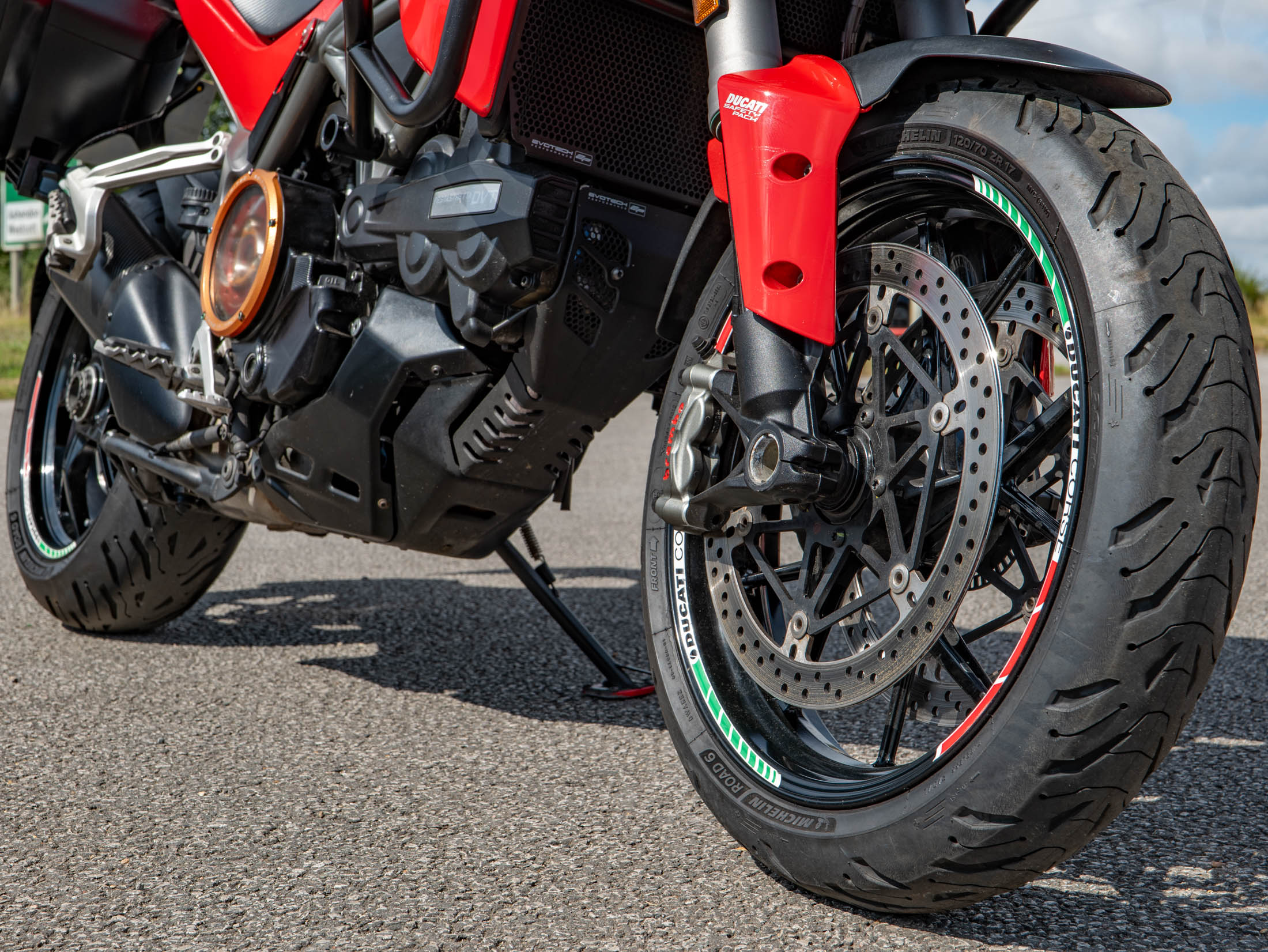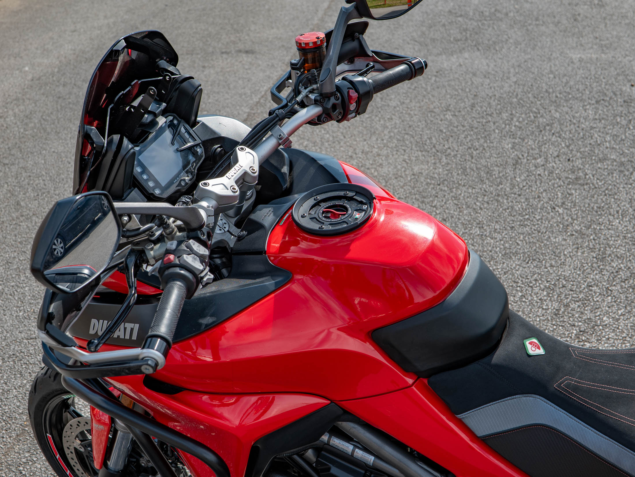 This particular Multistrada 1260 S is further enhanced with a host of desirable upgrades. It features a throaty Termignoni silencer (performance exhaust) for that unmistakable Ducati roar, a unique clear clutch cover that showcases the internal workings, and robust engine bars for added protection. Comfort is elevated by comfort seats and practical heated grips, while long-distance capability is boosted by a rear rack for luggage. The bike also sports a stylish gold chain, protective Barkbusters handguards, and precision-engineered Evotech rad guards.
