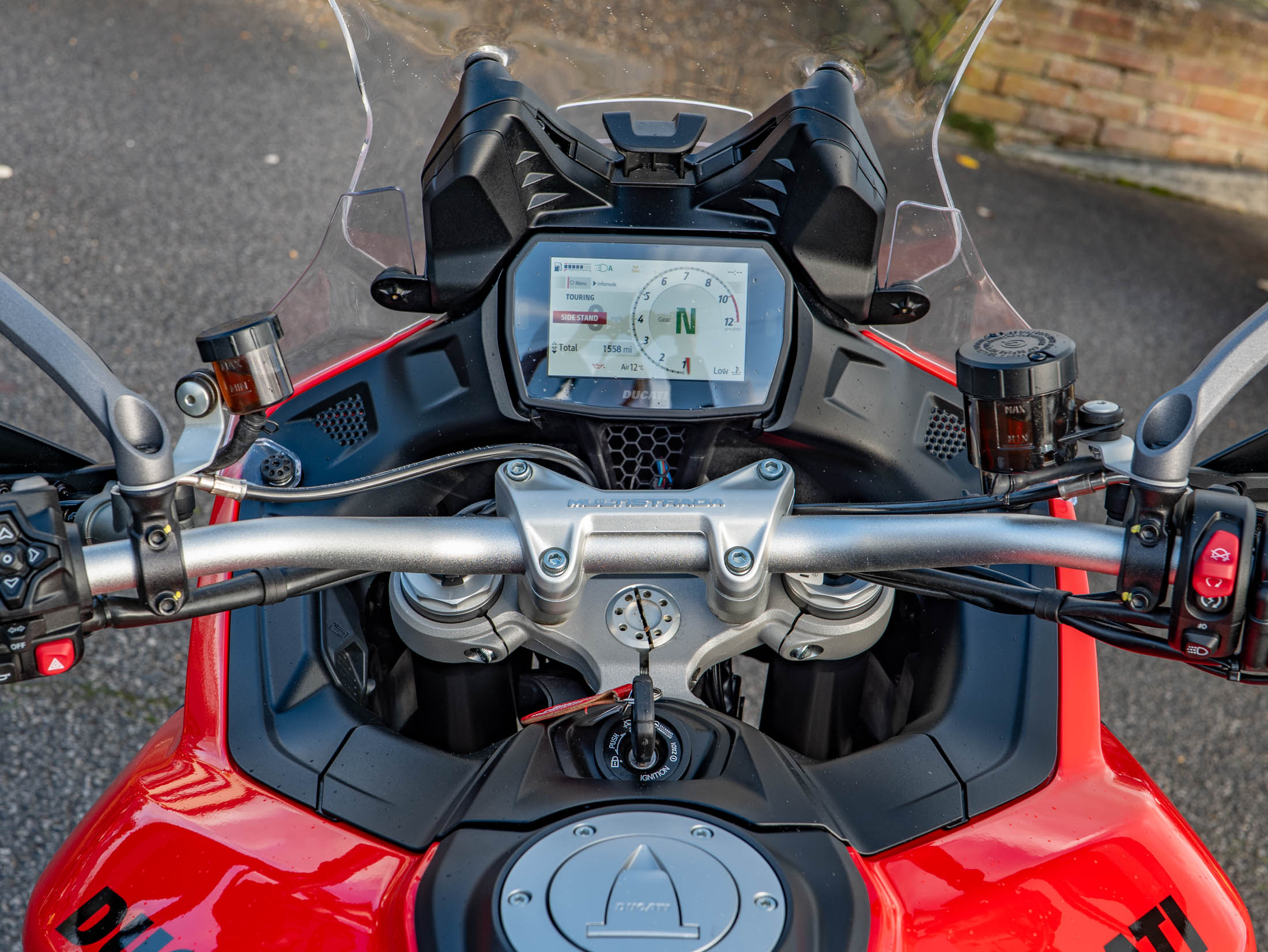 The heart of the Multistrada V2 S is the renowned 937 cc Testastretta 11° V-Twin engine, producing a versatile 113 hp. This engine is perfectly suited for both exciting weekend blasts and effortless continental touring, delivering a smooth, yet punchy power curve through its six-speed gearbox which includes the Ducati Quick Shift (DQS) up/down system as standard on the 'S' model. As an 'S', the bike features Ducati Skyhook Suspension (DSS) EVO, providing electronically managed semi-active suspension that automatically adjusts damping and preload to suit the road conditions and riding style.