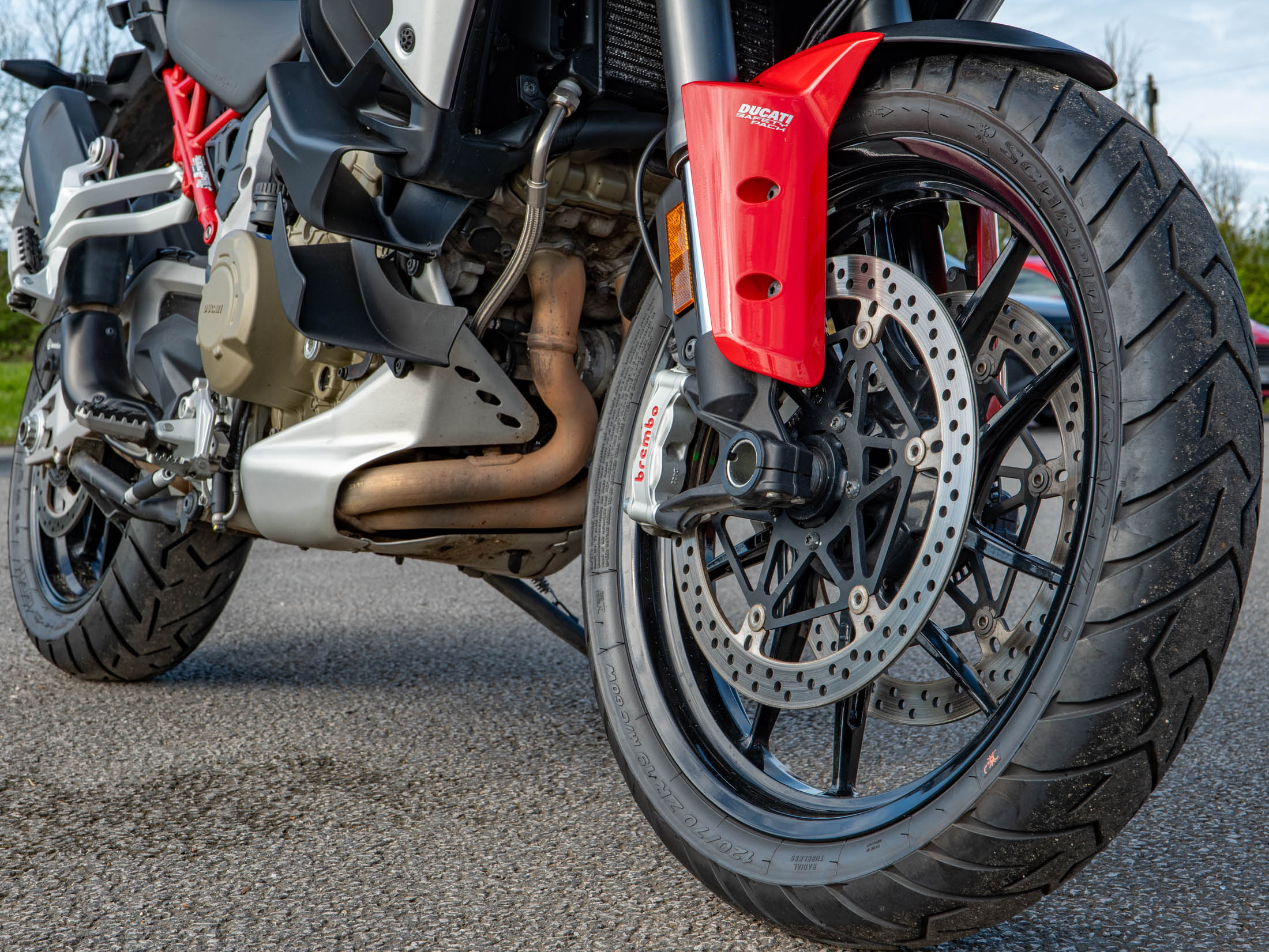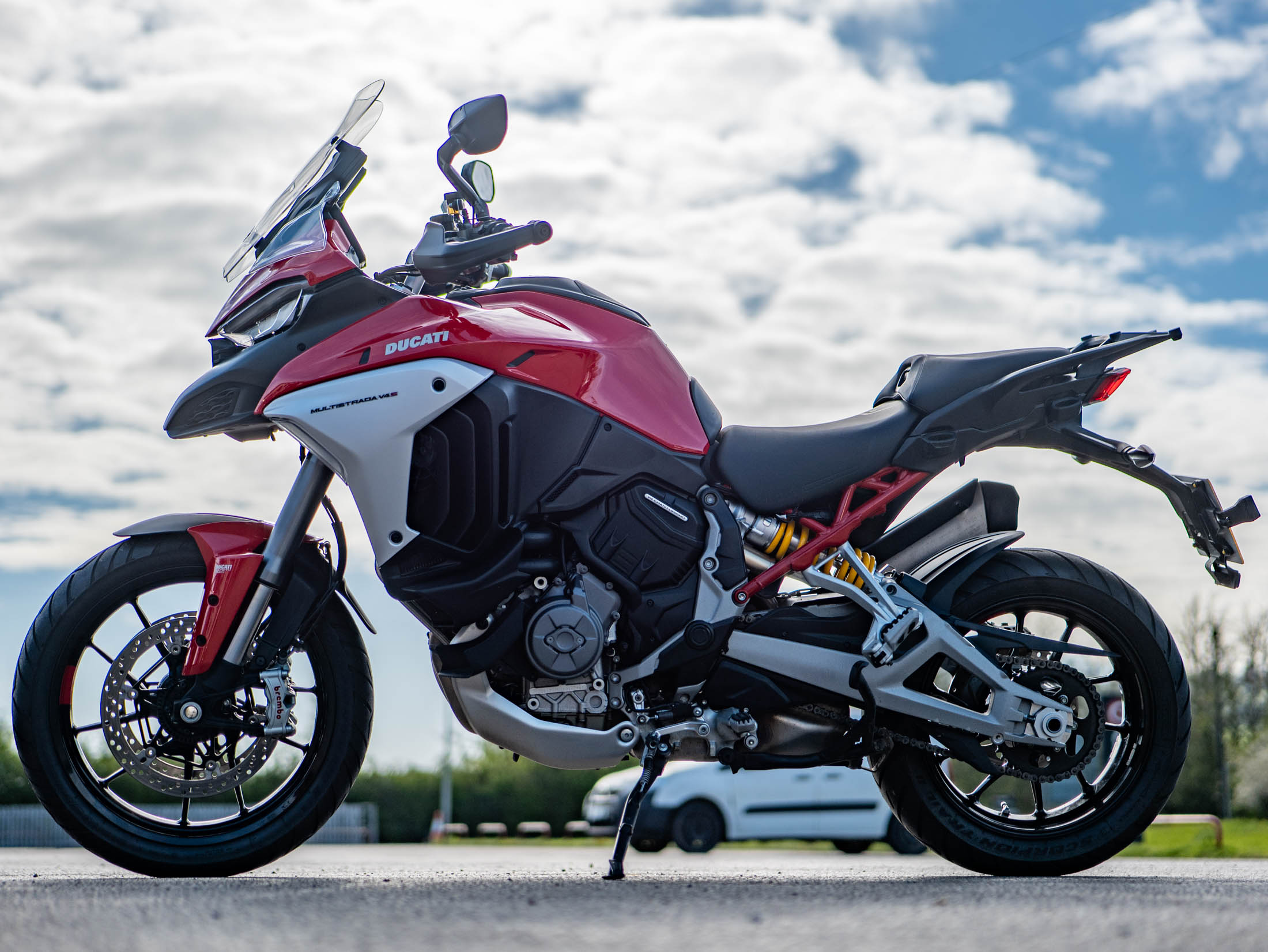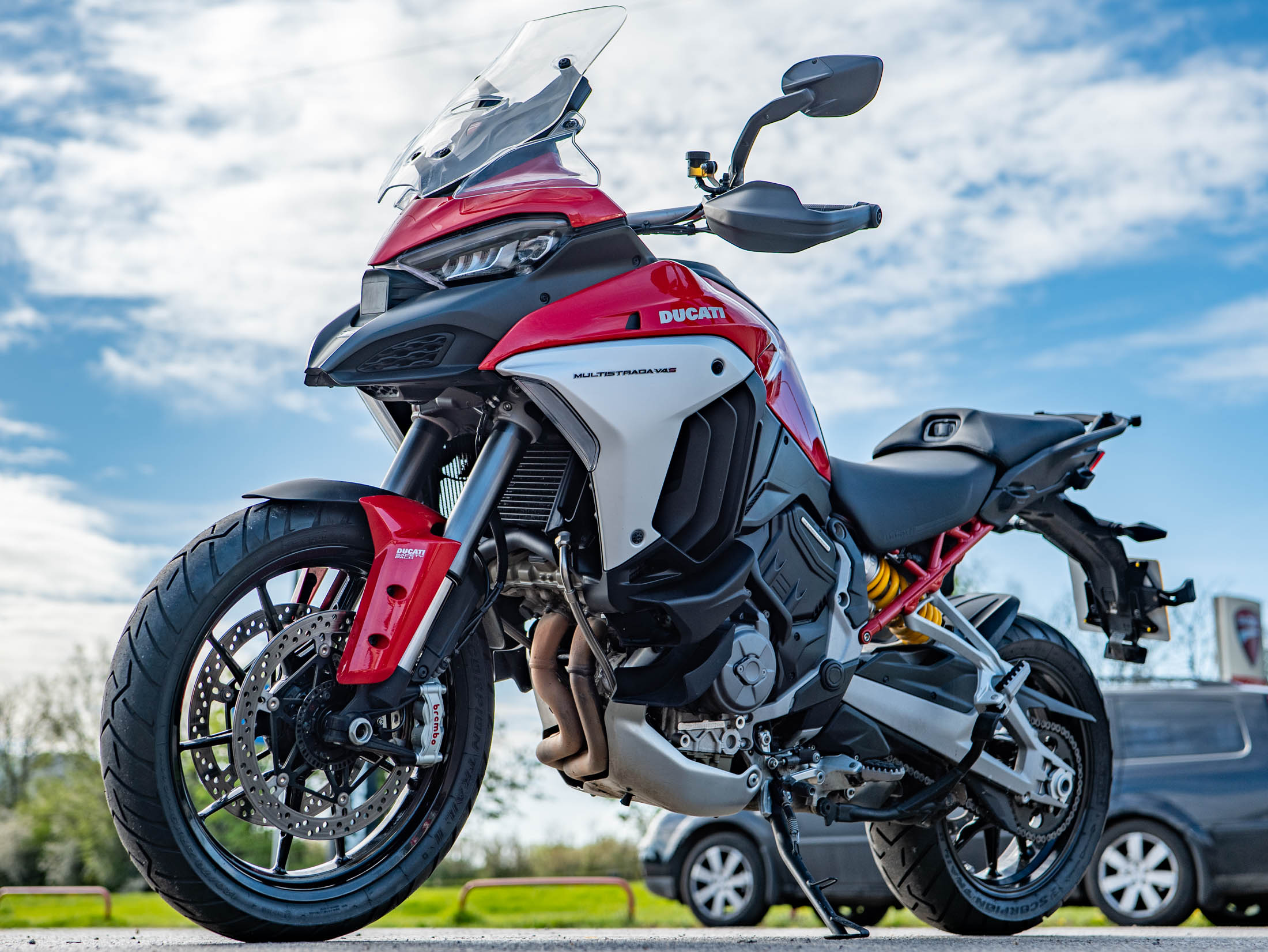 The heart of this machine is the 1,158cc V4 Granturismo engine, delivering a smooth yet powerful 170 hp. Designed for versatility, this engine offers a unique "Twin Pulse" firing order for V-twin-like character at low revs and inline-four scream at the top end. As a "Travel & Radar" model, this bike features Ducati's pioneering 4D radar system, providing Adaptive Cruise Control and Blind Spot Detection. The touring capability is further enhanced by factory-fitted heated grips, heated seats (both rider and passenger), and a centre stand.