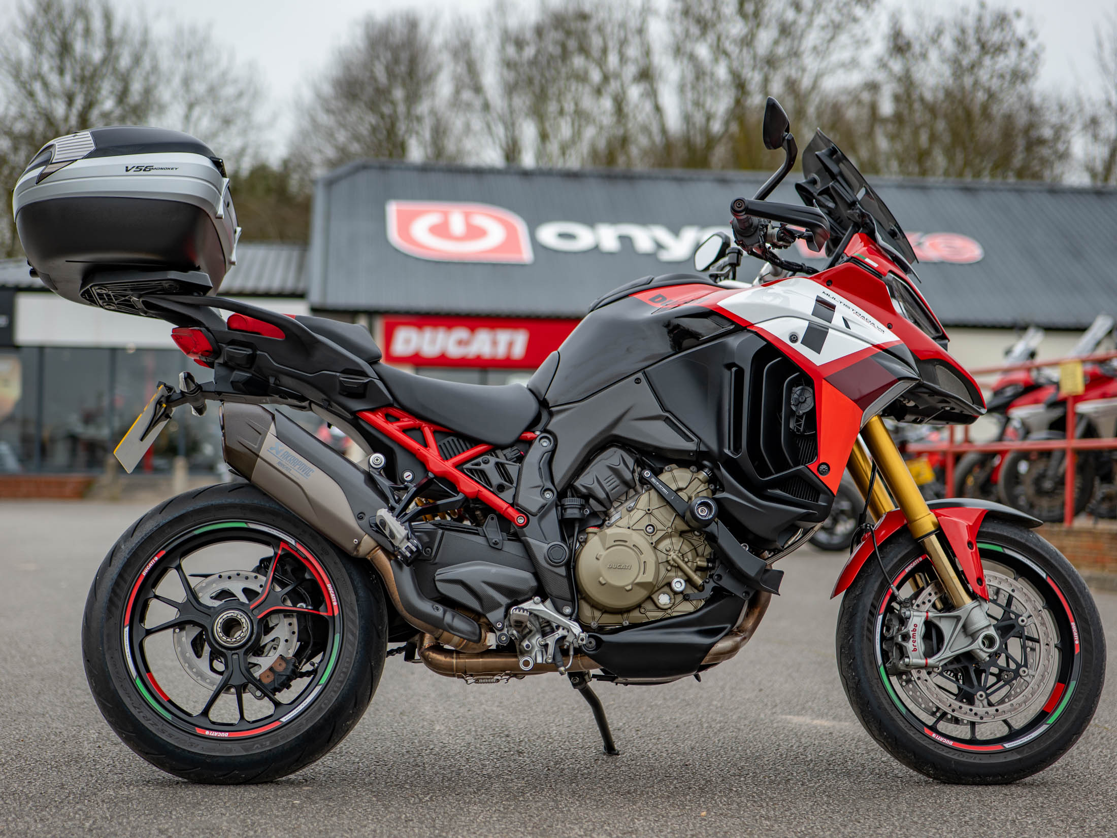 As an official Ducati dealer near Aylesbury, On Yer Bike / Ducati Aylesbury supplies this V4 Pikes Peak with two keys, V5 documentation, and DataTag security. We offer professional delivery to any mainland UK address and welcome part-exchanges. This is a rare opportunity to own a meticulously maintained, one-owner Pikes Peak with all the essential extras already fitted. Contact the sales team at On Yer Bike today for a tailored finance quote.