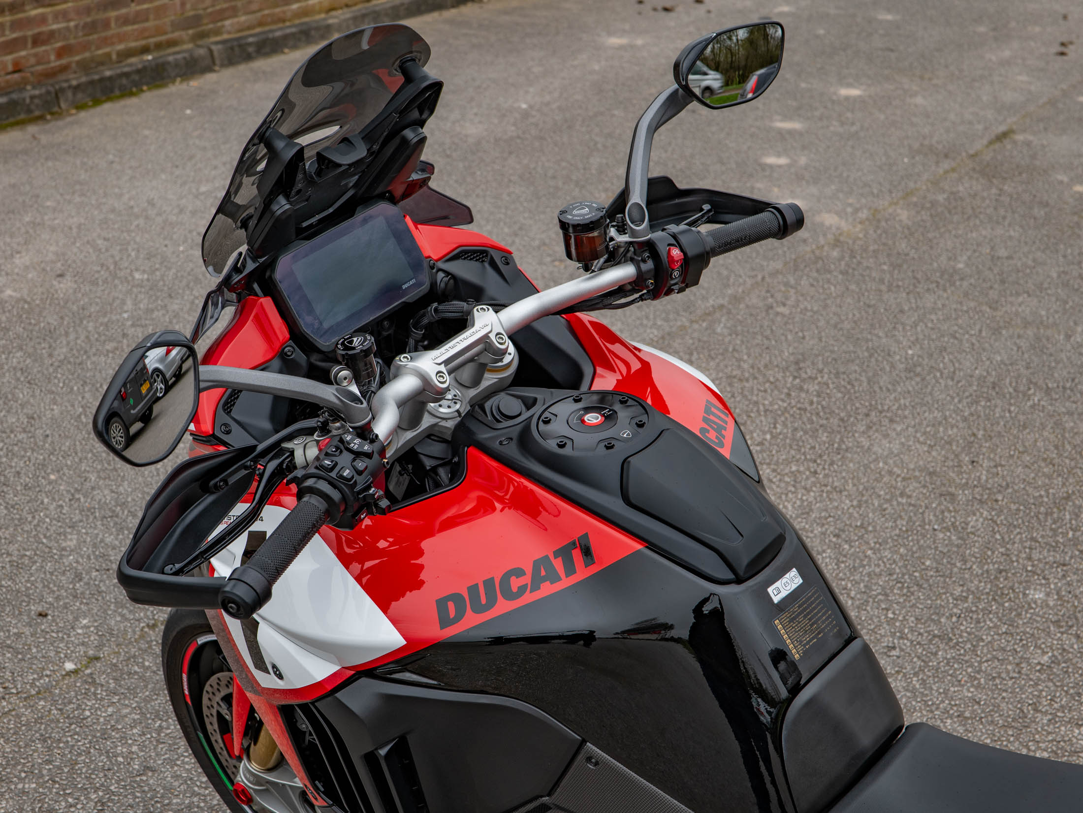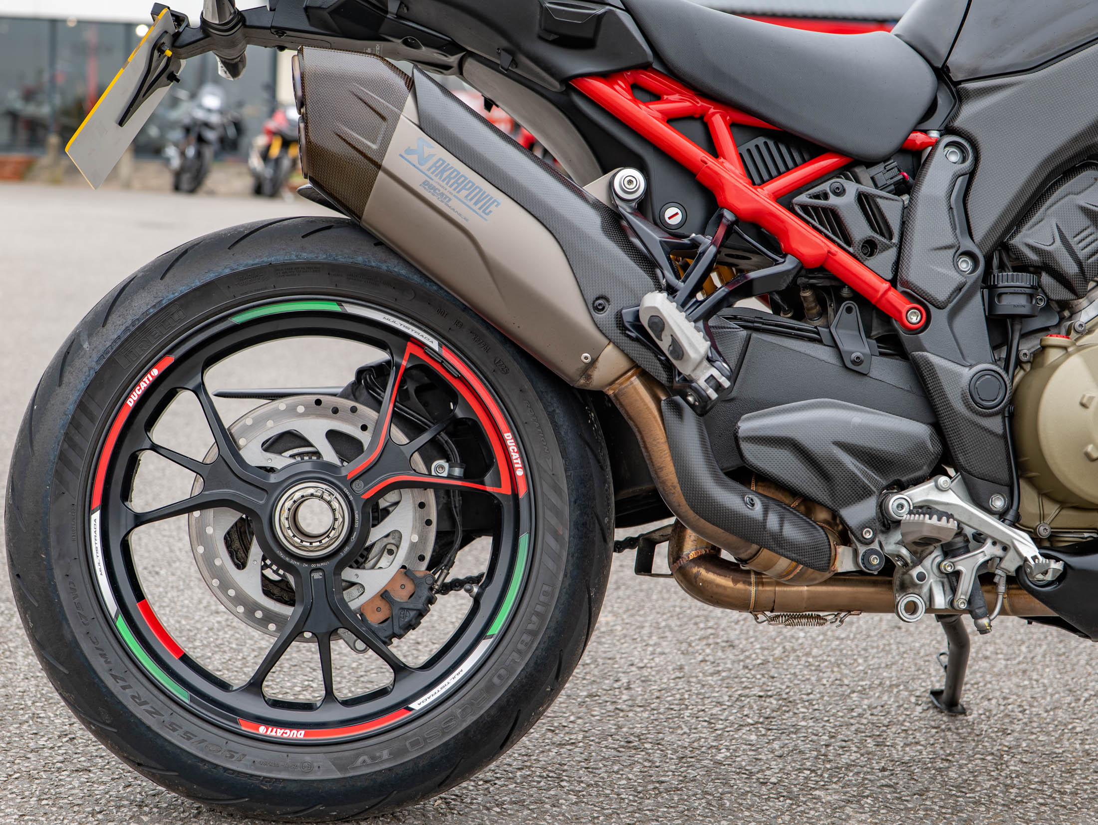 At the heart of this machine is the 1158cc V4 Granturismo engine, producing a staggering 170 hp. Unlike the standard V4, the Pikes Peak features a dedicated "Race" riding mode and revised chassis geometry designed for maximum precision on the road. The single-sided swingarm and lightweight forged Marchesini wheels significantly reduce unsprung weight, while the Öhlins Smart EC 2.0 semi-active suspension provides real-time damping adjustments to suit your riding style. This example sounds as good as it looks, fitted with a road-legal Akrapovič silencer that perfectly complements the V4’s "Twin Pulse" firing order.