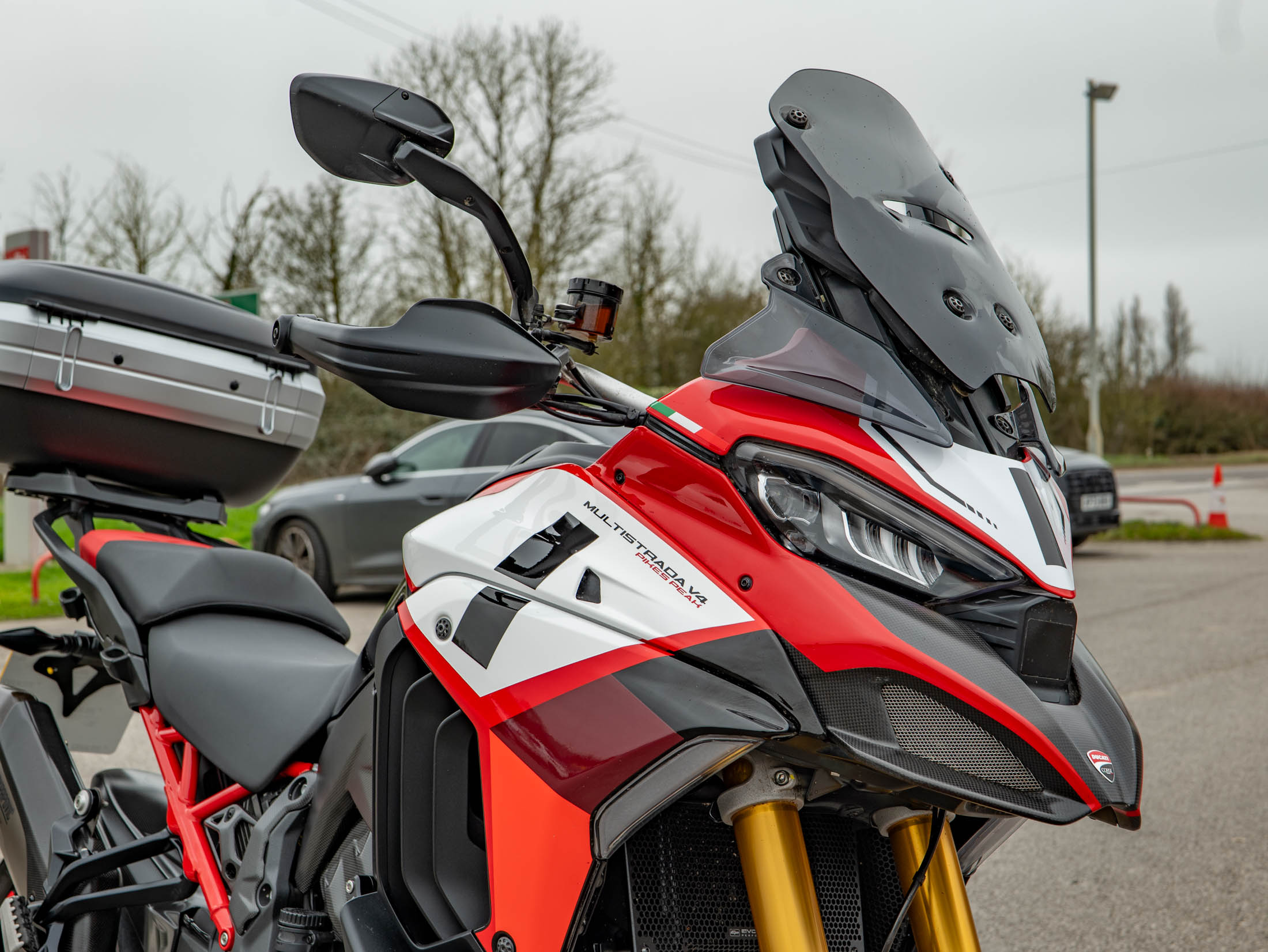 This Pikes Peak is fully equipped for both high-speed touring and daily protection. It features the advanced front and rear Radar system, enabling Adaptive Cruise Control and Blind Spot Detection. Practicality is enhanced by a large Givi Maxia 4 Top Box and a sturdy rear rack, while protection is handled by Evotech performance radiator guards and crash bungs. Presented in very good condition, this 170 hp machine represents the absolute gold standard for riders who refuse to choose between superbike performance and adventure comfort.