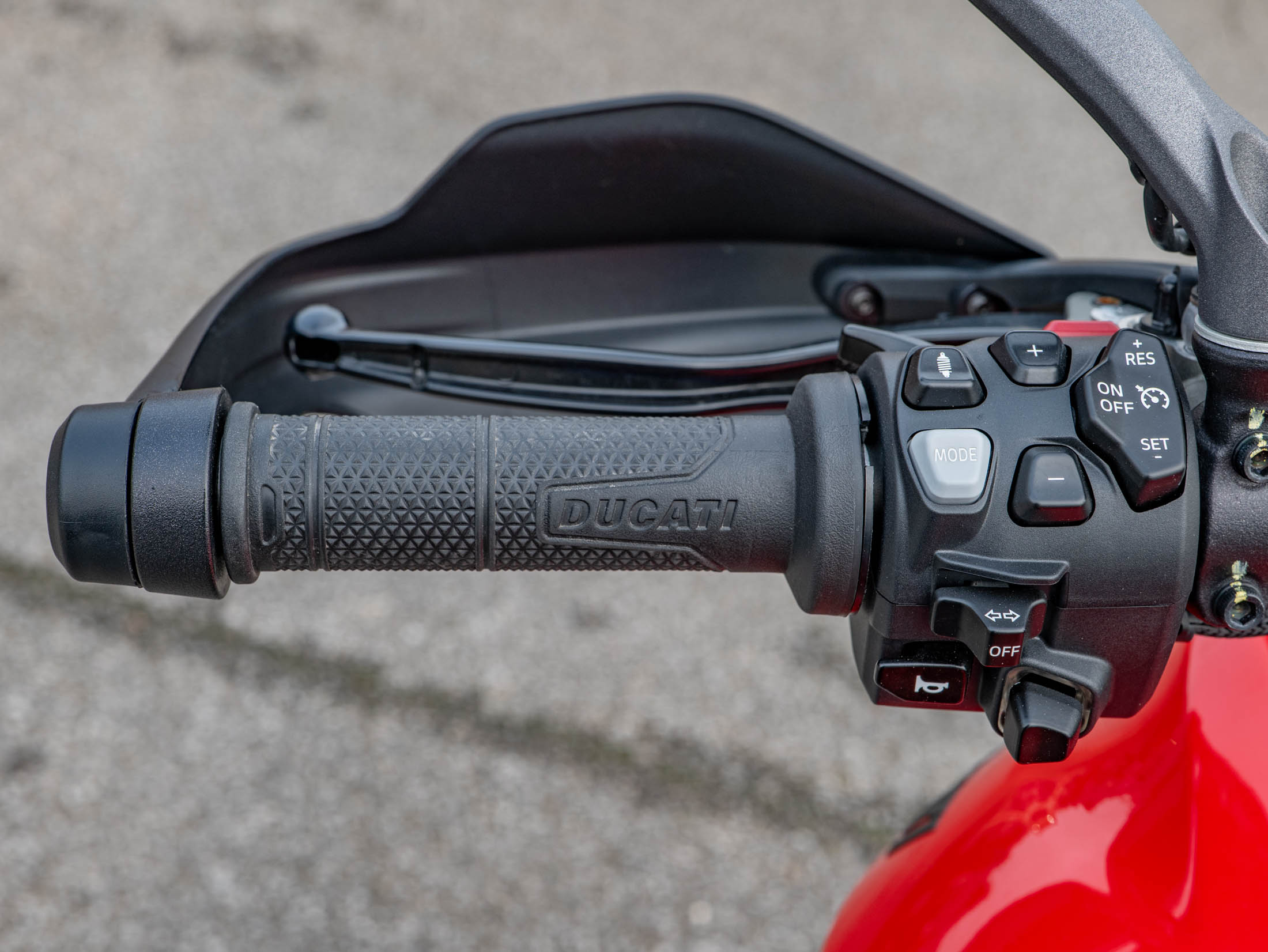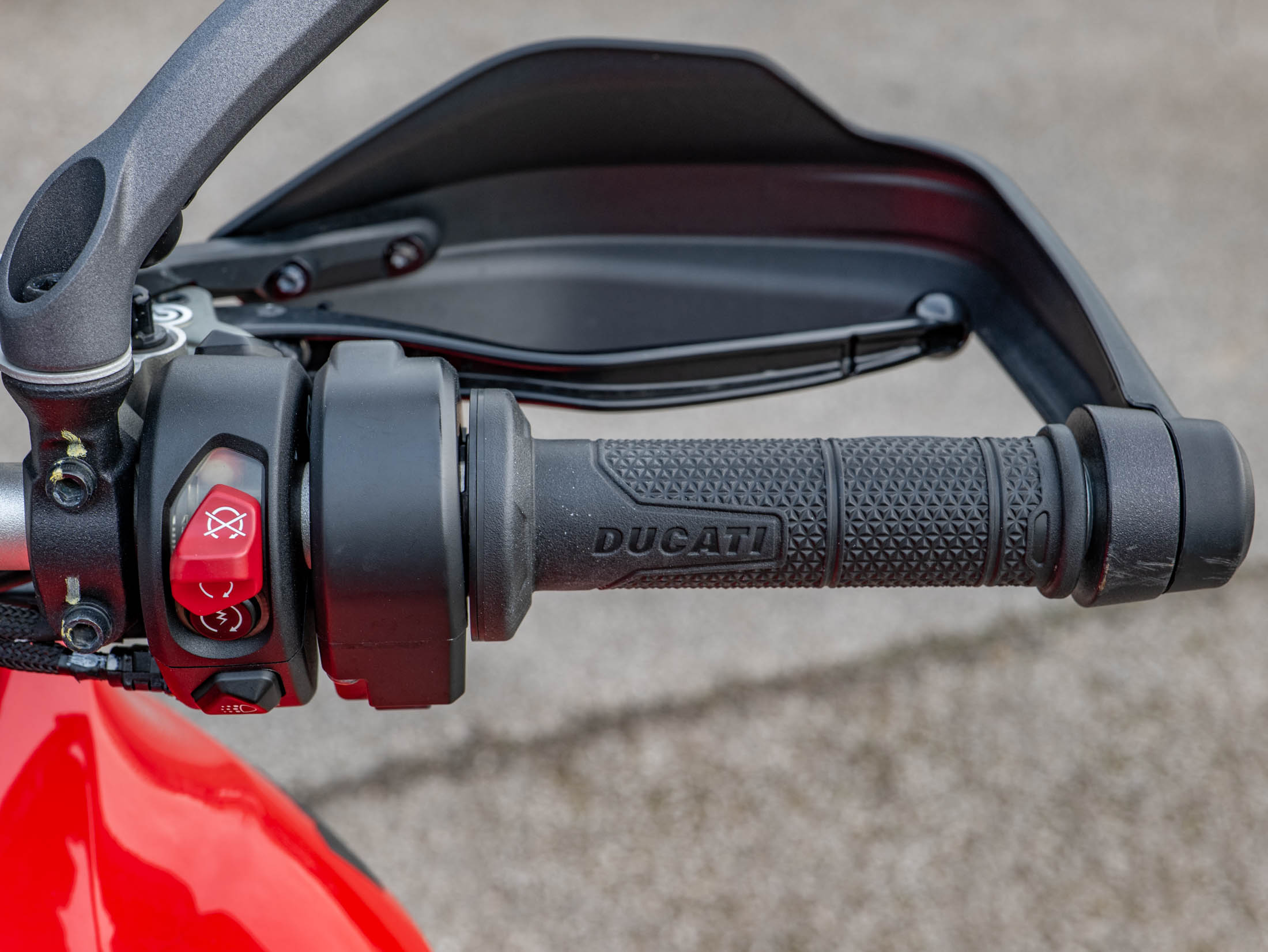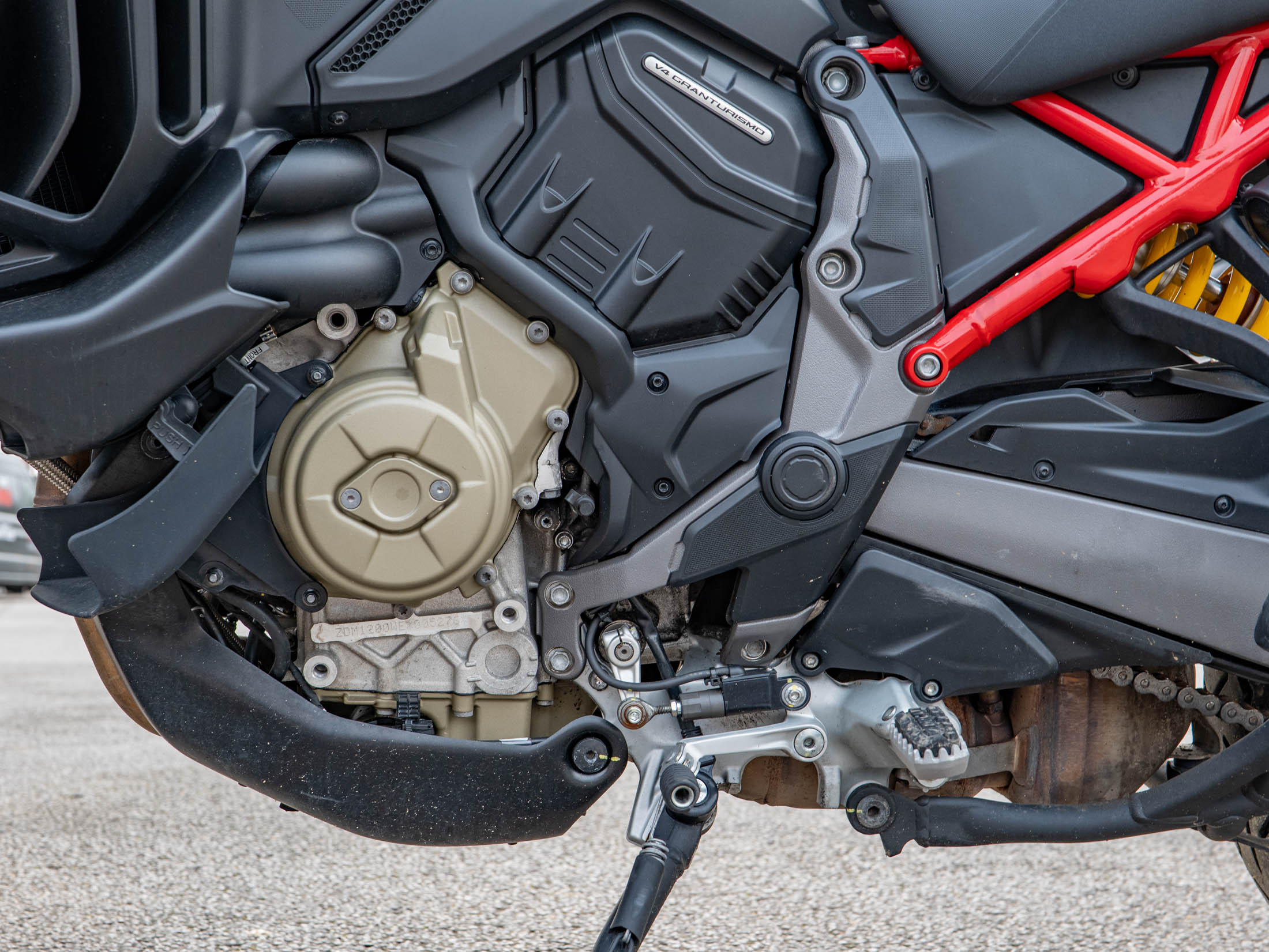 Riding the Multistrada V4 S is an experience that redefines the adventure-sport category. The 1158cc V4 Granturismo engine is a marvel of engineering, delivering a massive 170 hp with a smoothness that makes long-distance travel feel effortless. The ride is characterised by its incredible versatility; whether you are carving through mountain passes in Sport mode or cruising the motorway in Touring mode, the semi-active Skyhook suspension adapts in real-time to provide the perfect balance of support and comfort. This 2025 model features the new automatic lowering device, which reduces the seat height at low speeds to make handling this high-tech machine even more intuitive when coming to a halt.